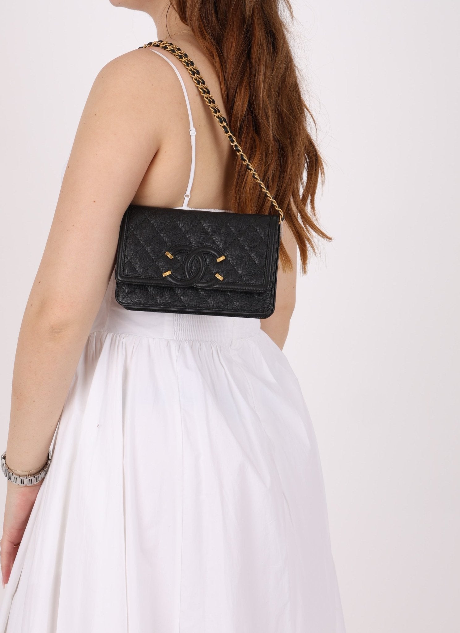 Chanel 2018 Caviar Filigree Wallet on Chain