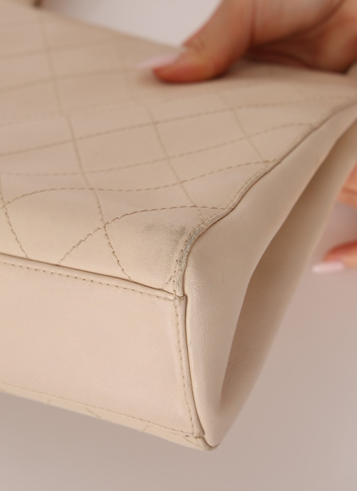 Chanel 1997 Cream Lambskin Kelly Shoulder Bag 24K GP