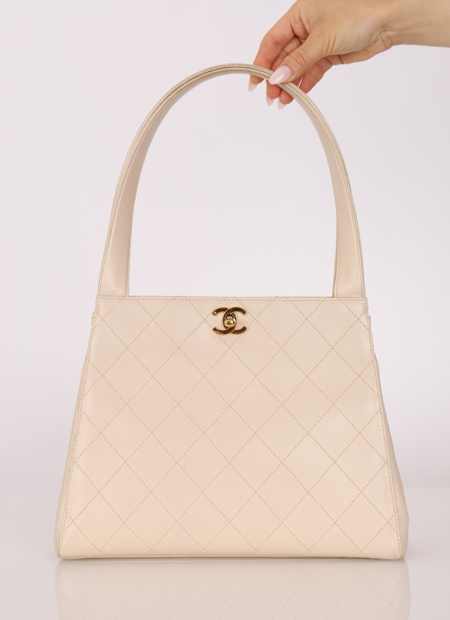 Chanel 1997 Cream Lambskin Kelly Shoulder Bag 24K GP - FashioNica