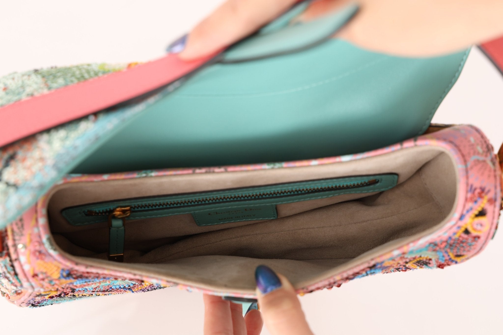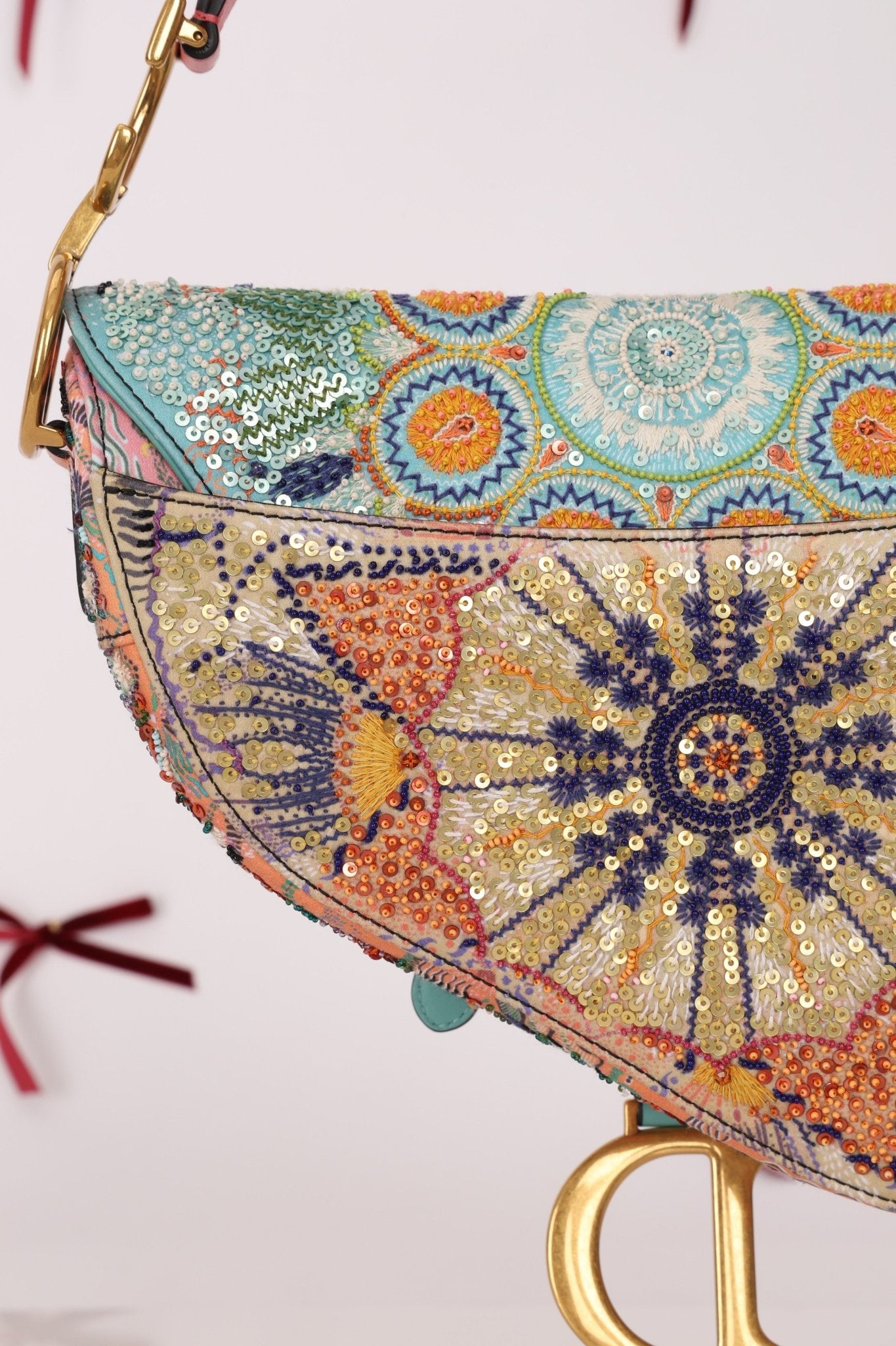 Ultra - Rare Dior 2020 "Dior in Lights" Sequin Beaded Saddle Bag - FashioNica