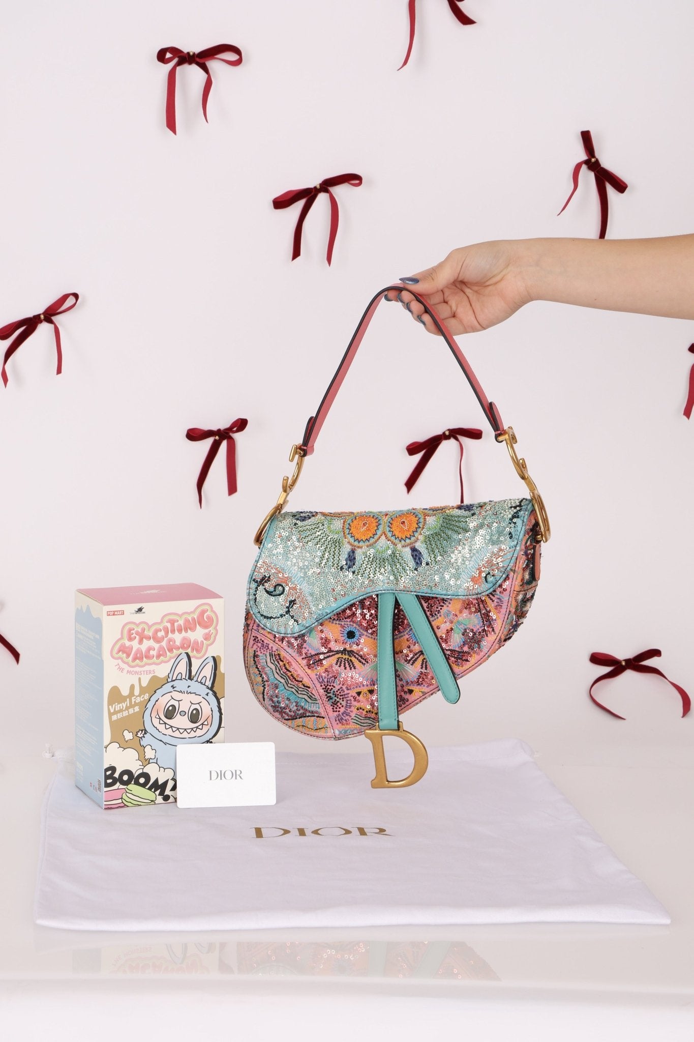 Ultra-Rare Dior 2020 "Dior in Lights" Sequin Beaded Saddle Bag