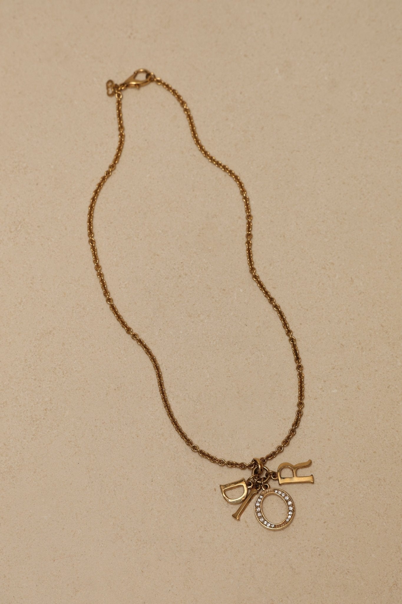 Dior Crystal Logo Charms Pendant Necklace - FashioNica