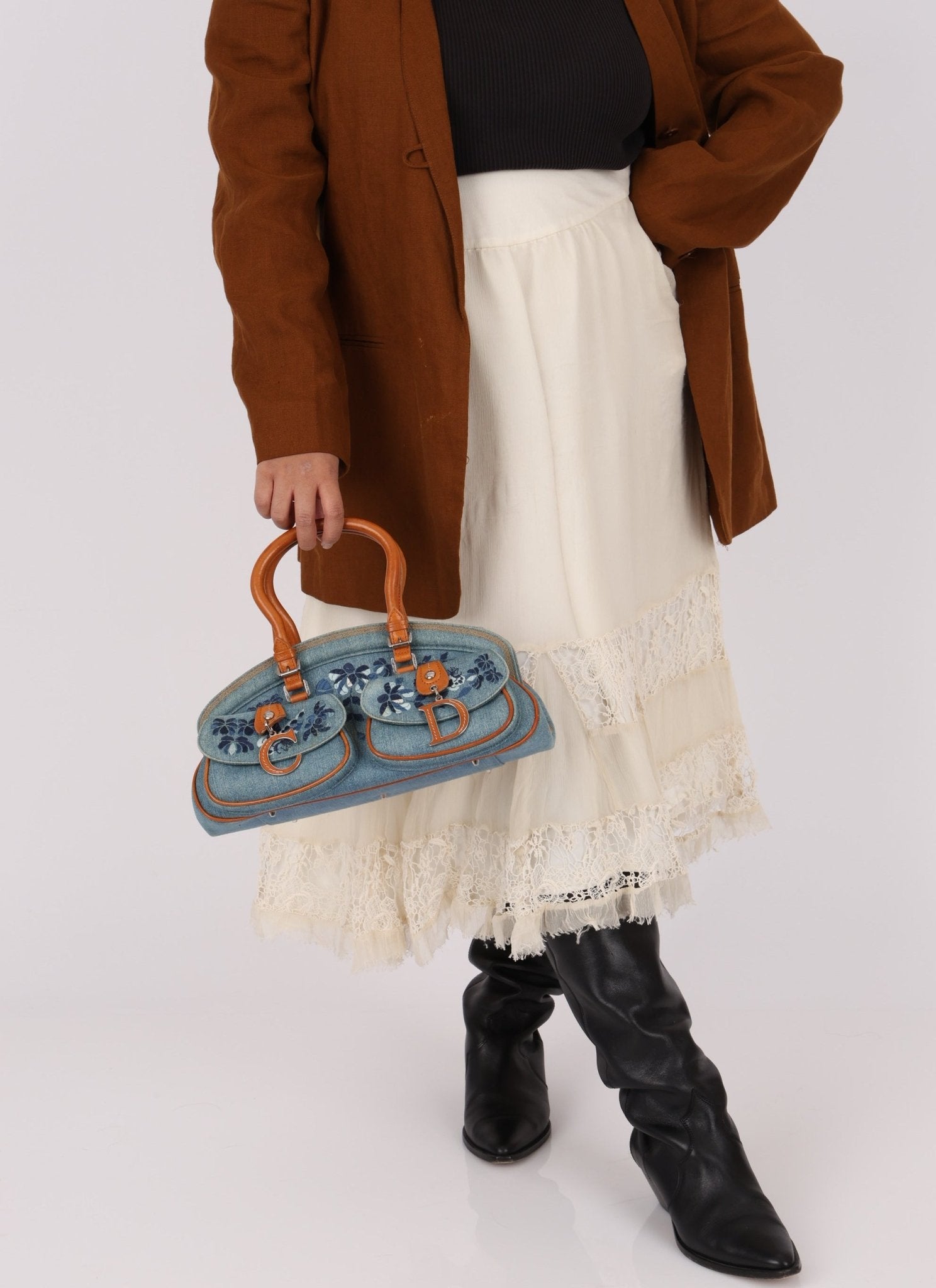Limited Edition Dior John Galliano 2005 Denim Embroidered Dectective Bag - FashioNica
