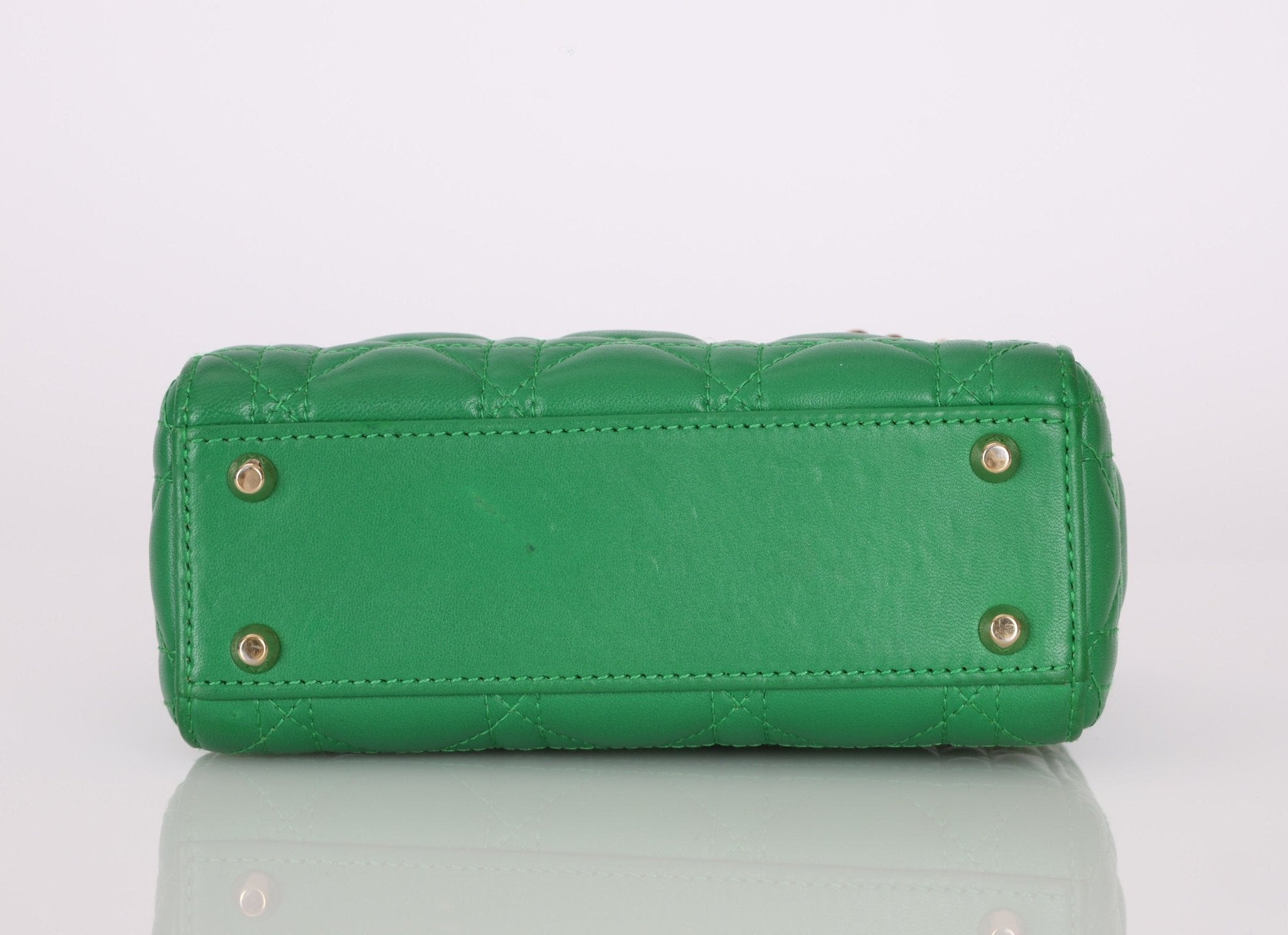 Dior 2018 Emerald Lambskin Cannage Mini Lady w Strap