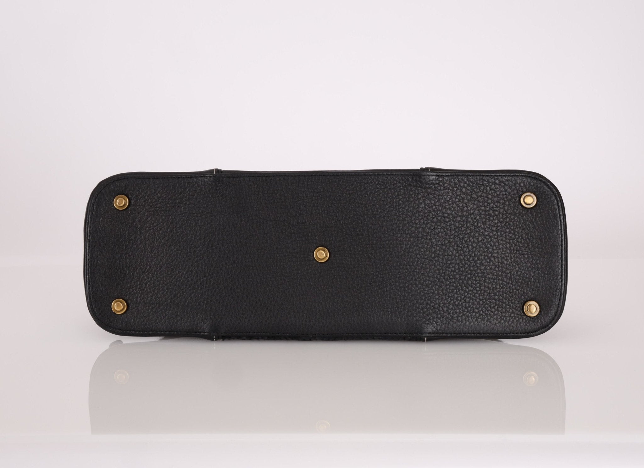Hairline scratches on hardware. Ponyhair balding on back of bag.