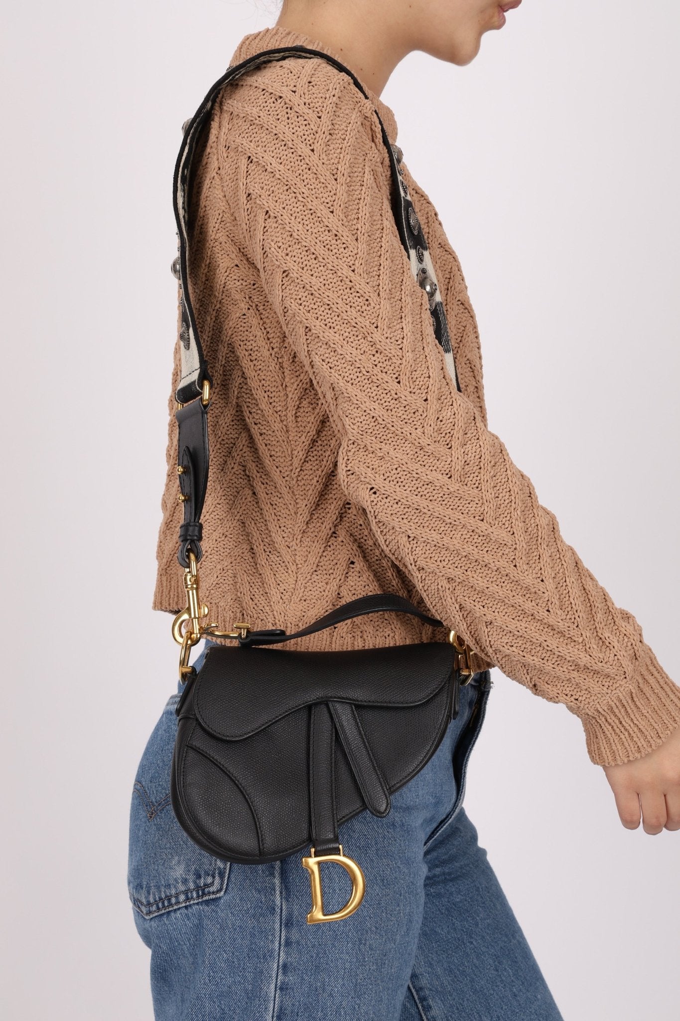 Dior 2019 Grained Leather Mini Saddle w/ Guitar Strap - FashioNica