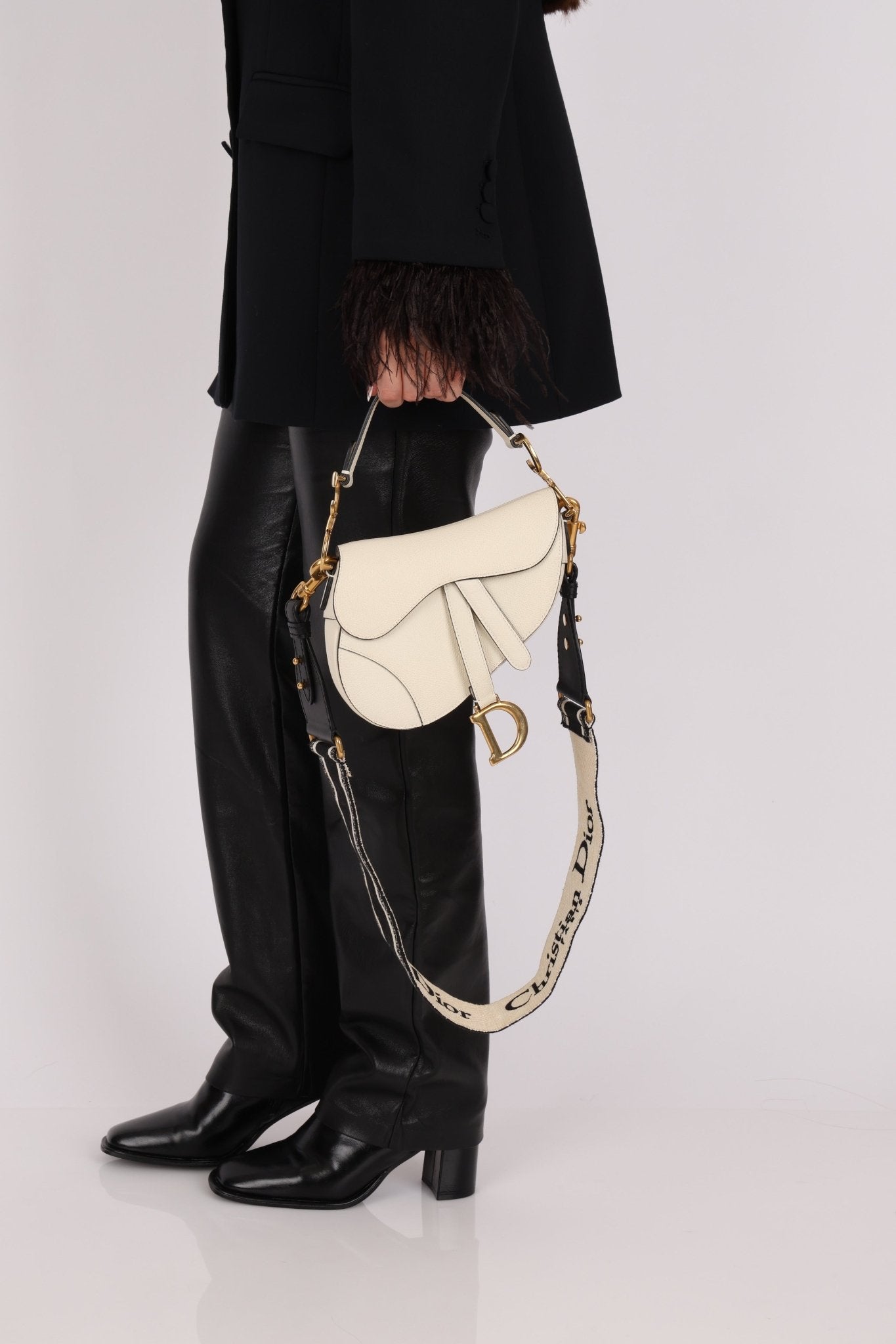 Dior 2018 Grained Leather Mini Saddle Bag w/ Dior Guitar Strap - FashioNica