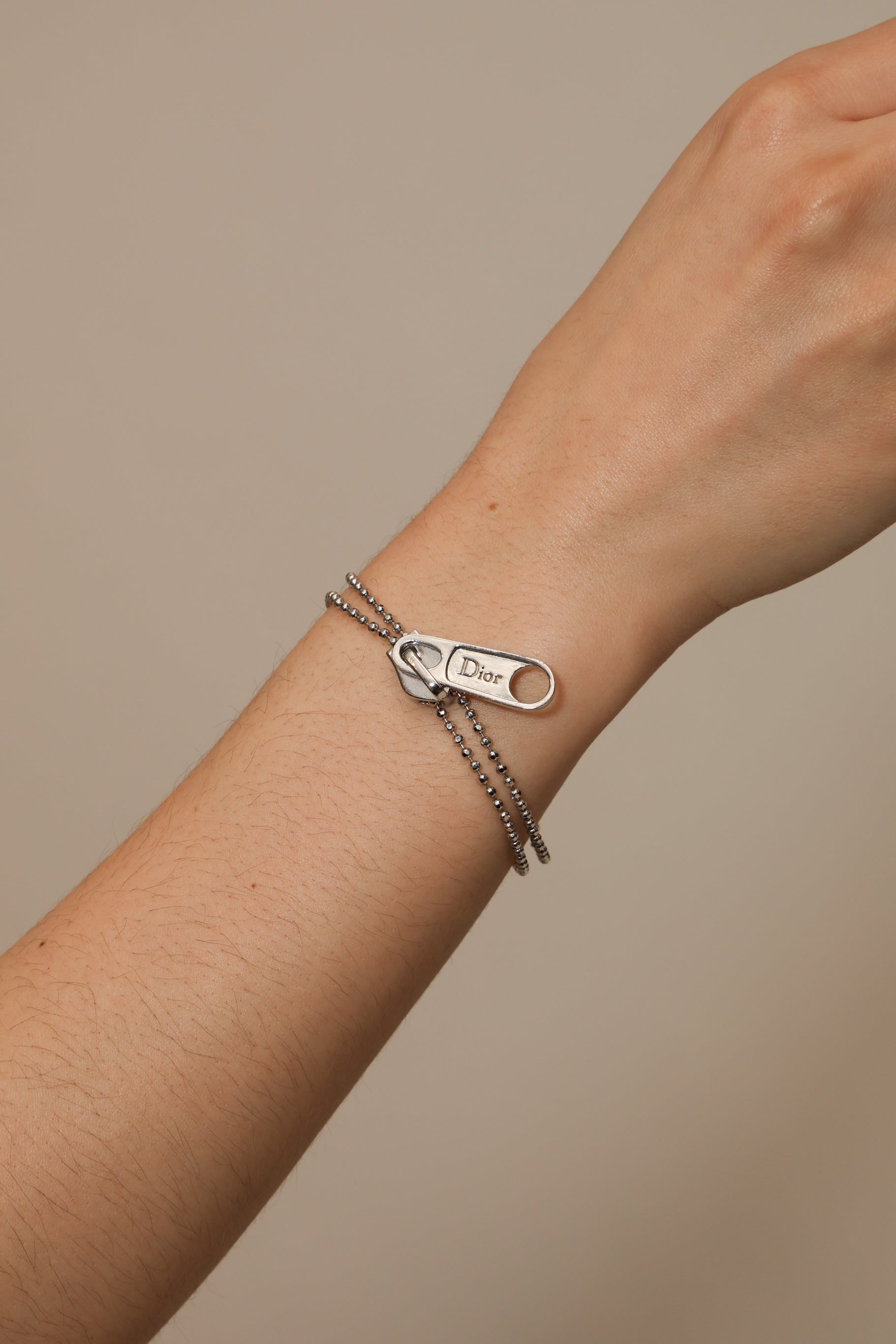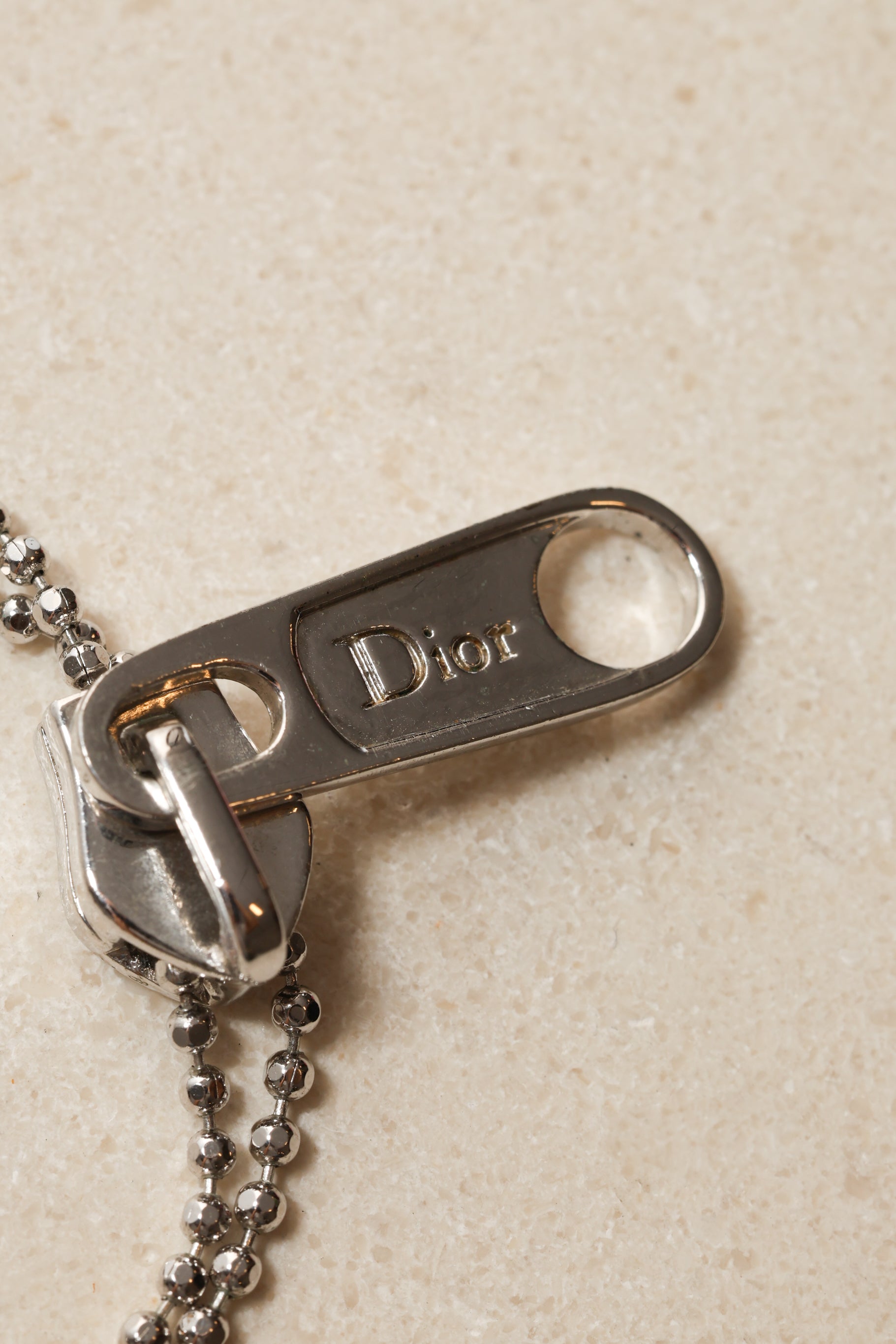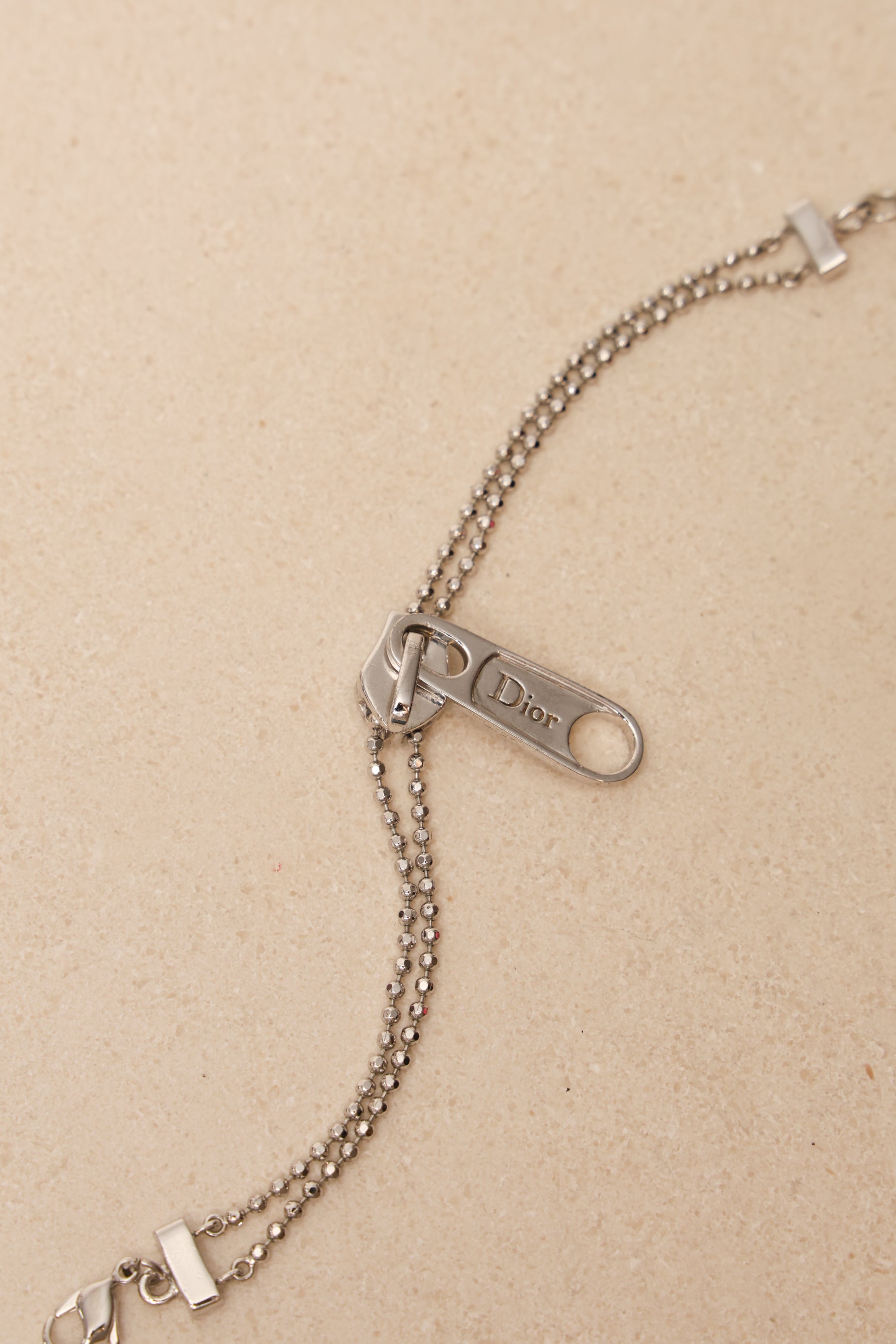 This Dior bracelet showcases a stylish, nonfunctioning zipper design for a contemporary, statement making look. Lightweight and easy to wear, it adds a cool, modern edge to everyday styling—perfect for Dior collectors and lovers of unique motif jewelry.
