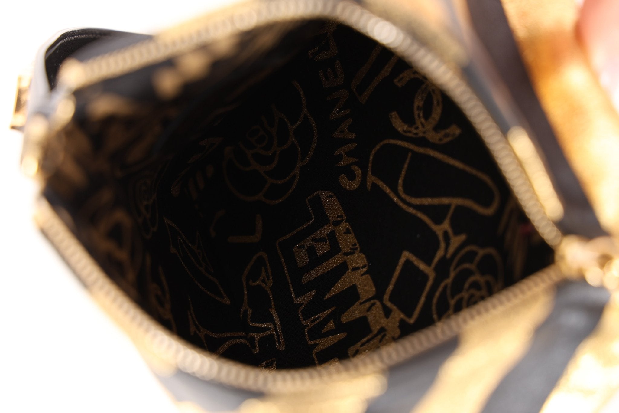 • interior printed with glitter Chanel emblems