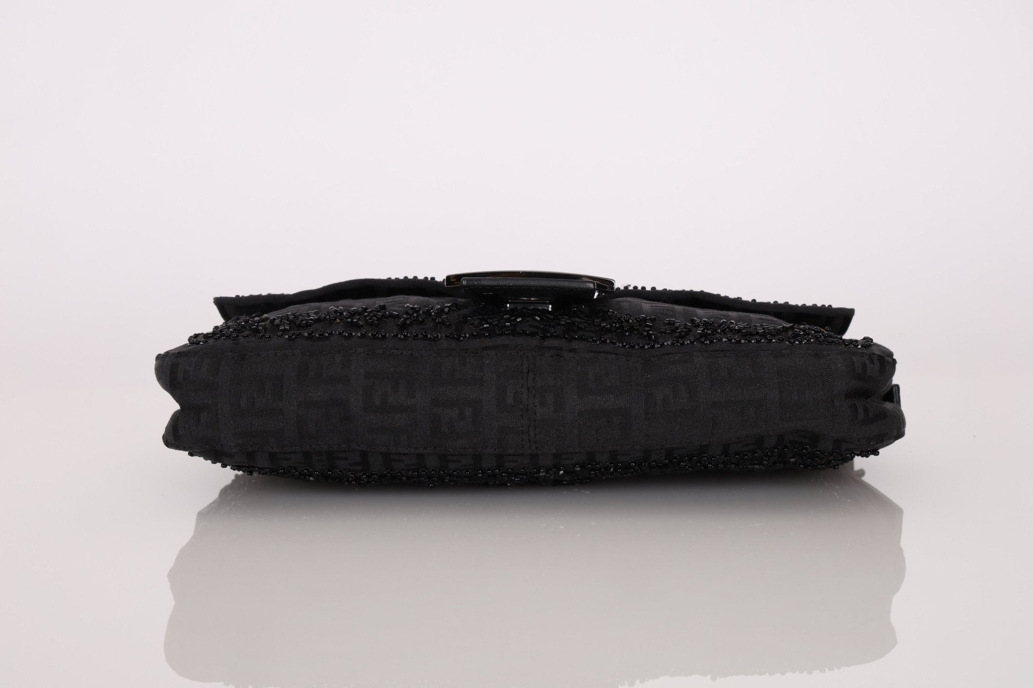 Ultra - Rare Vintage Fendi Lizard - Trimmed Beaded Zucchino Mother of Pearl Baguette - FashioNica