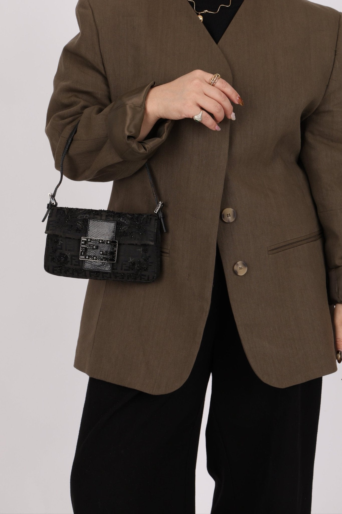 Ultra - Rare Fendi Zucchino Black Floral Beaded, Lizard, & Crystal Mini Baguette - FashioNica