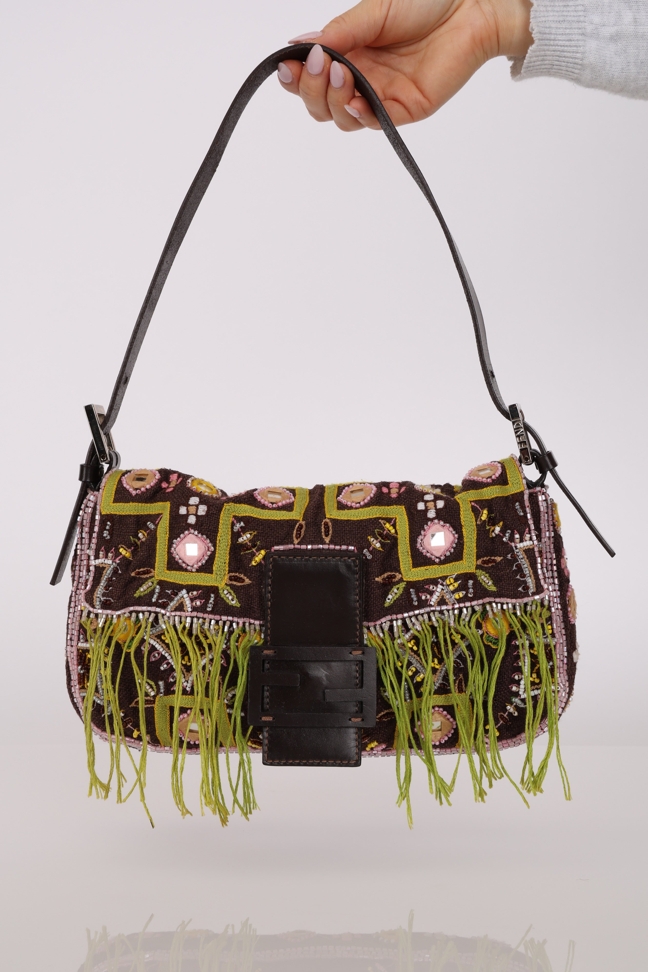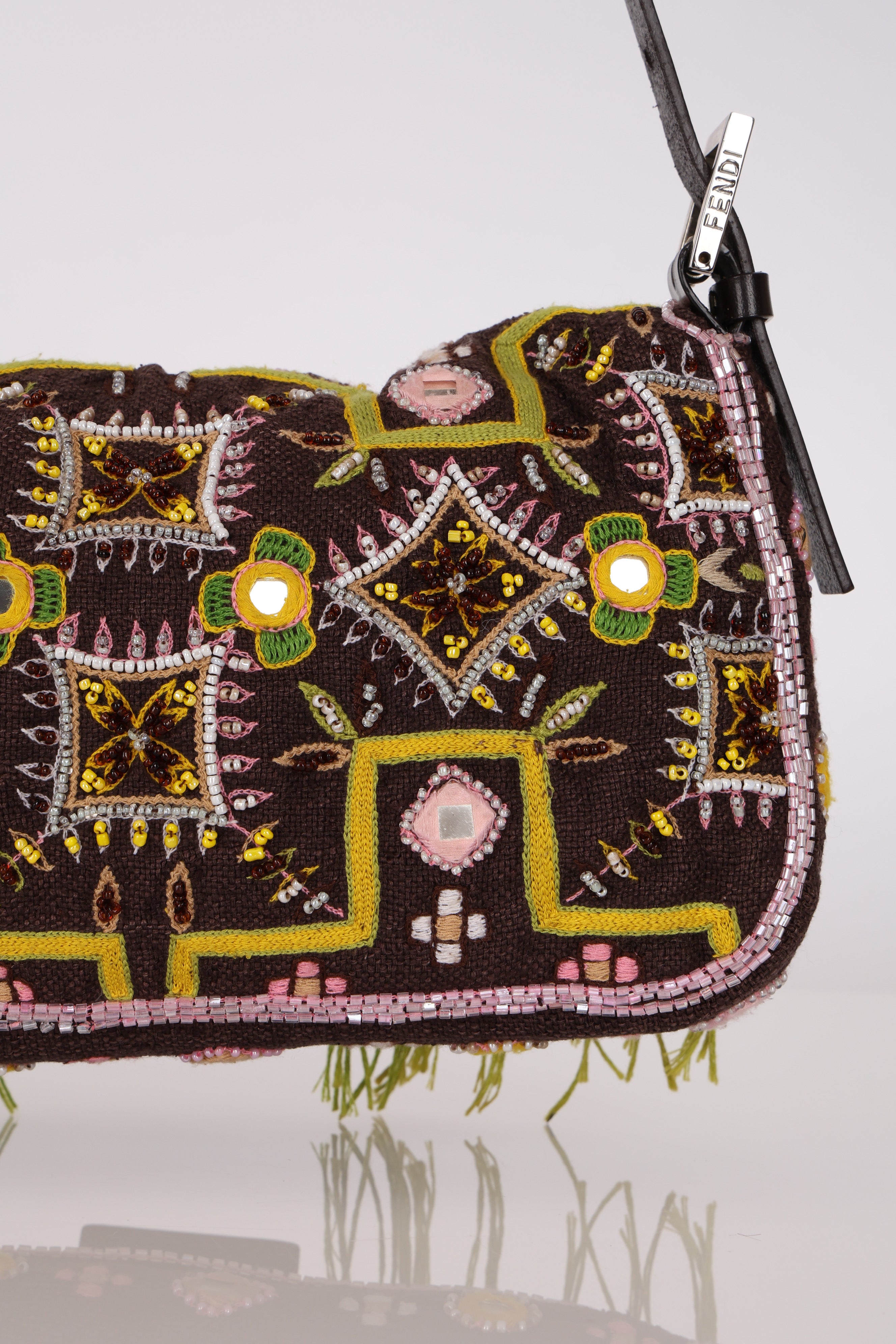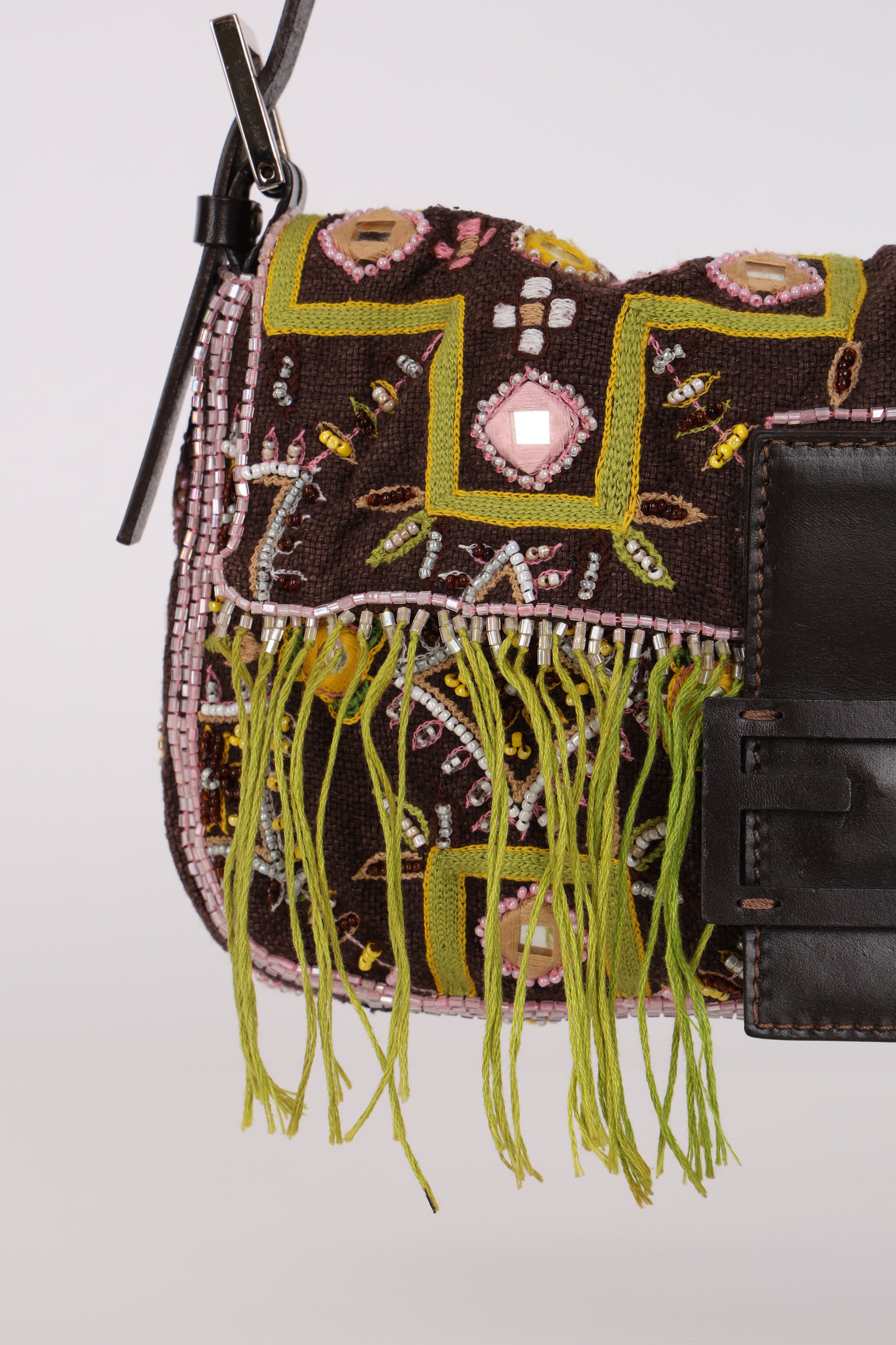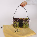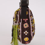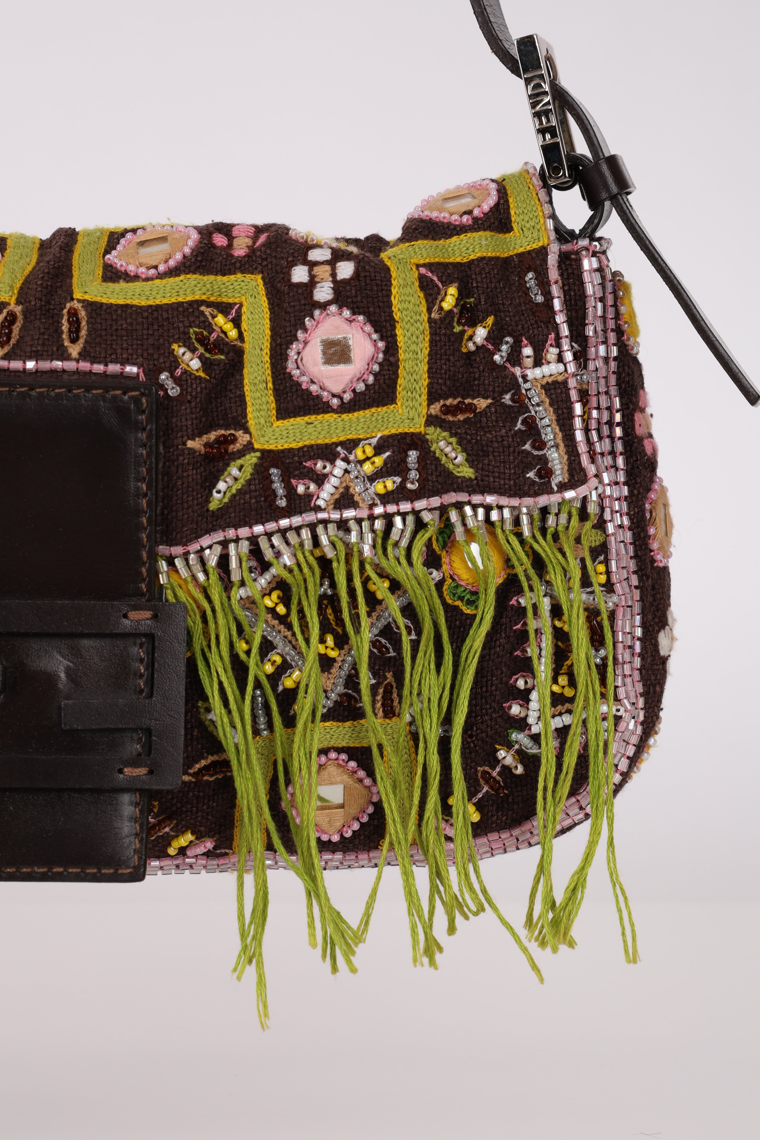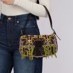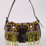 Limited Edition Fendi Brown Embroidered Fringe Beads Baguette Bag