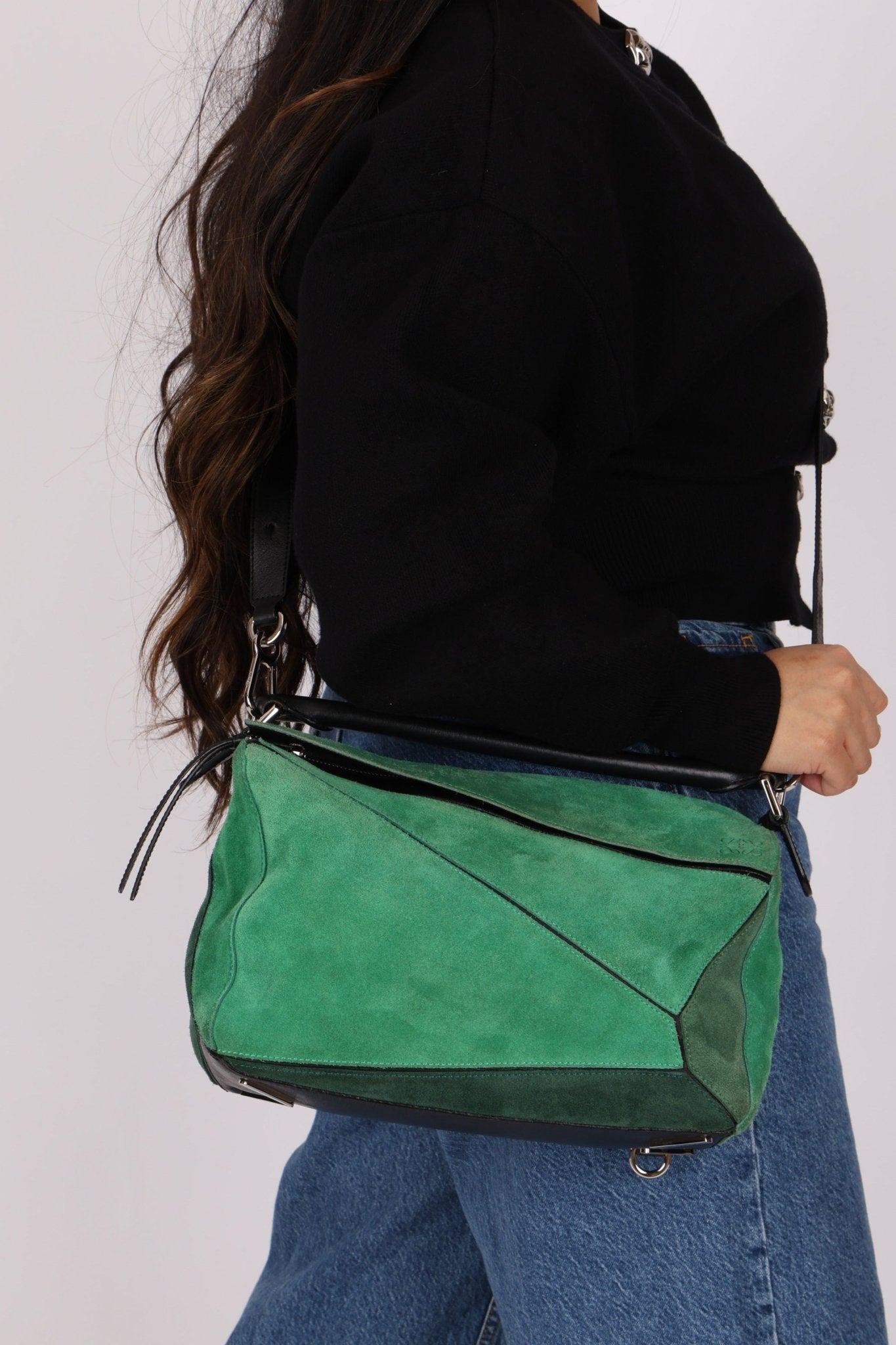 Loewe Emerald Suede Medium Puzzle Bag - FashioNica