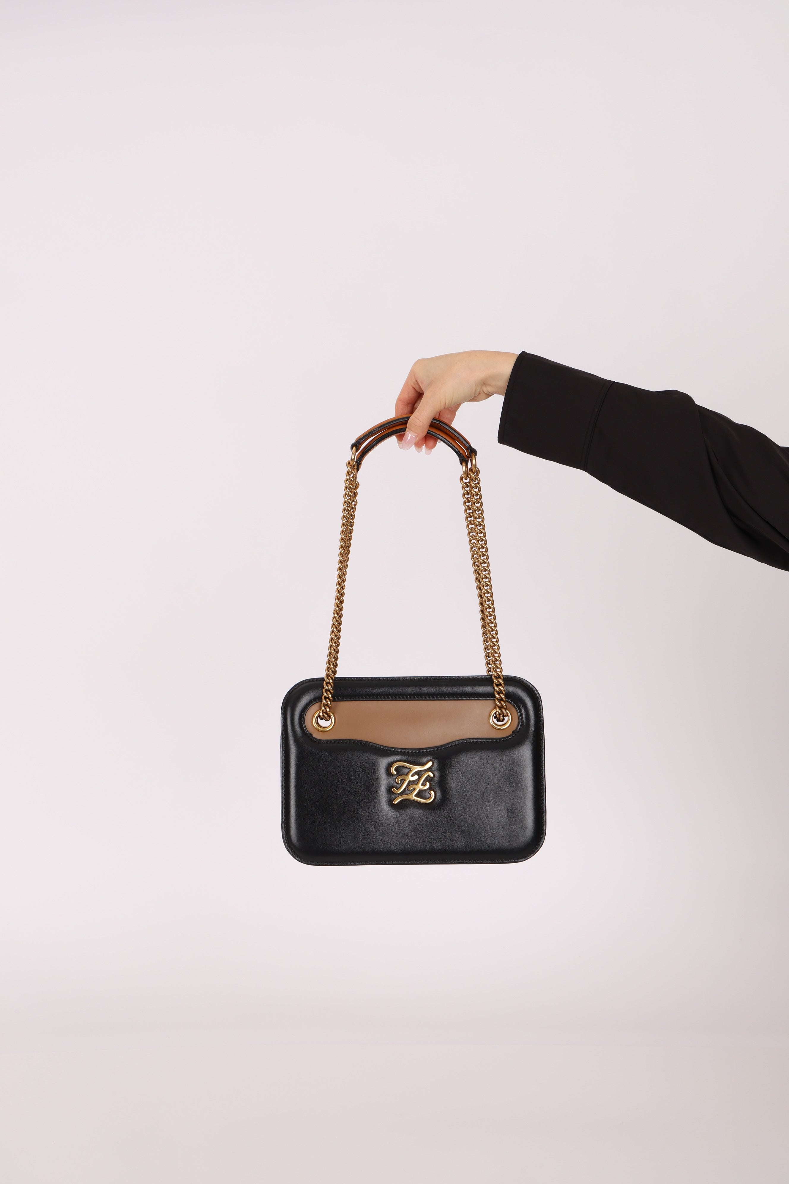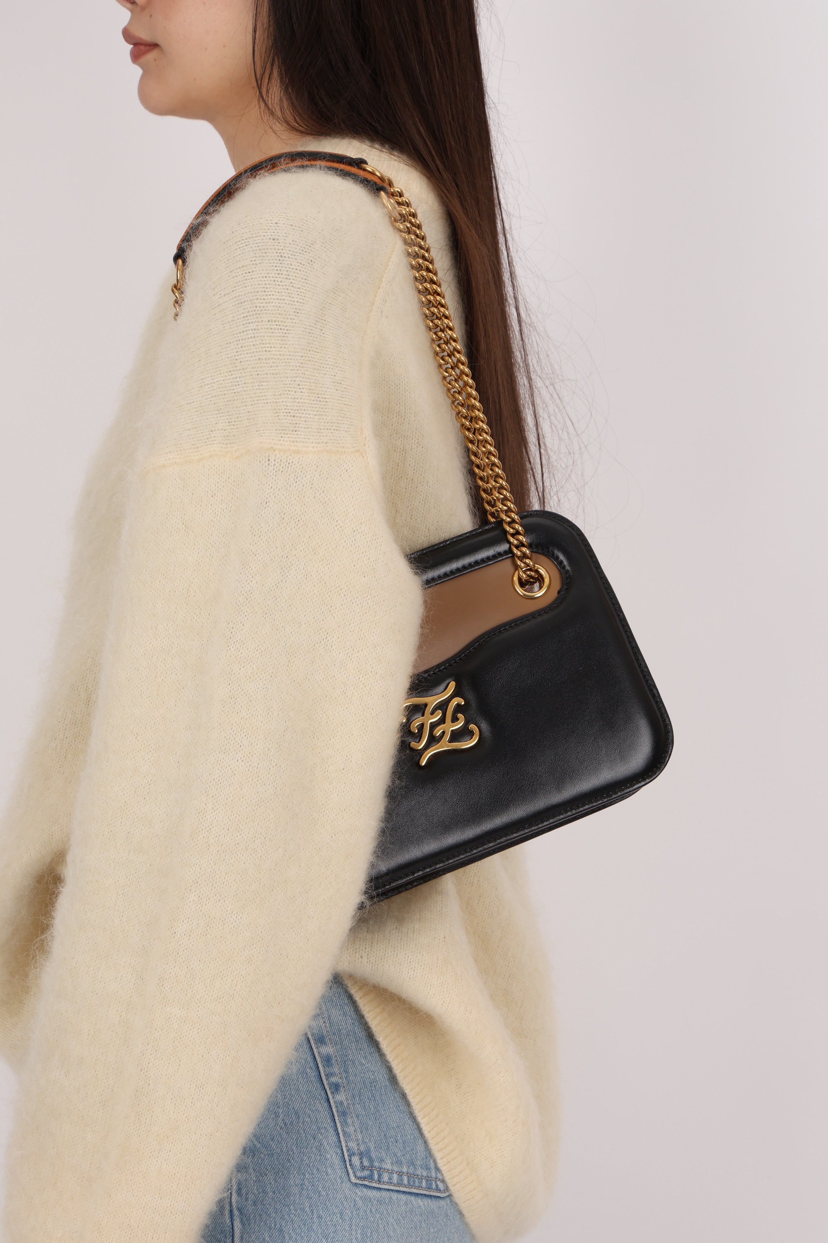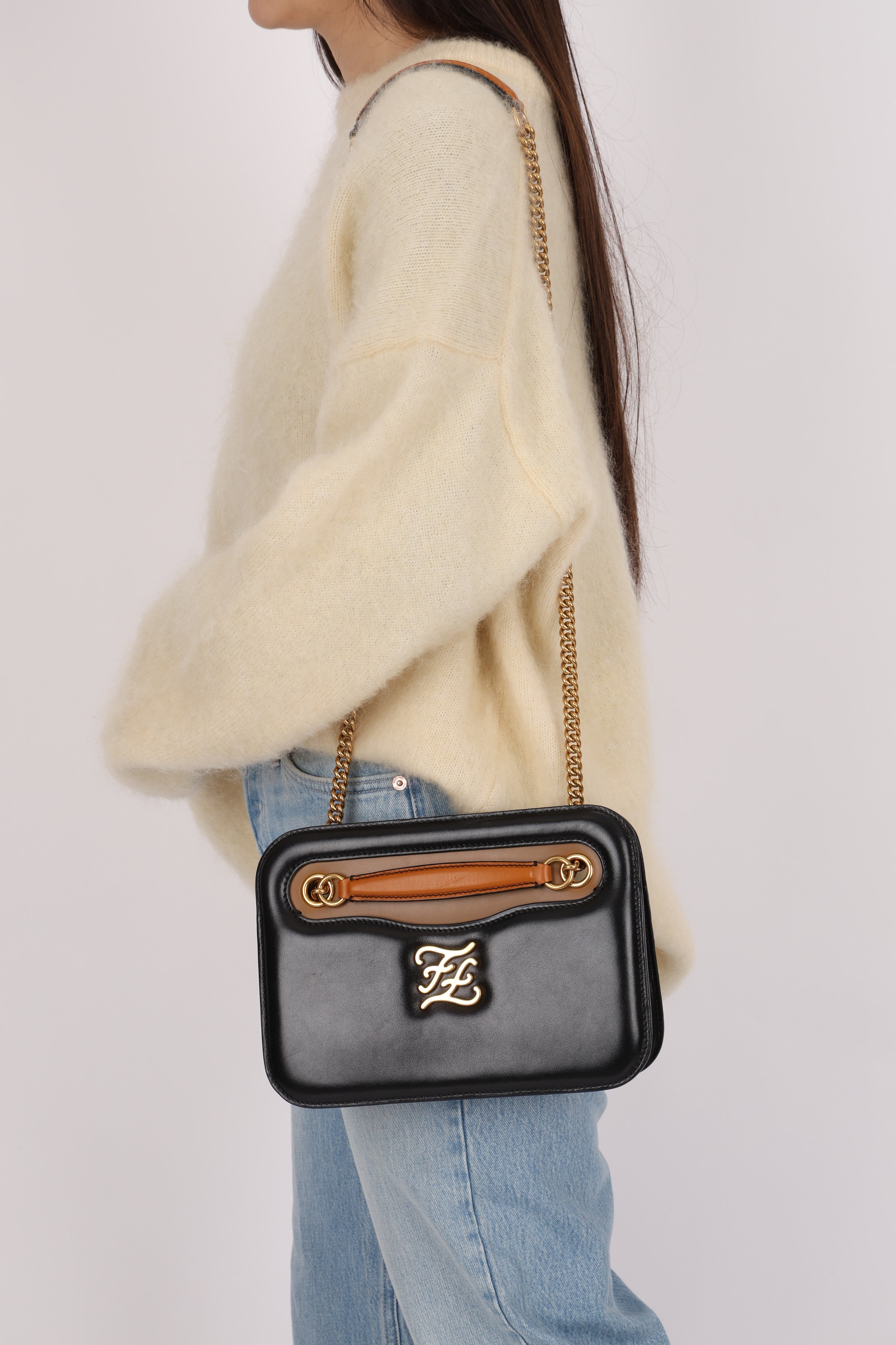 Fendi Leather Black Karligraphy Pocket Chain Bag