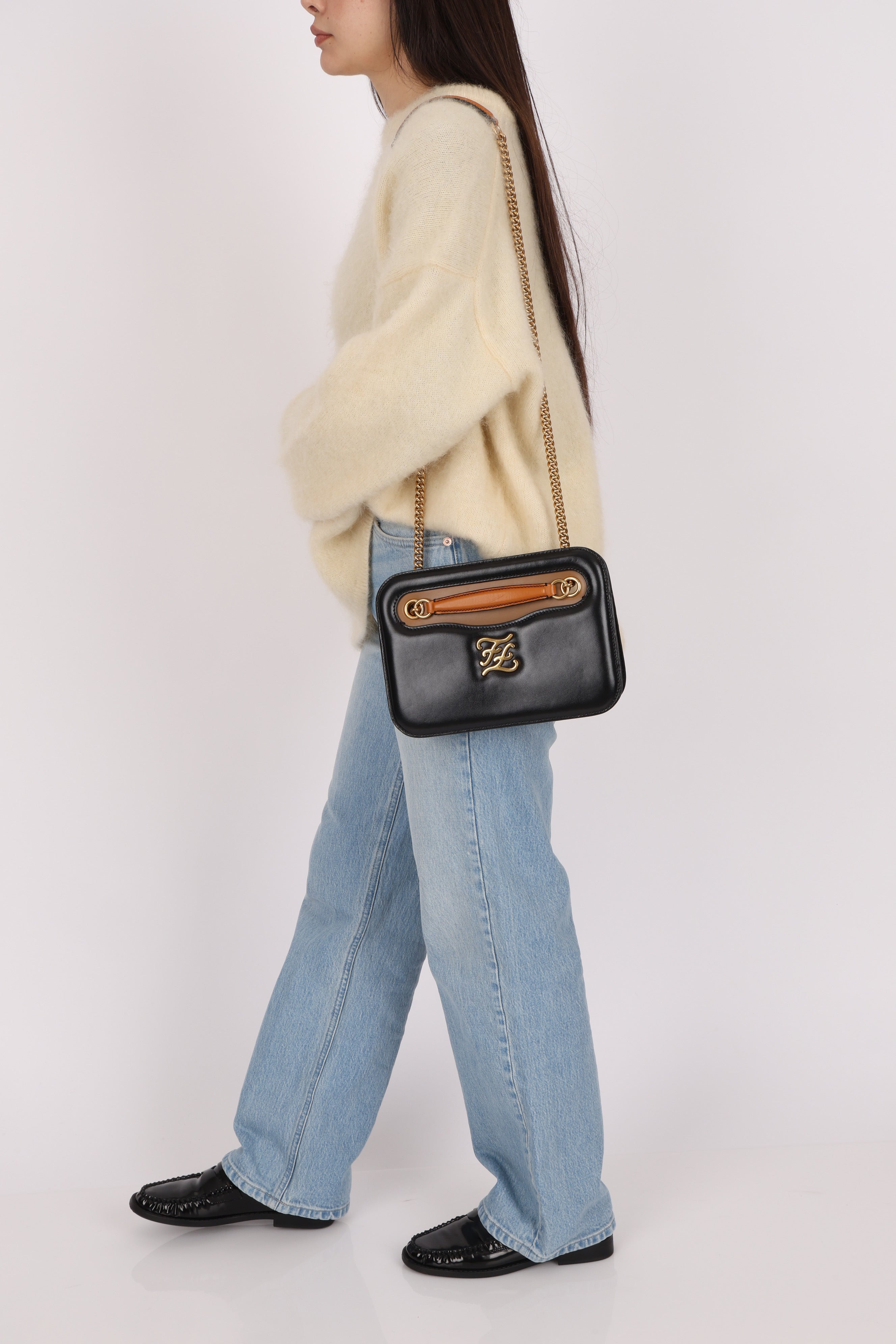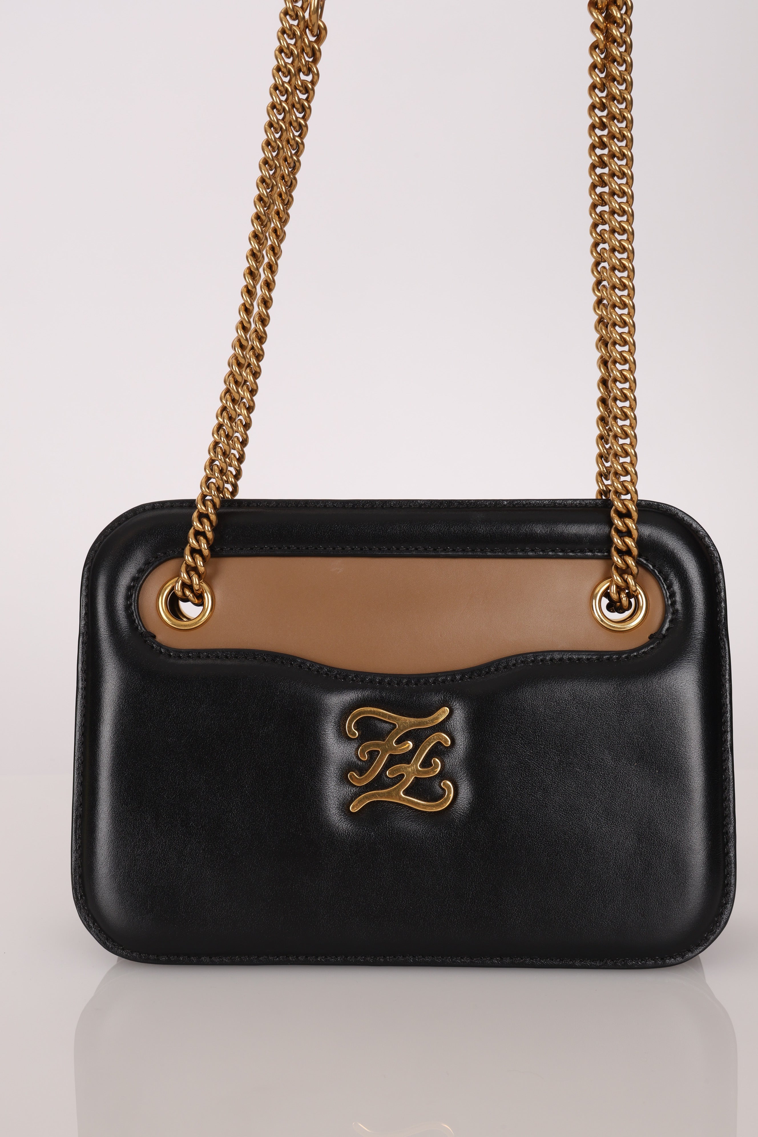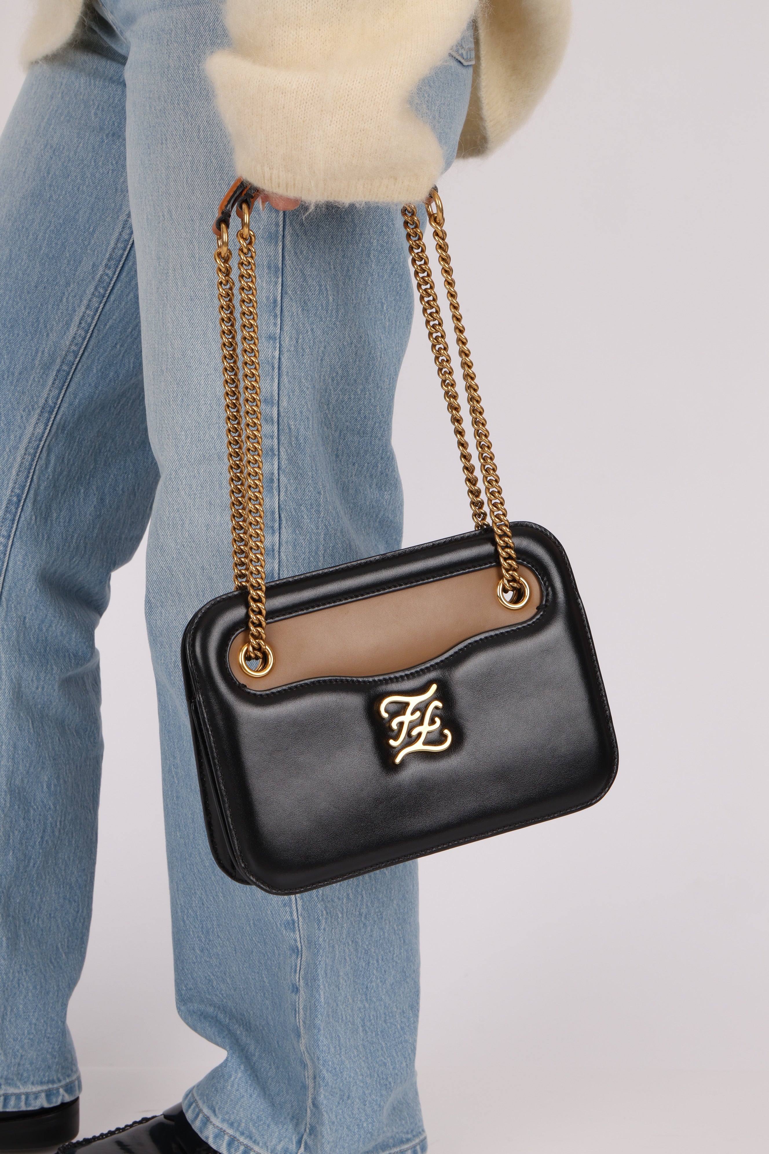 Fendi Leather Black Karligraphy Pocket Chain Bag