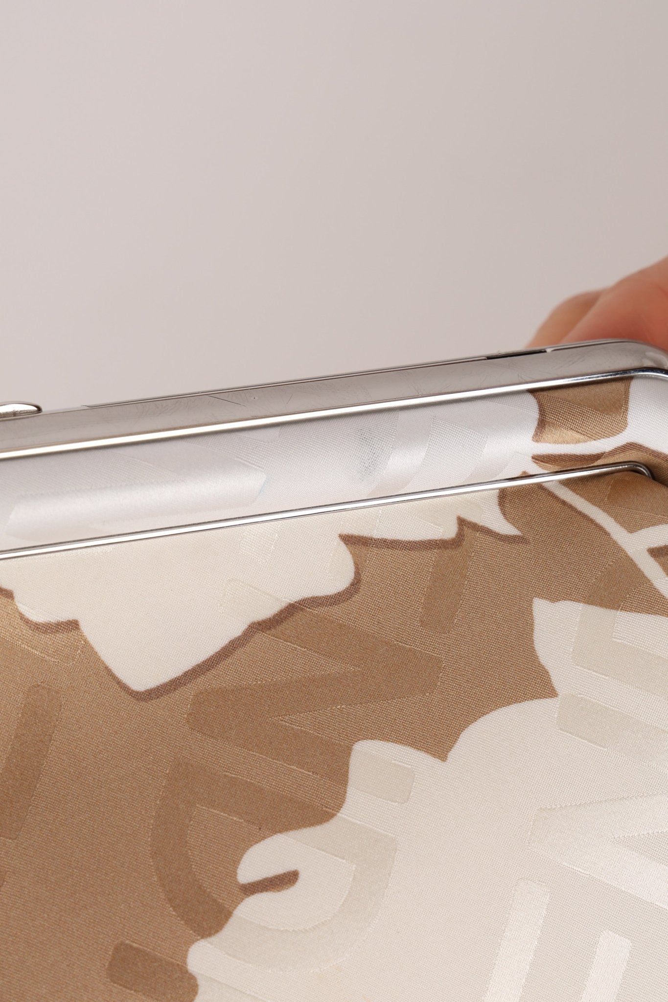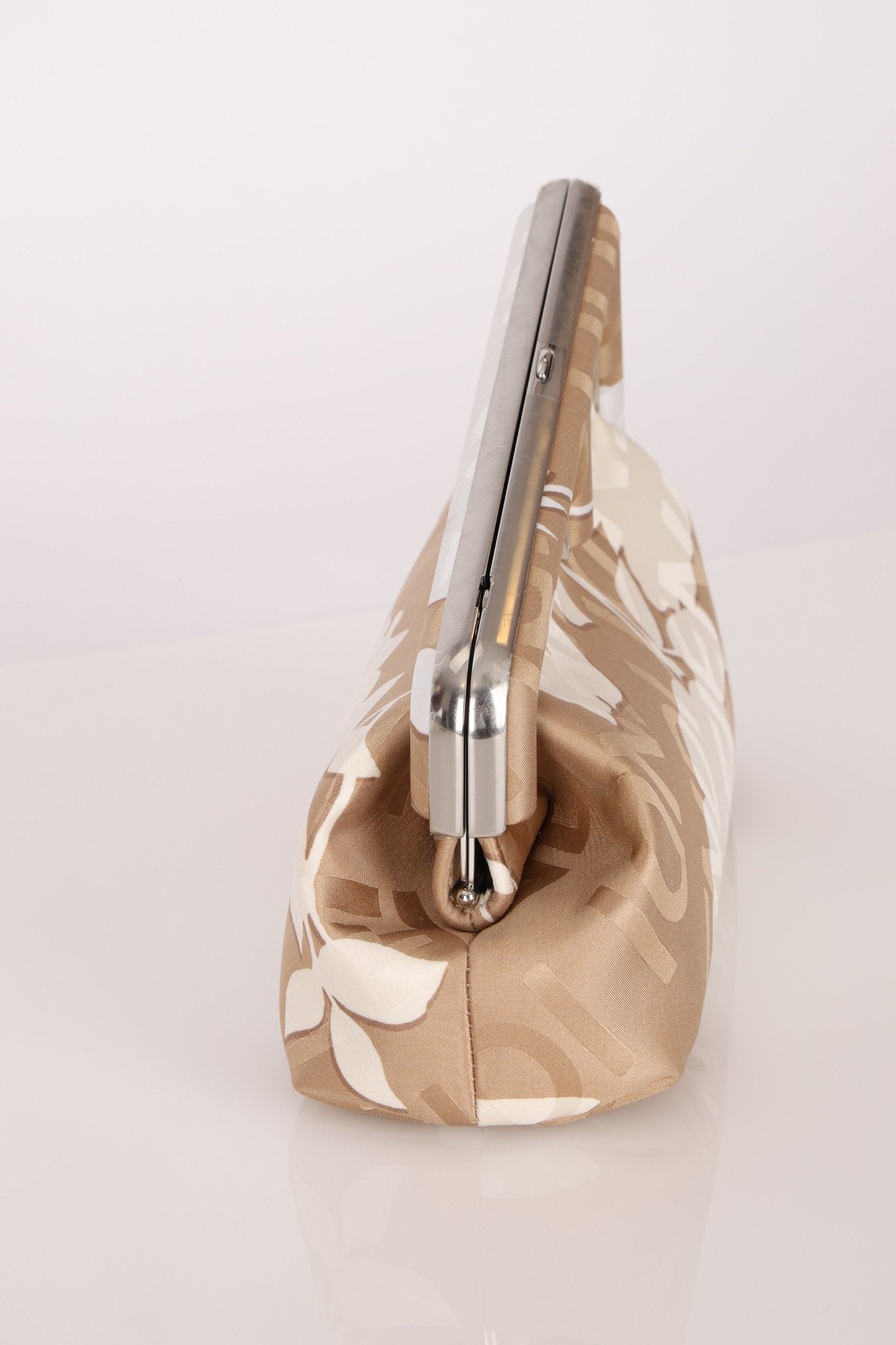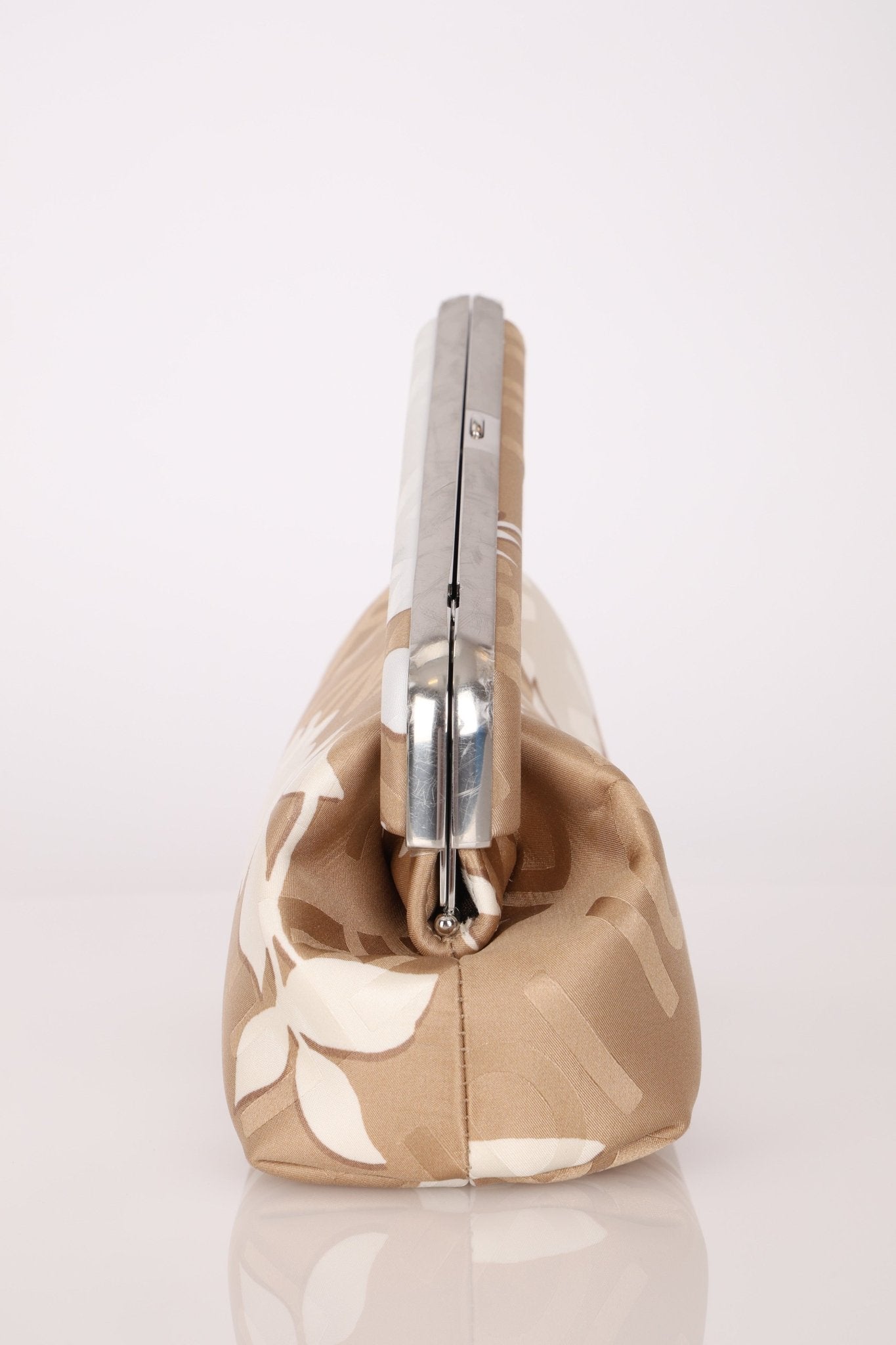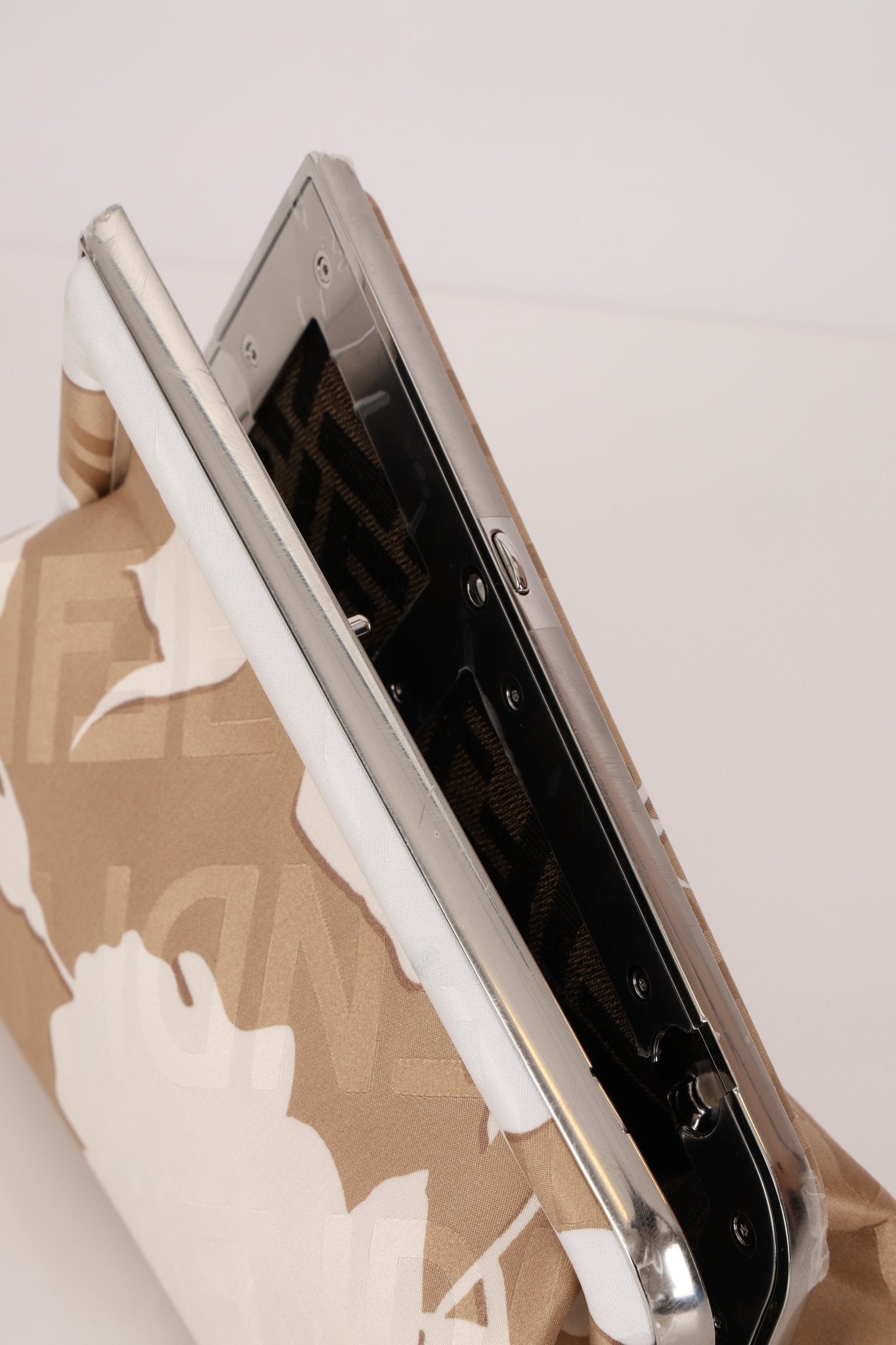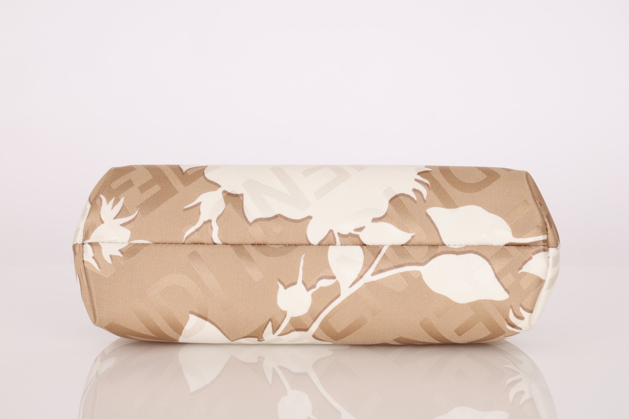 Kim x Kim came together to design a limited edition capsule for Fendi x SKIMS, with the intent to merge two distinct, but powerful cultural influence of the two brands. Crafted in beige silk and elegantly adorned with delicate white rose motifs alongside subtle FENDI logos, it beautifully merges the sensual minimalism of SKIMS with Fendi’s refined luxury. The result is a collectible statement piece that epitomizes the collaboration’s harmonious balance of heritage and modernity. A bag so limited, it's not currently found anywhere else online!