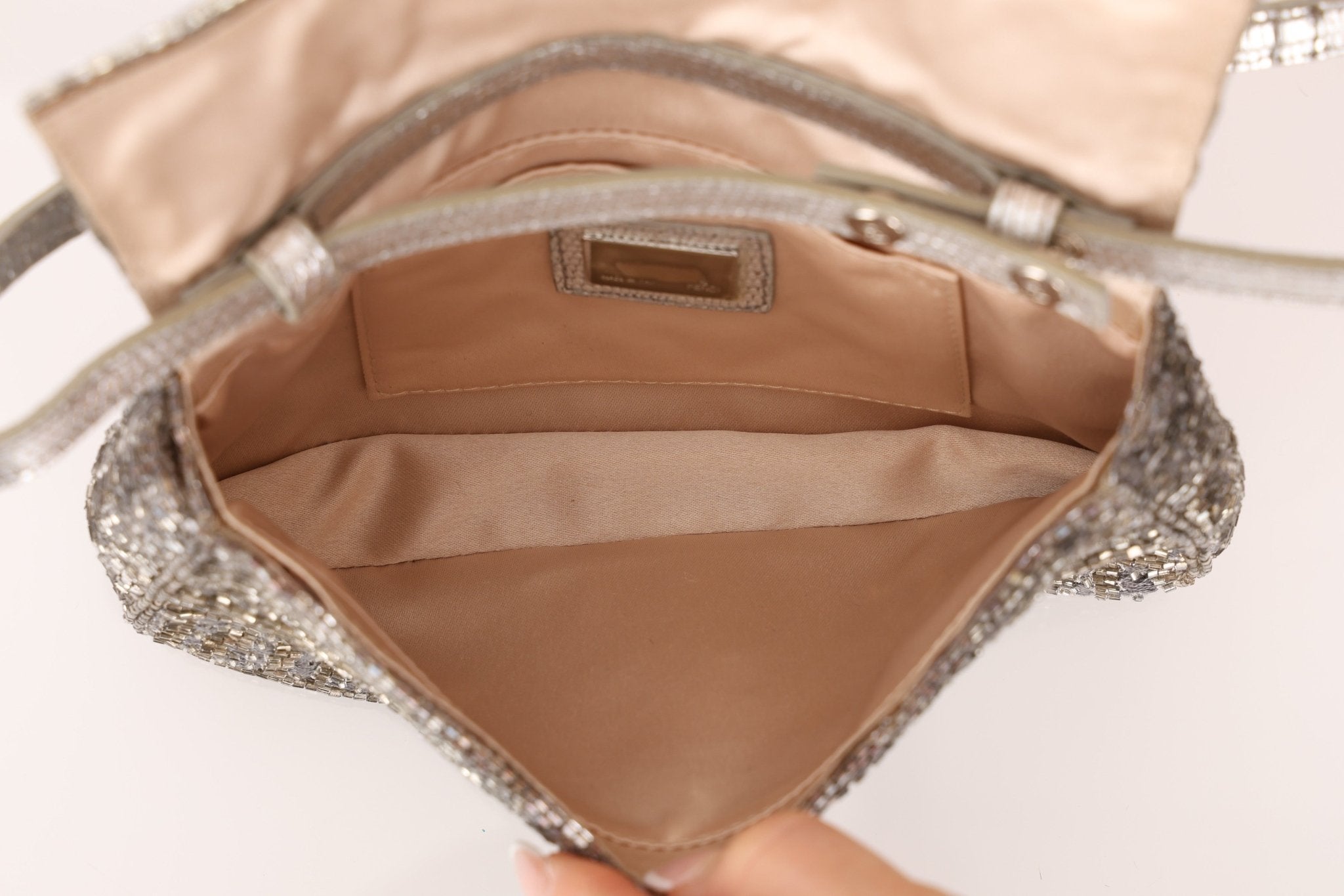 Ultra - Rare Fendi 2003 Karung Trimmed Metallic Beaded Zucchino Mini Baguette - FashioNica