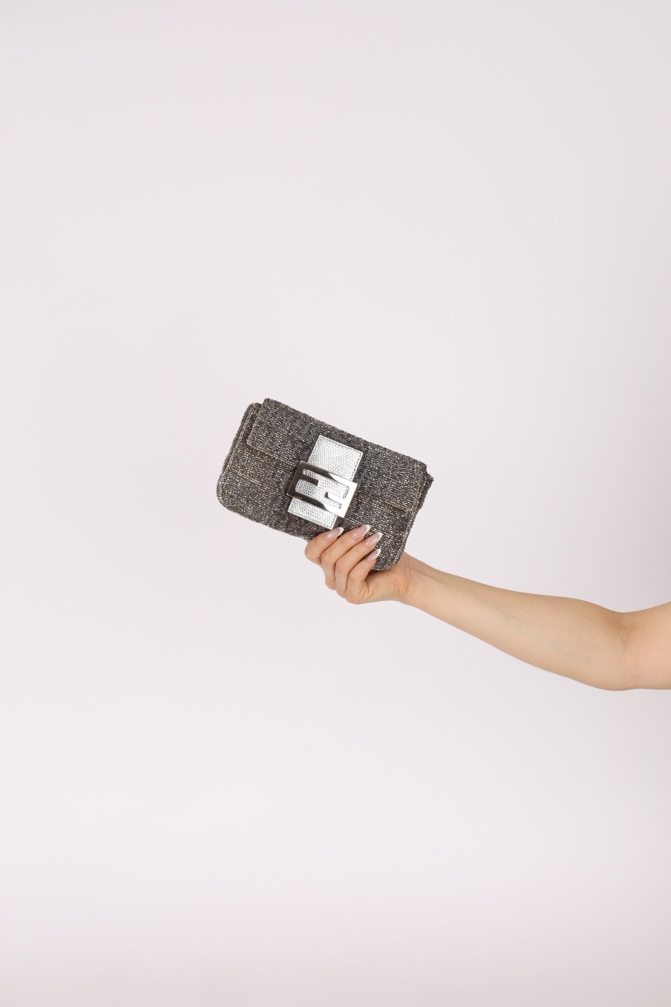 A rare gem in every sense, this Fendi Mini Baguette shimmers with hand-applied metallic beads and is finished with an exotic lizard strap—a pairing that exudes understated glamour. It's the kind of elusive find that reminds us why Fendi remains at the forefront of collectible vintage luxury.