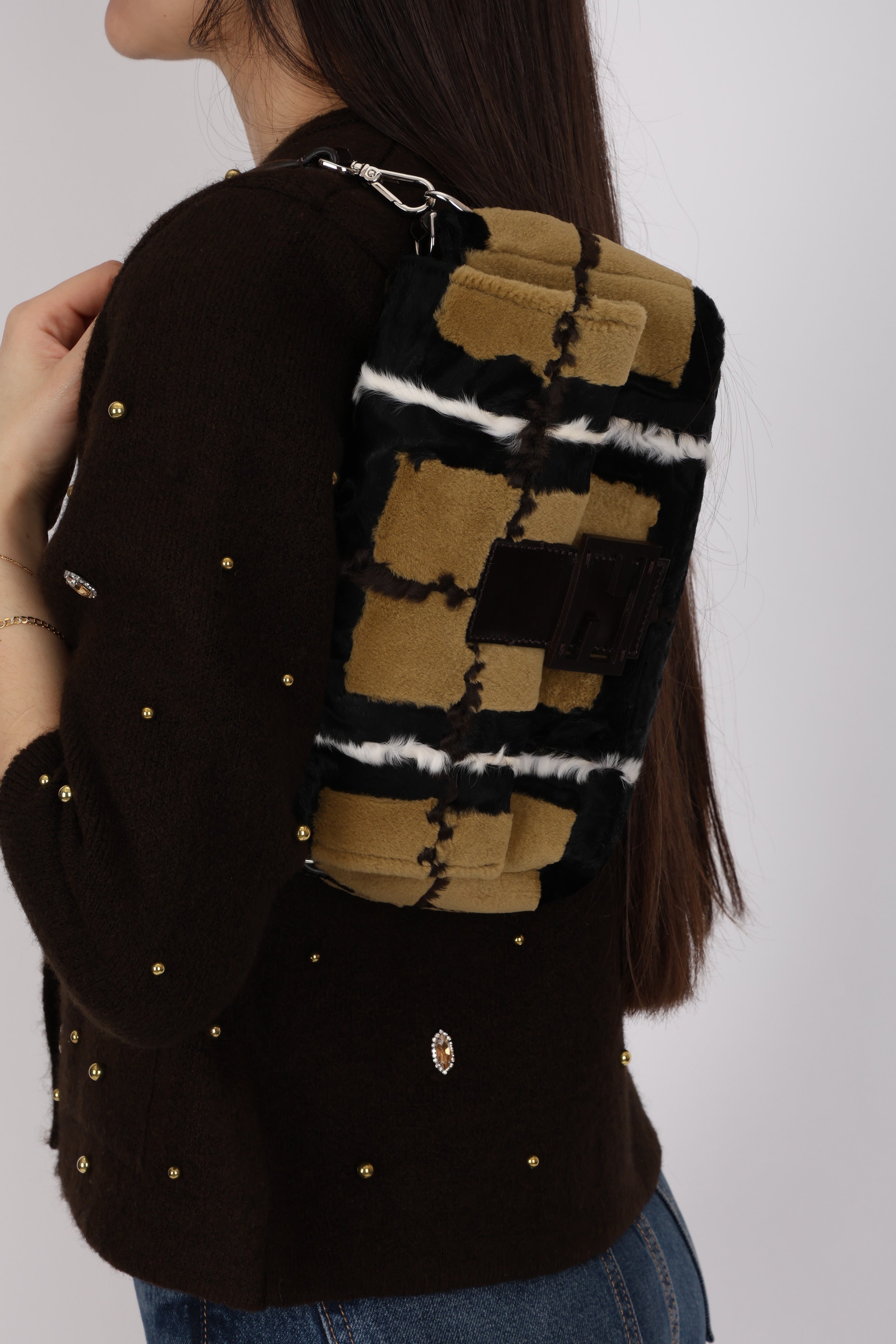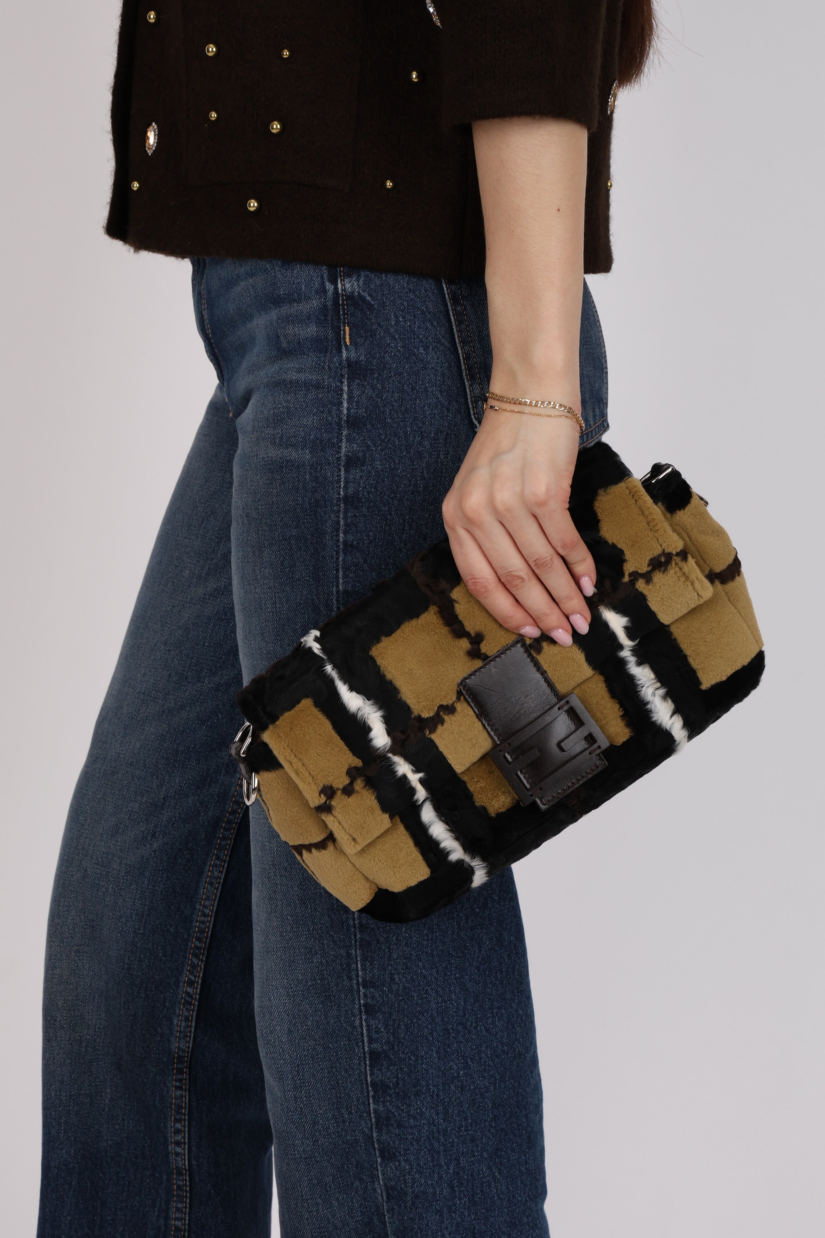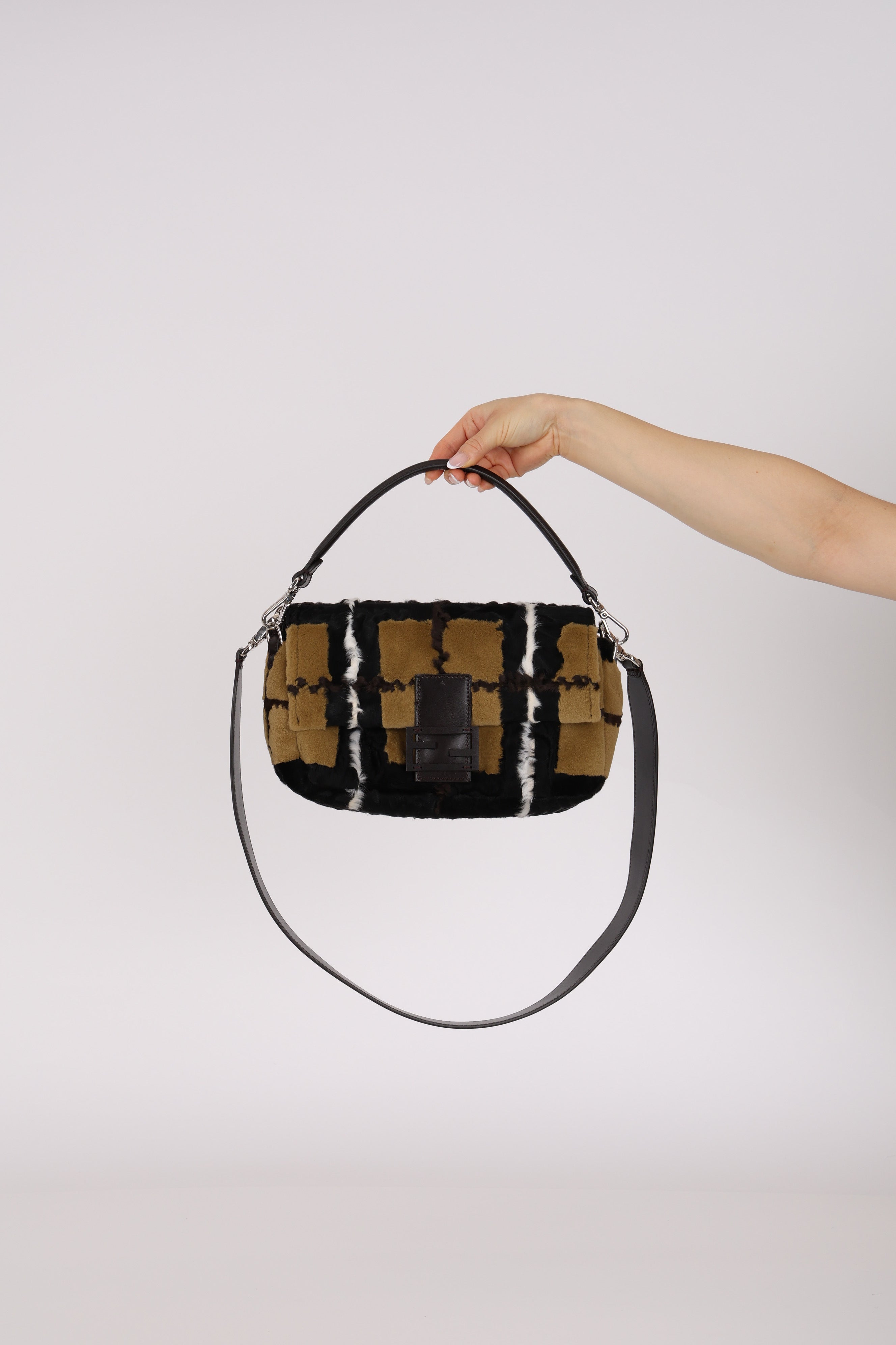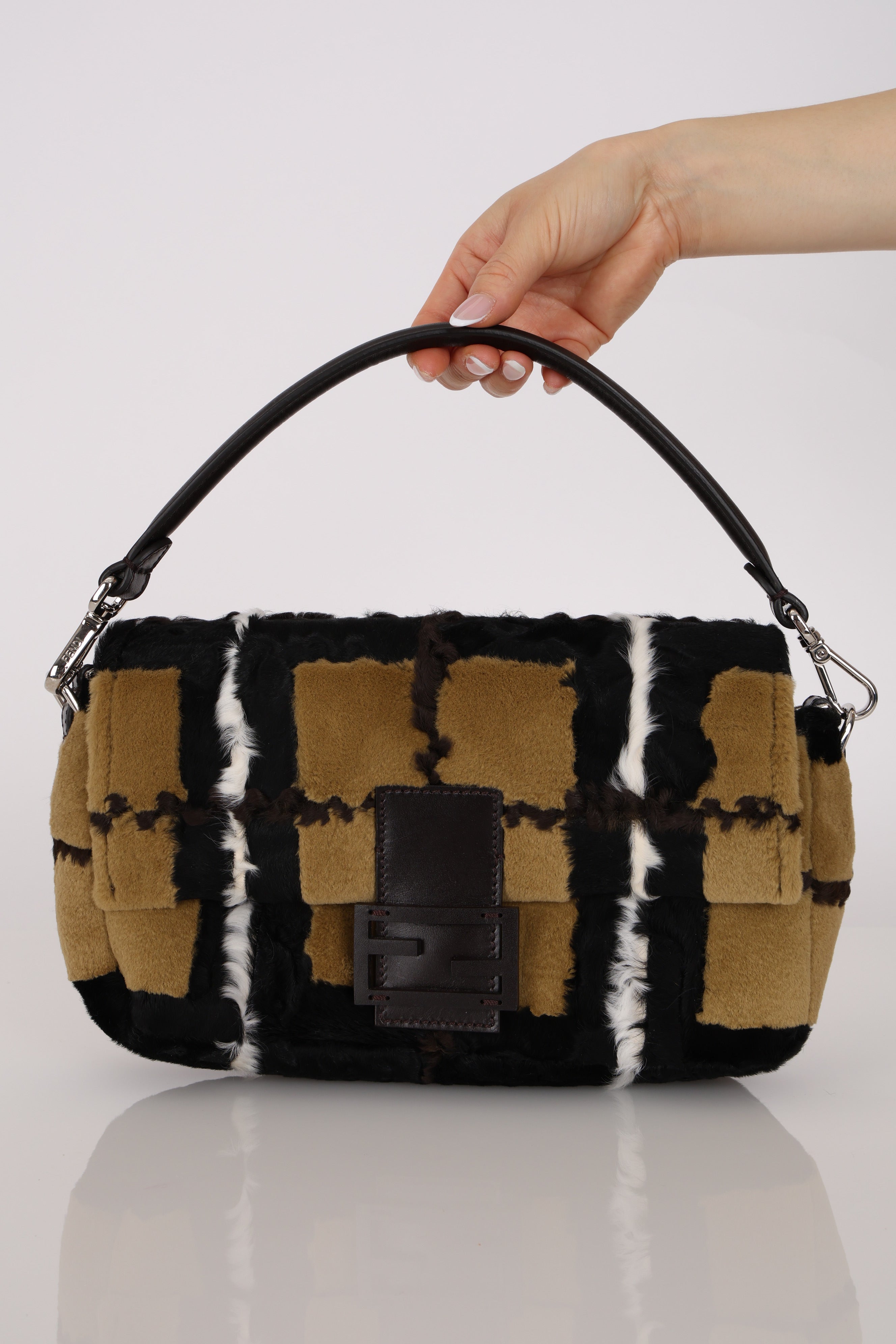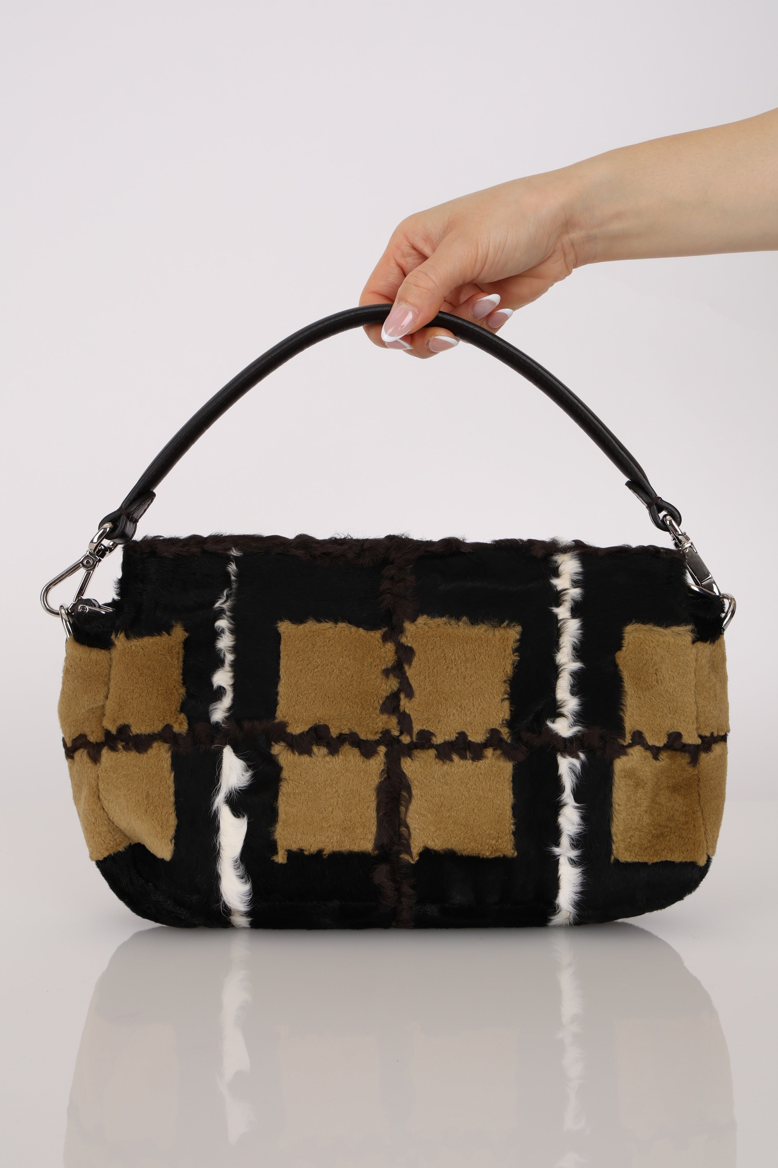 Fendi Multicolor Plaid Brush Broadtail Fur Baguette Bag
