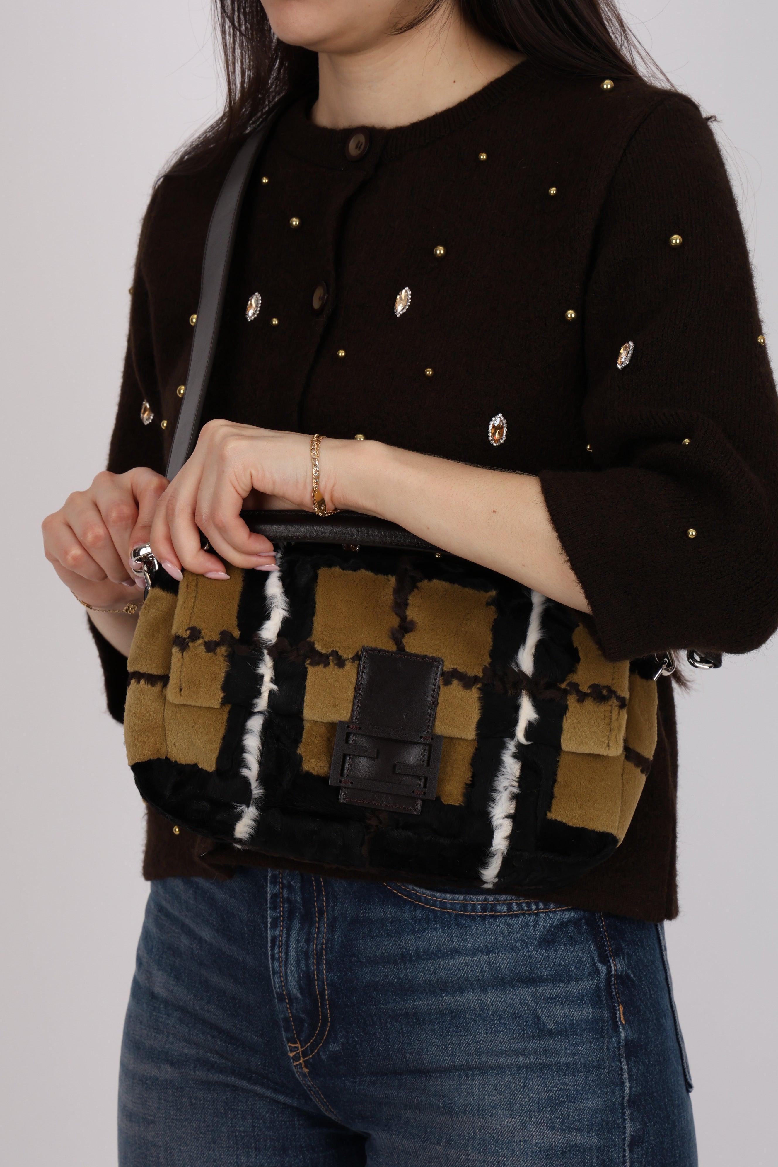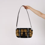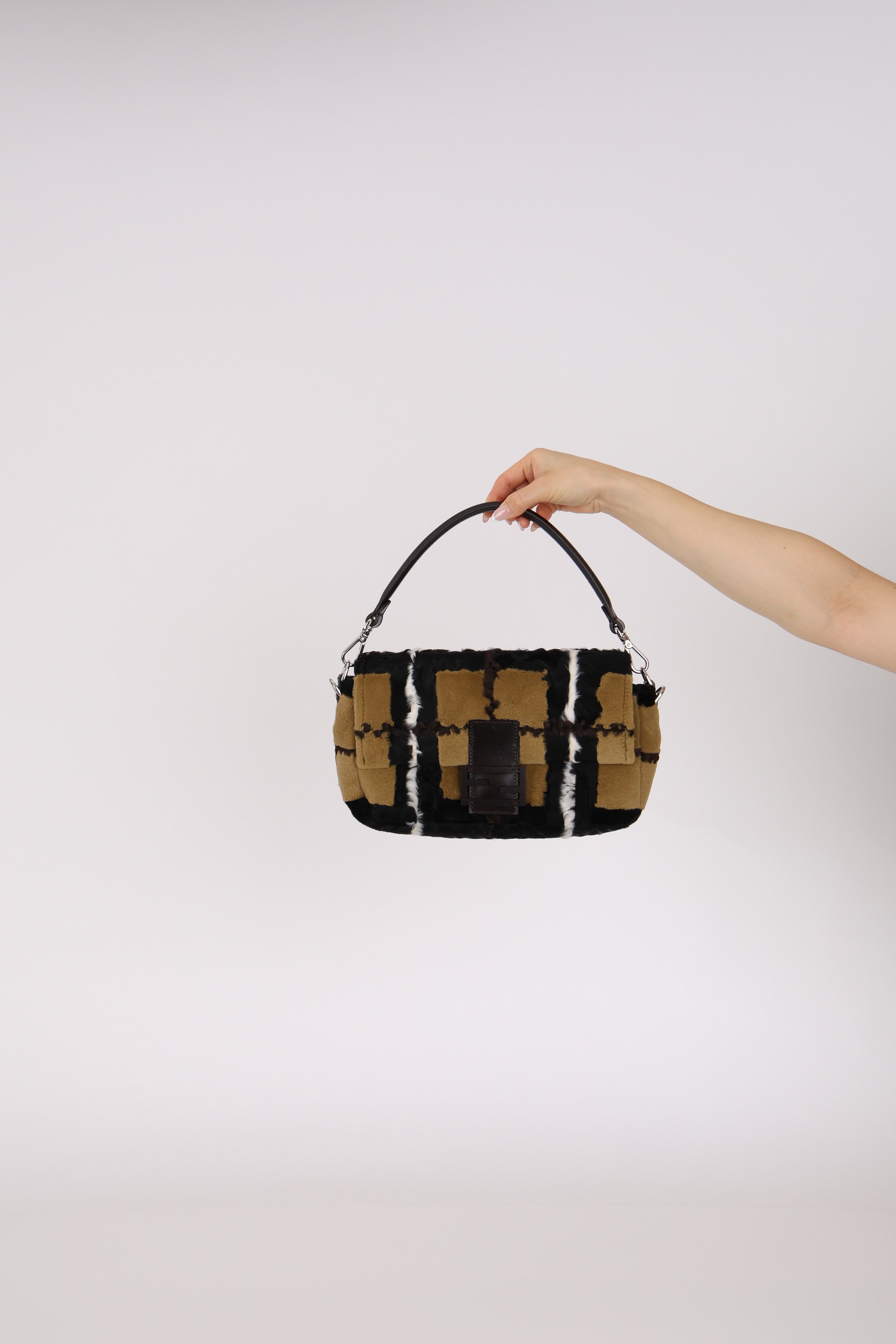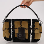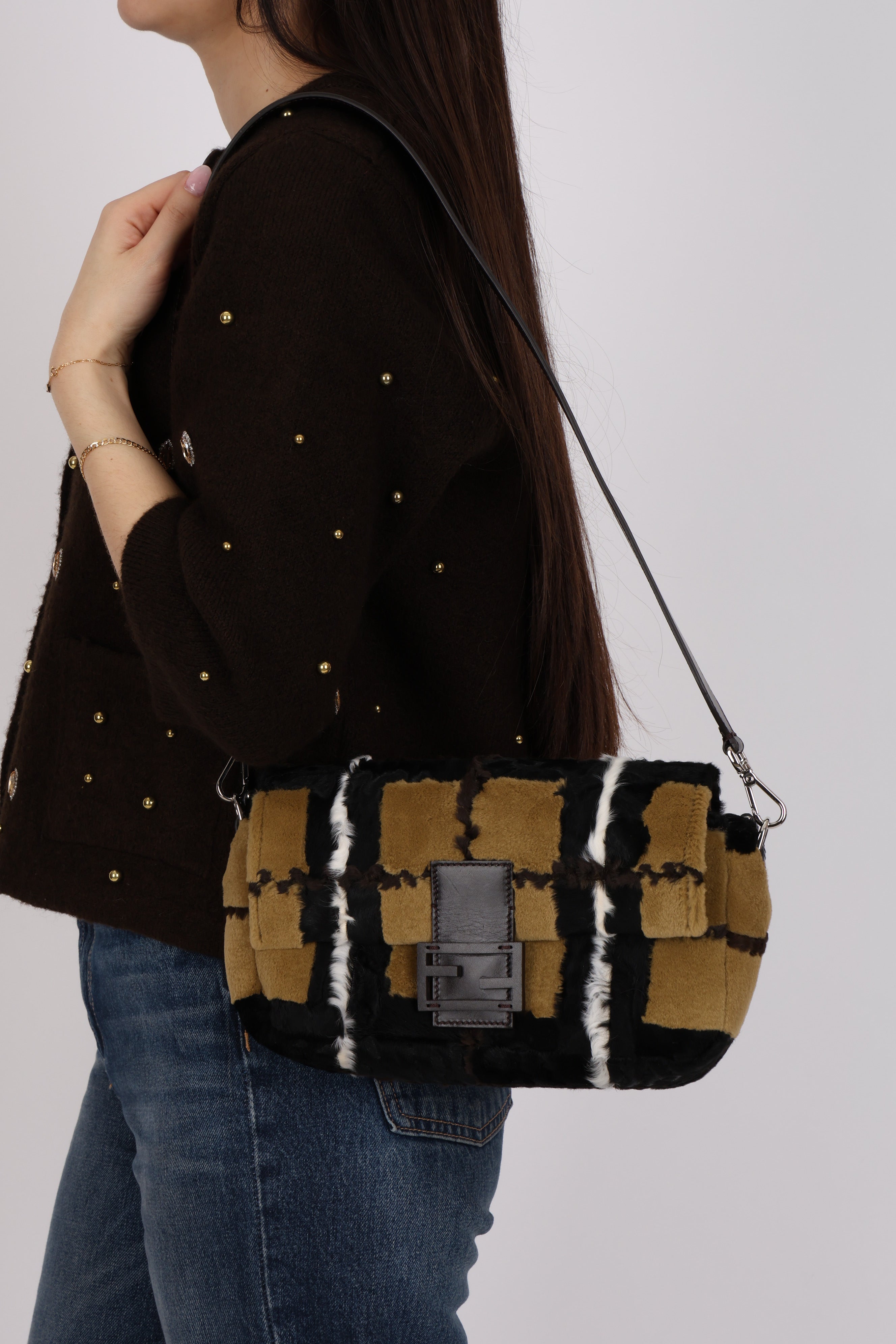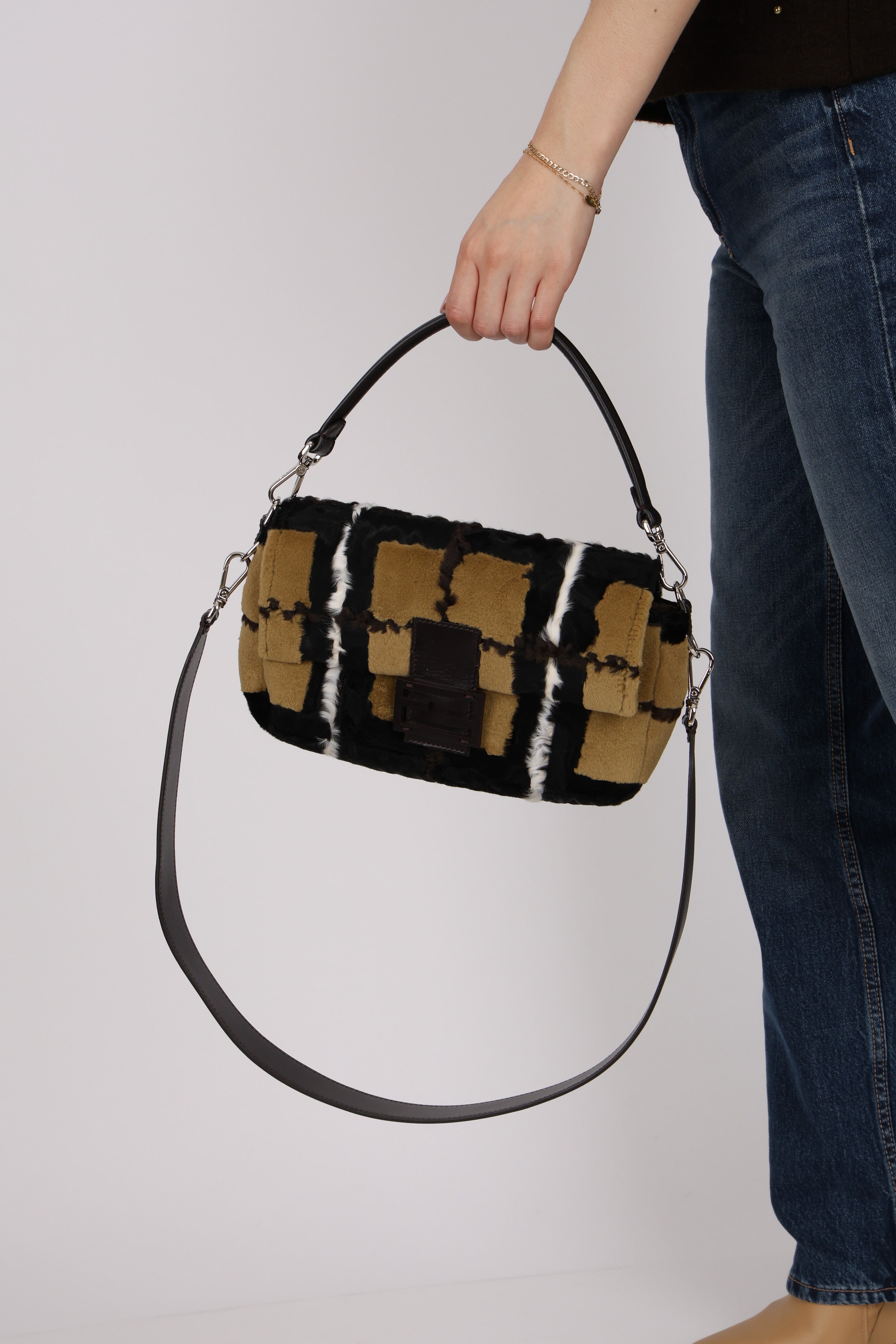 Fendi Multicolor Plaid Brush Broadtail Fur Baguette Bag