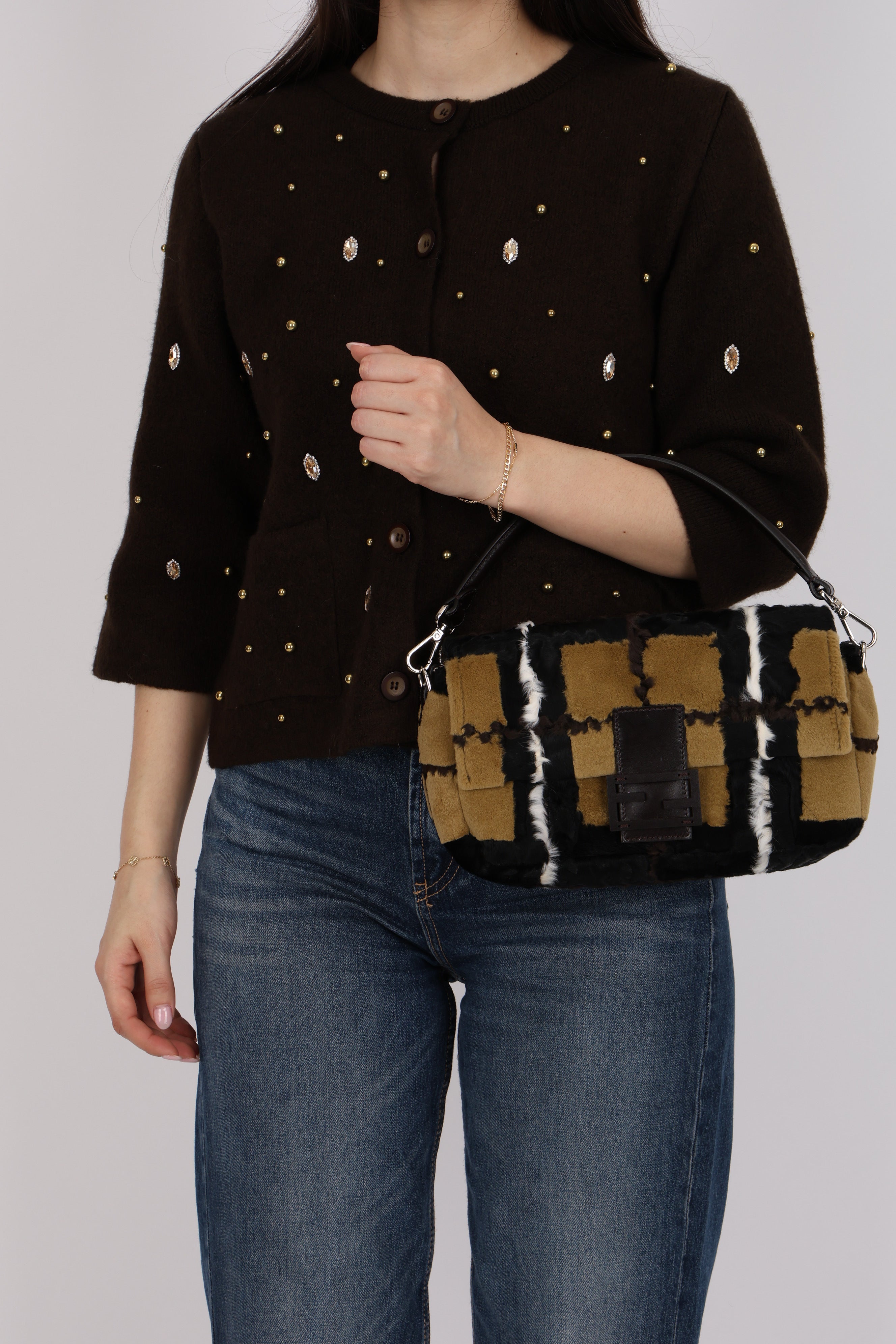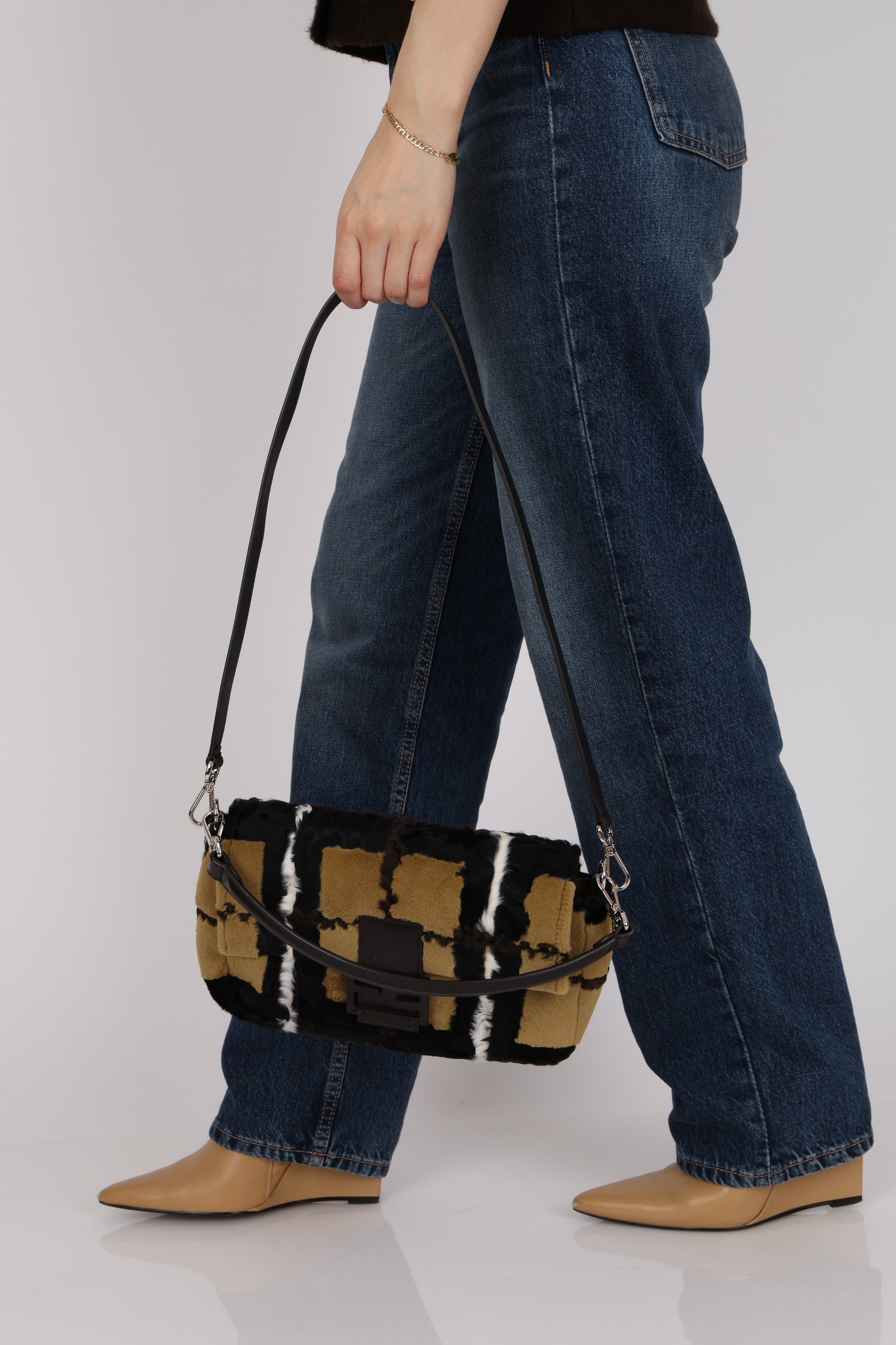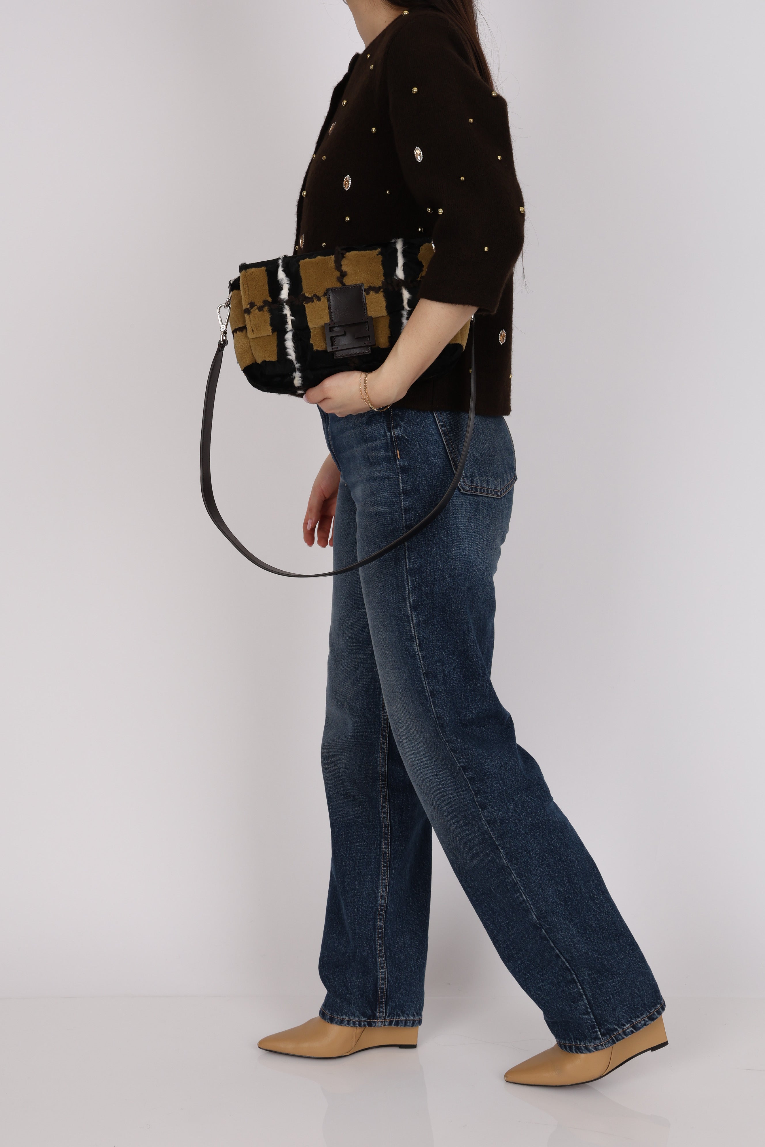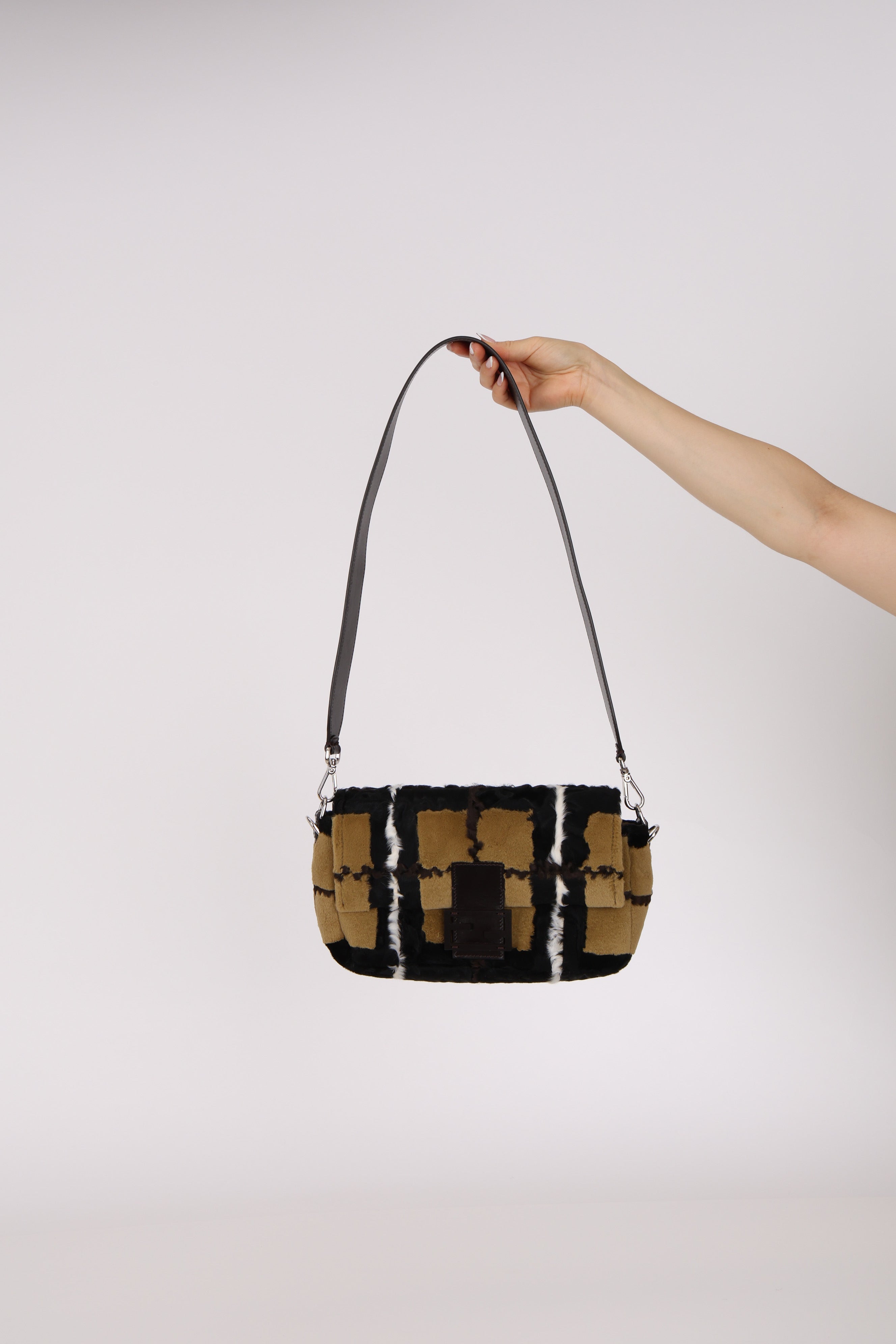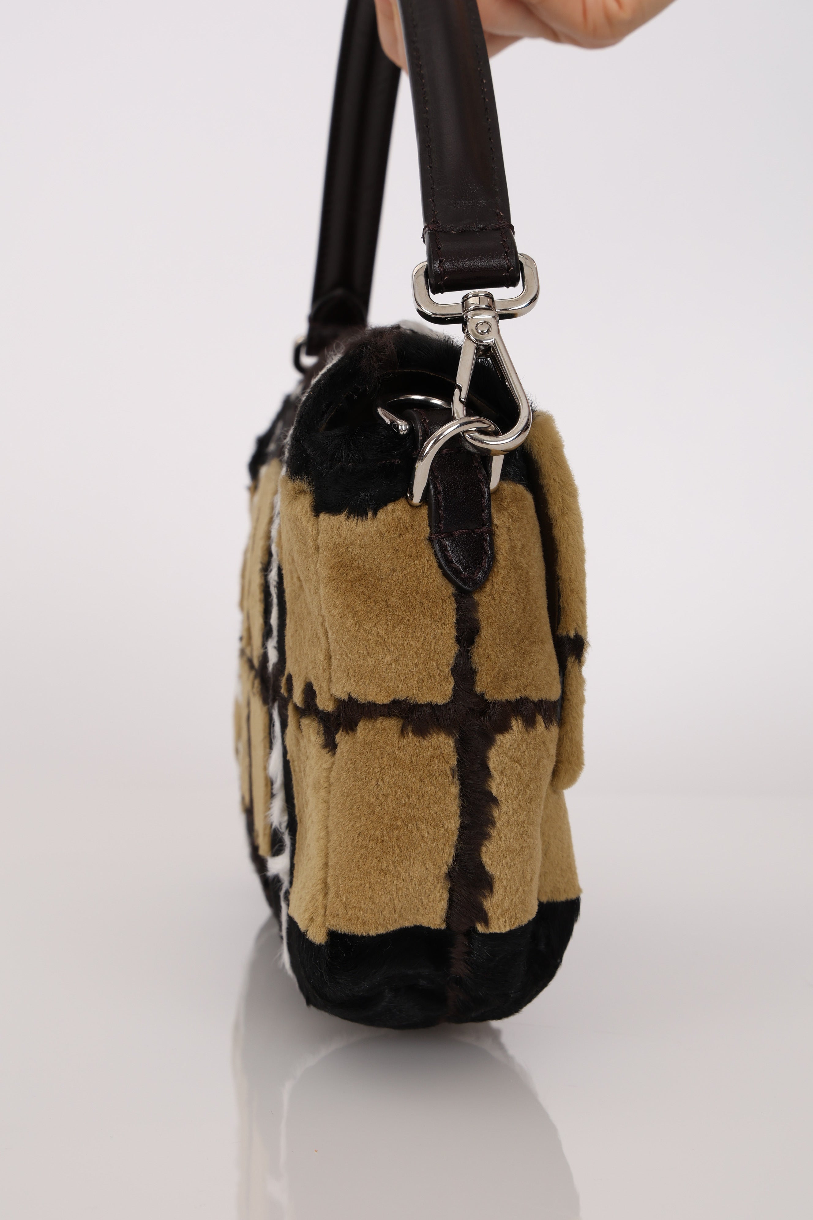Fendi Multicolor Plaid Brush Broadtail Fur Baguette Bag