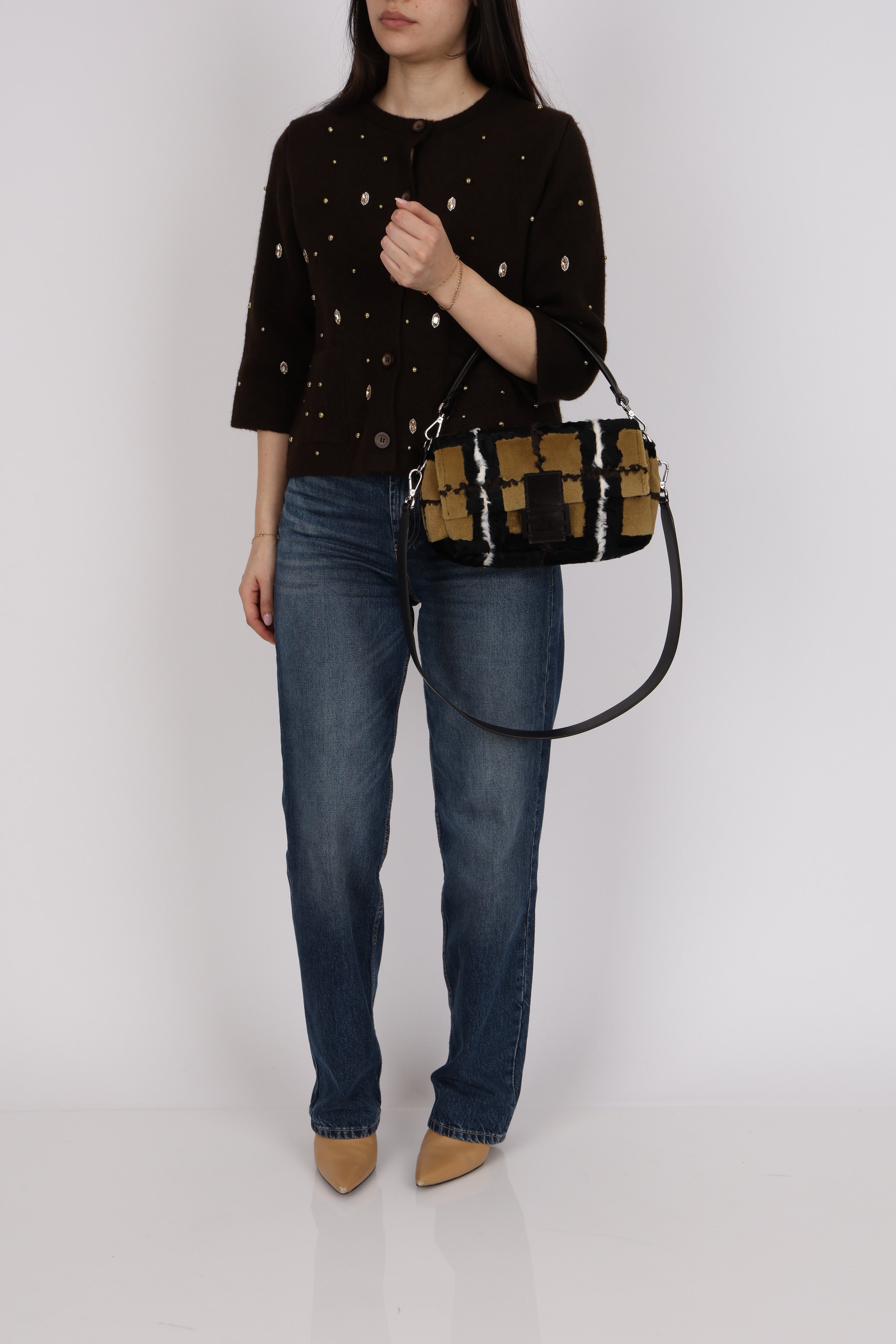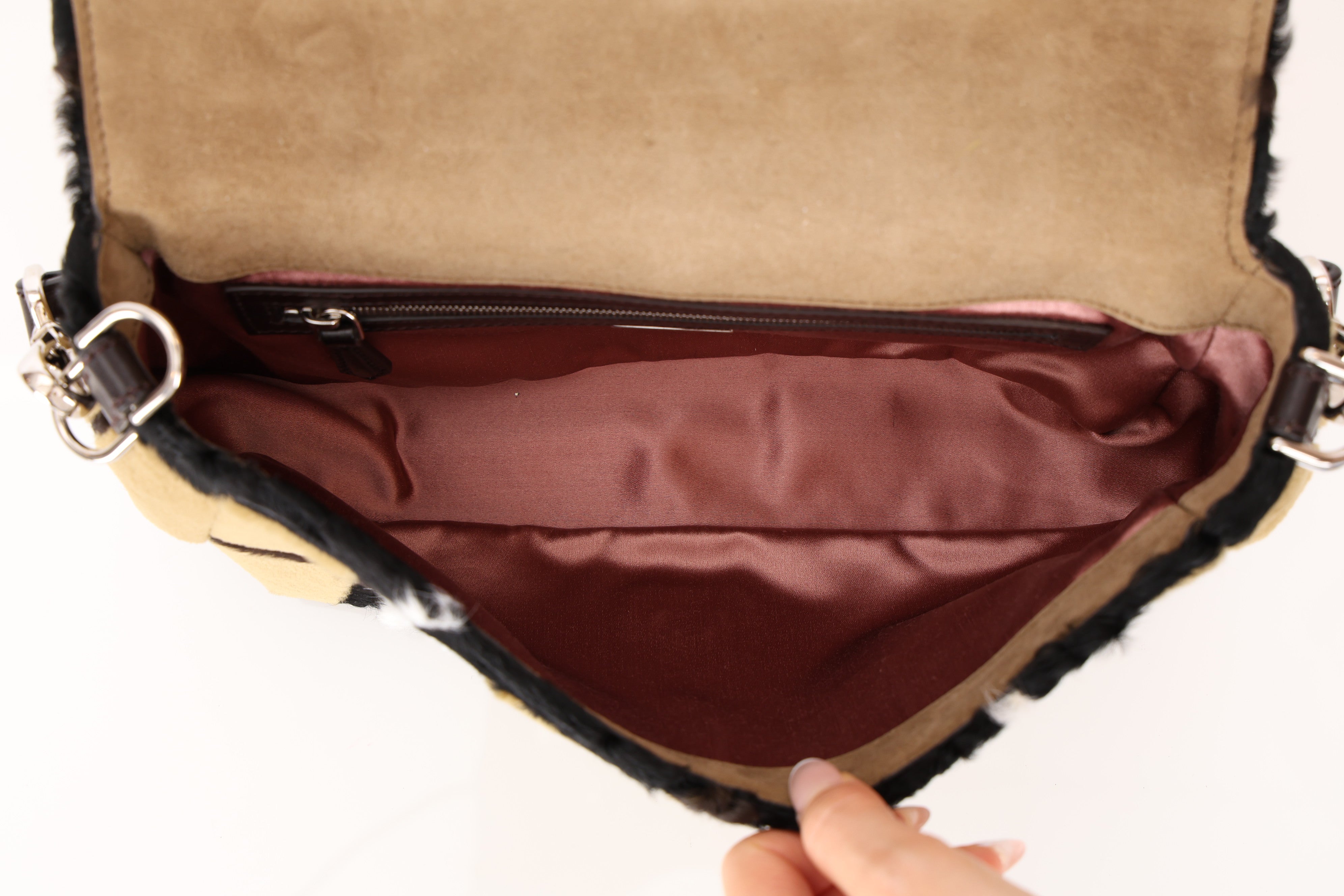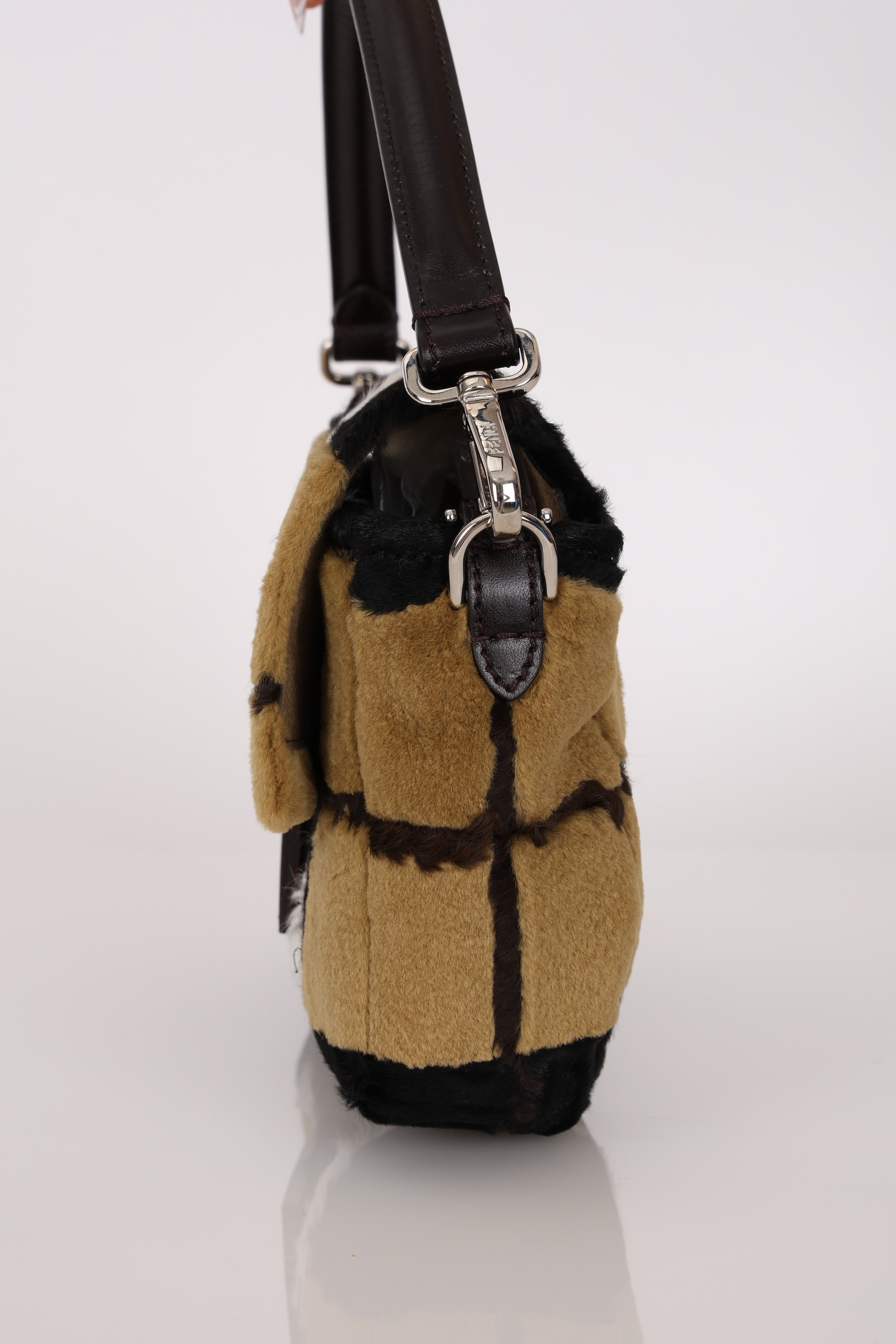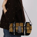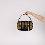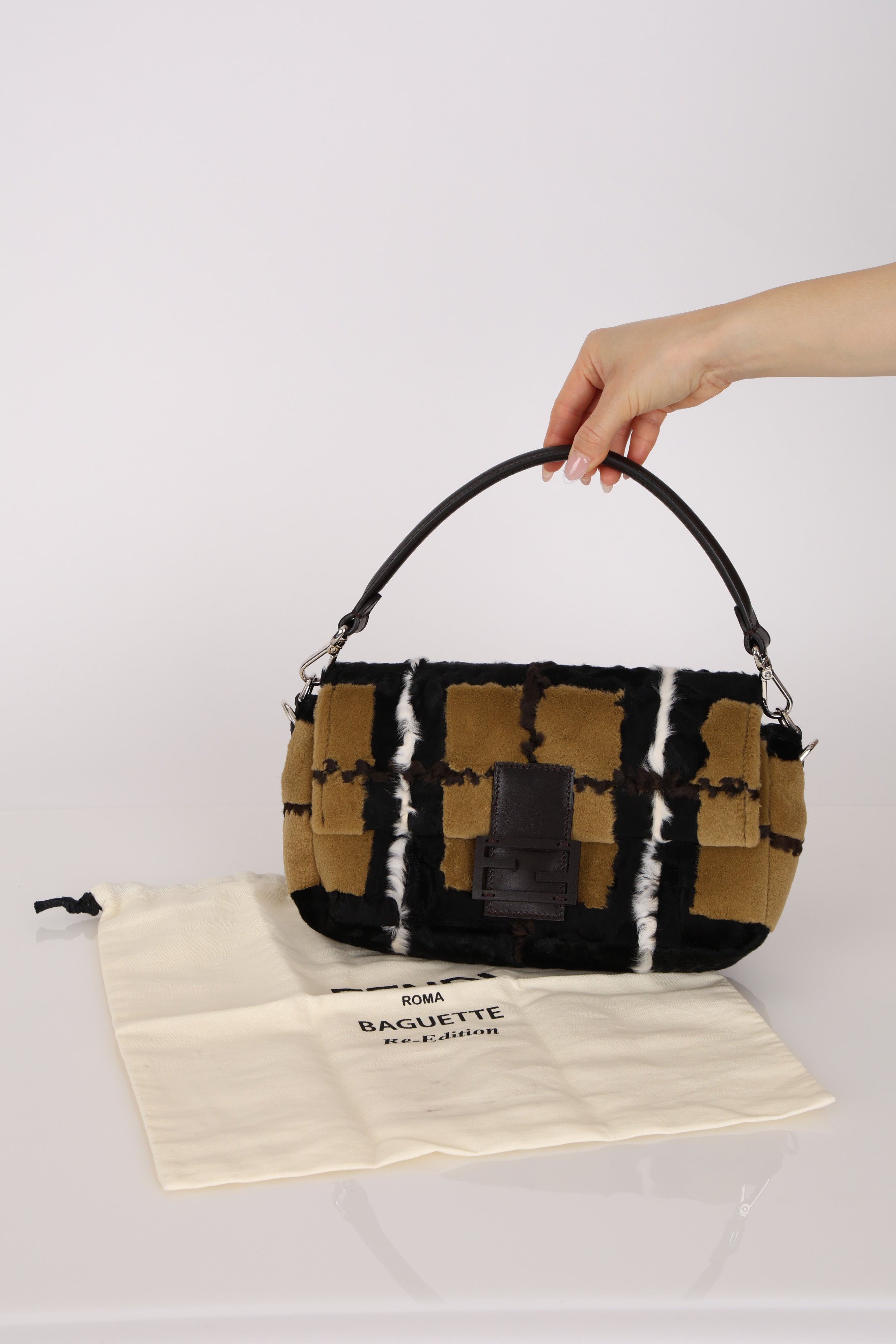 Fendi Multicolor Plaid Brush Broadtail Fur Baguette Bag