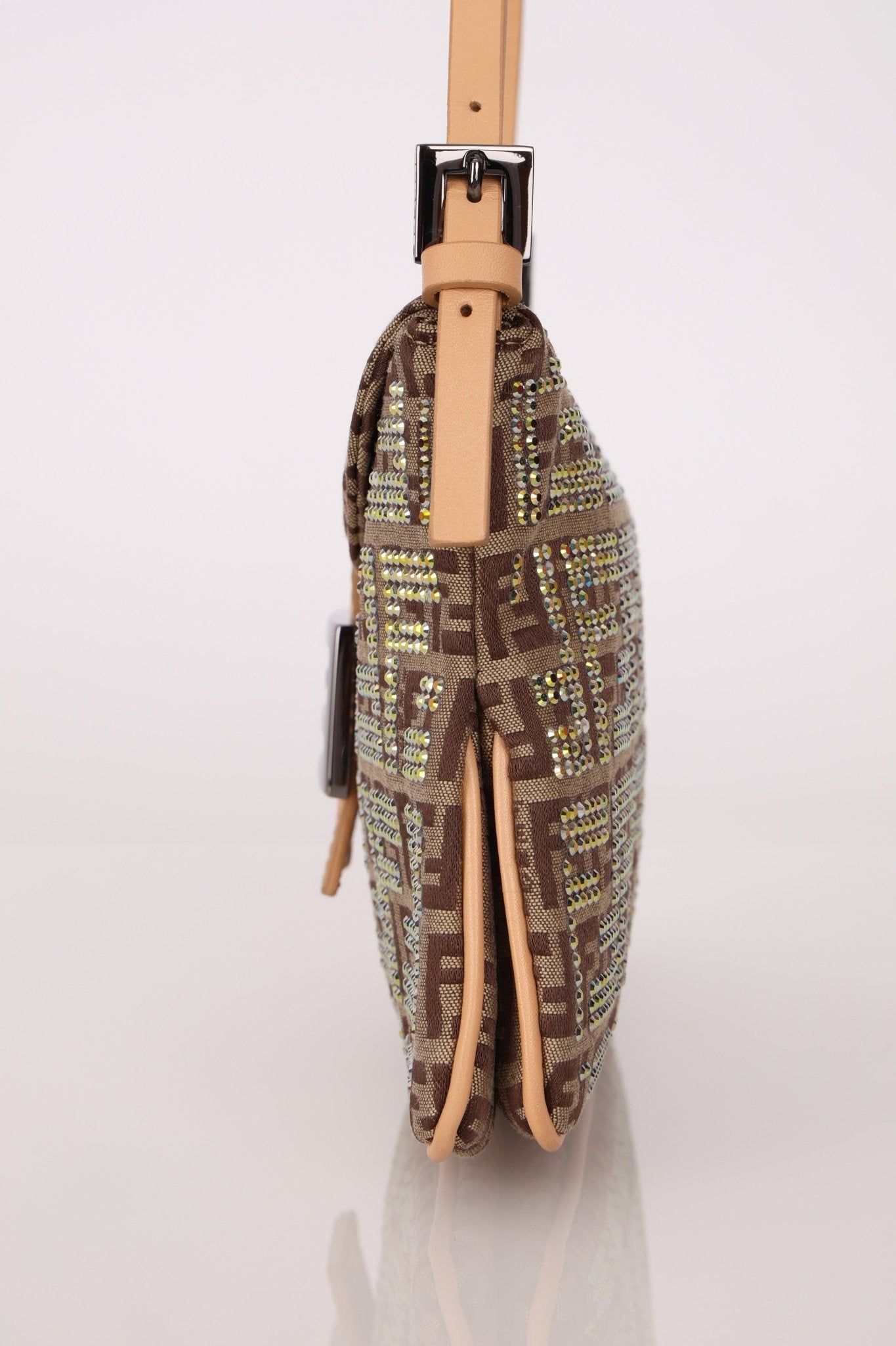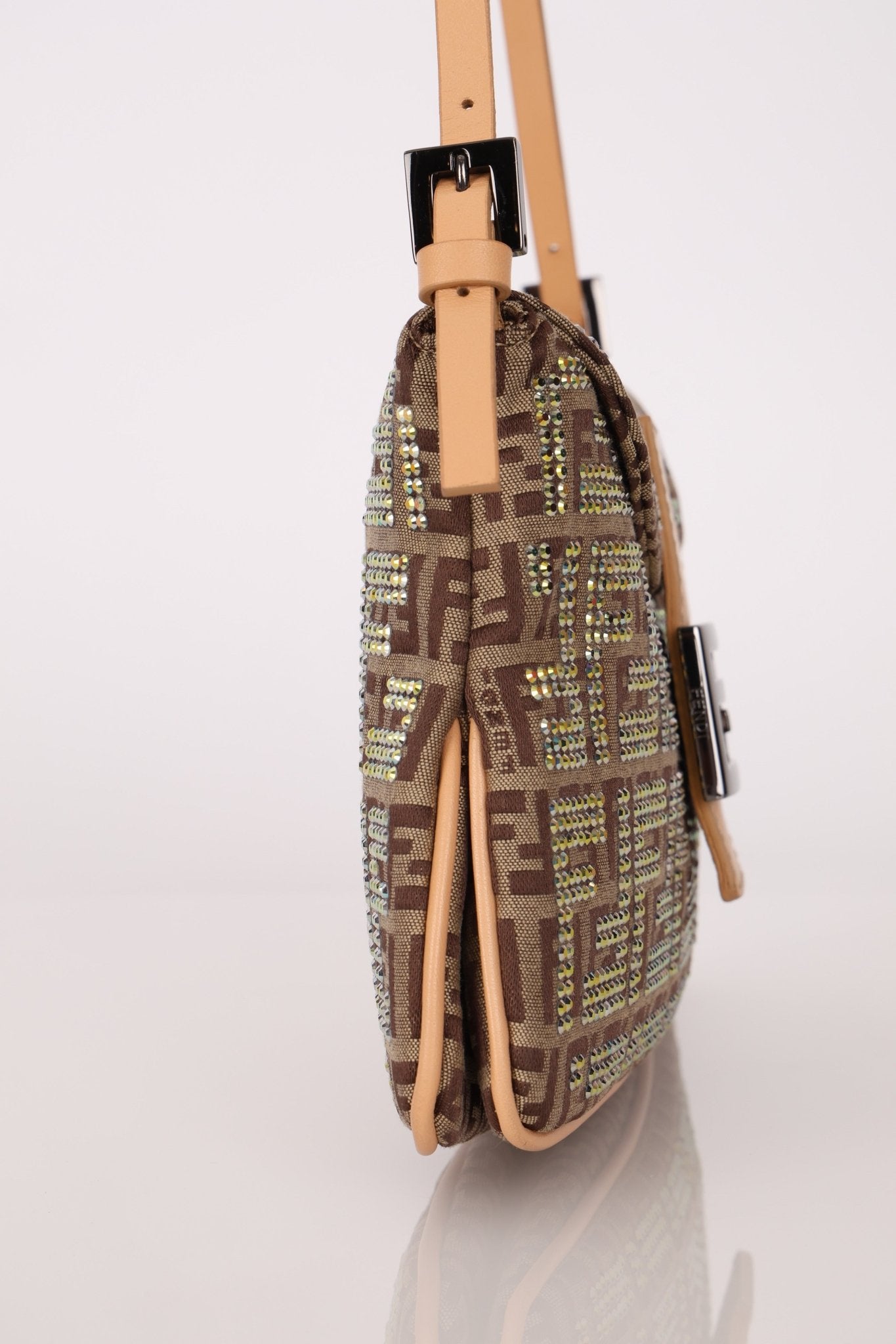 Ultra - Rare Fendi Double Flap Rhinestone Zucchino Baguette - FashioNica