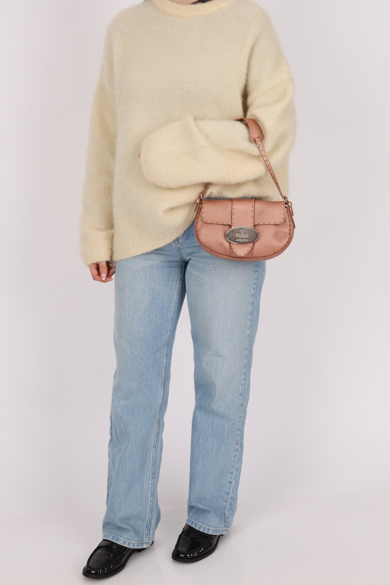 Fendi Rose Gold Selleria Emblem Shoulder Bag