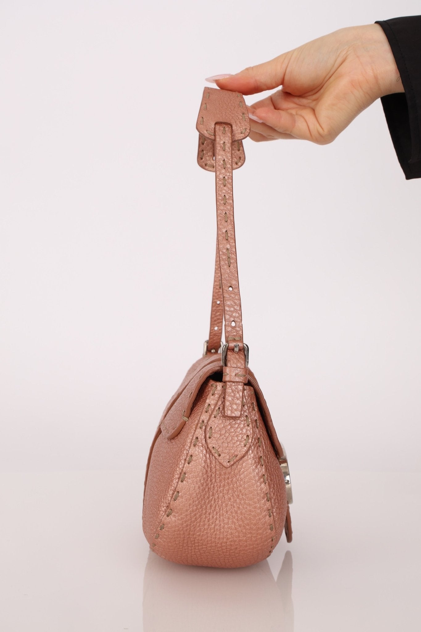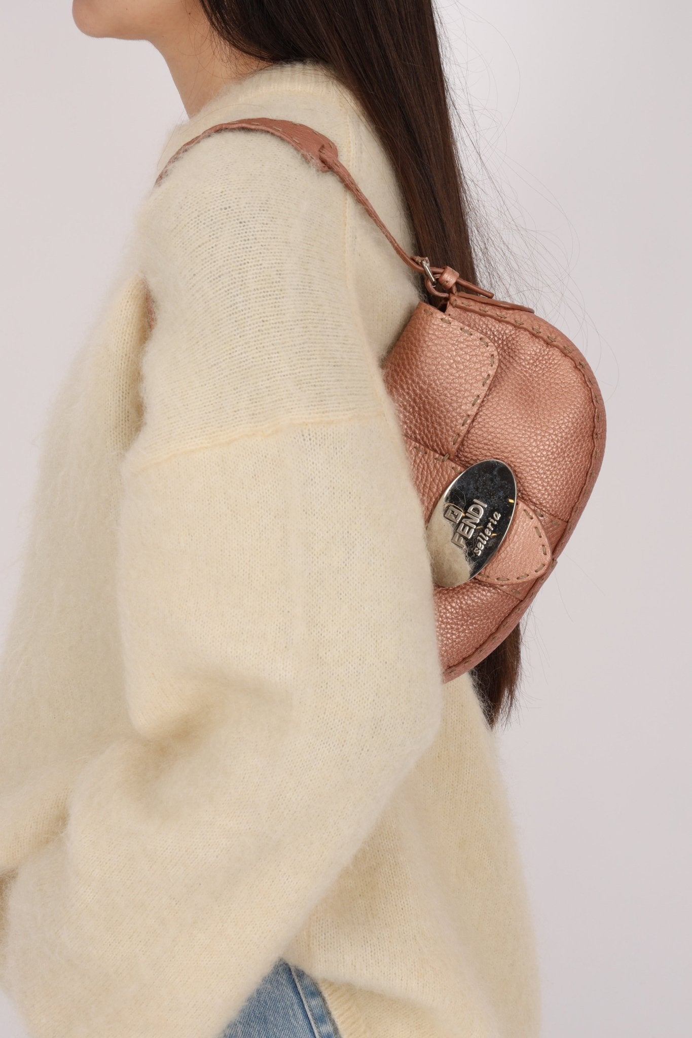 Fendi Rose Gold Selleria Emblem Shoulder Bag - FashioNica