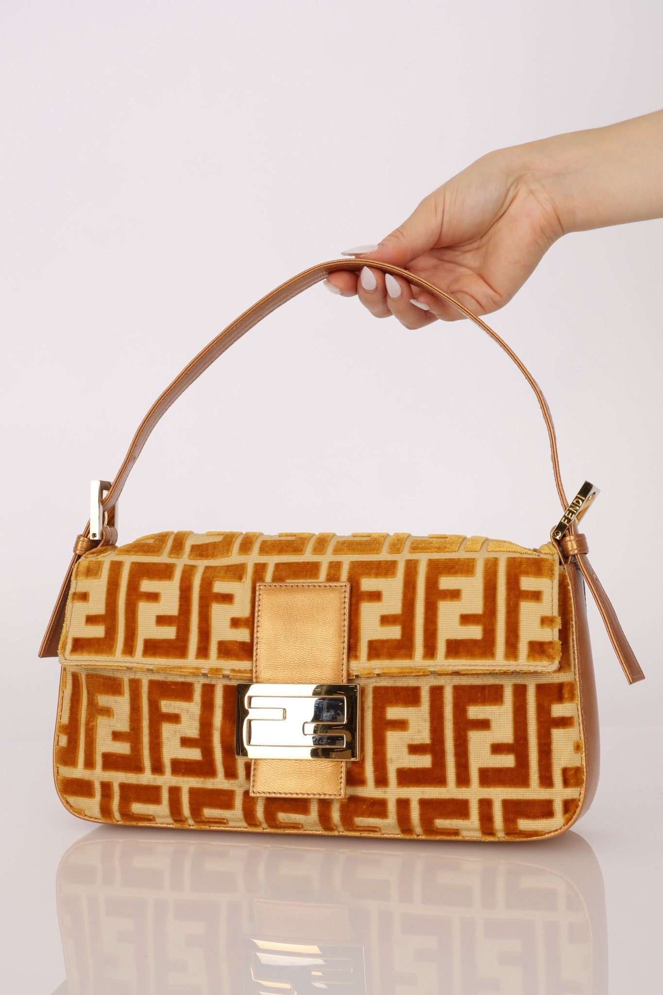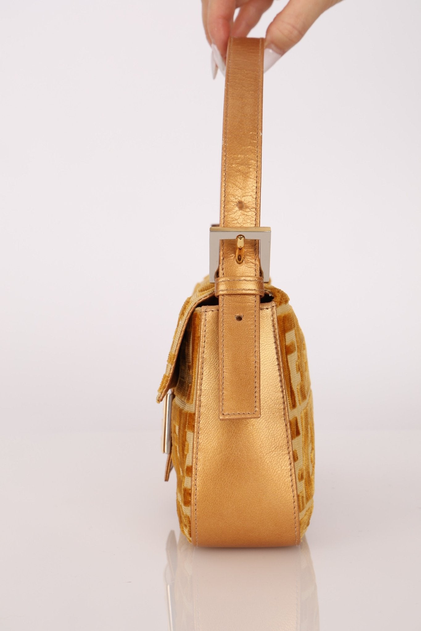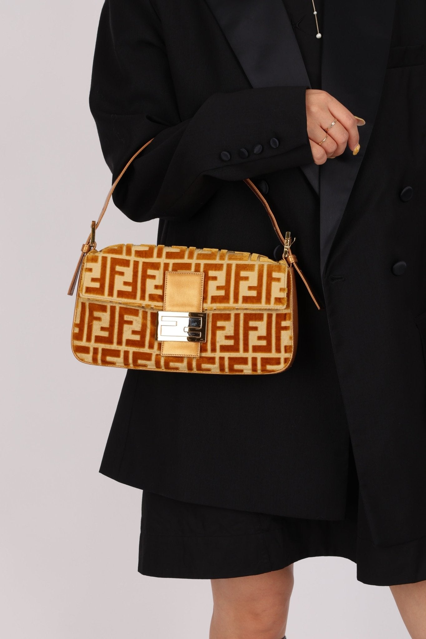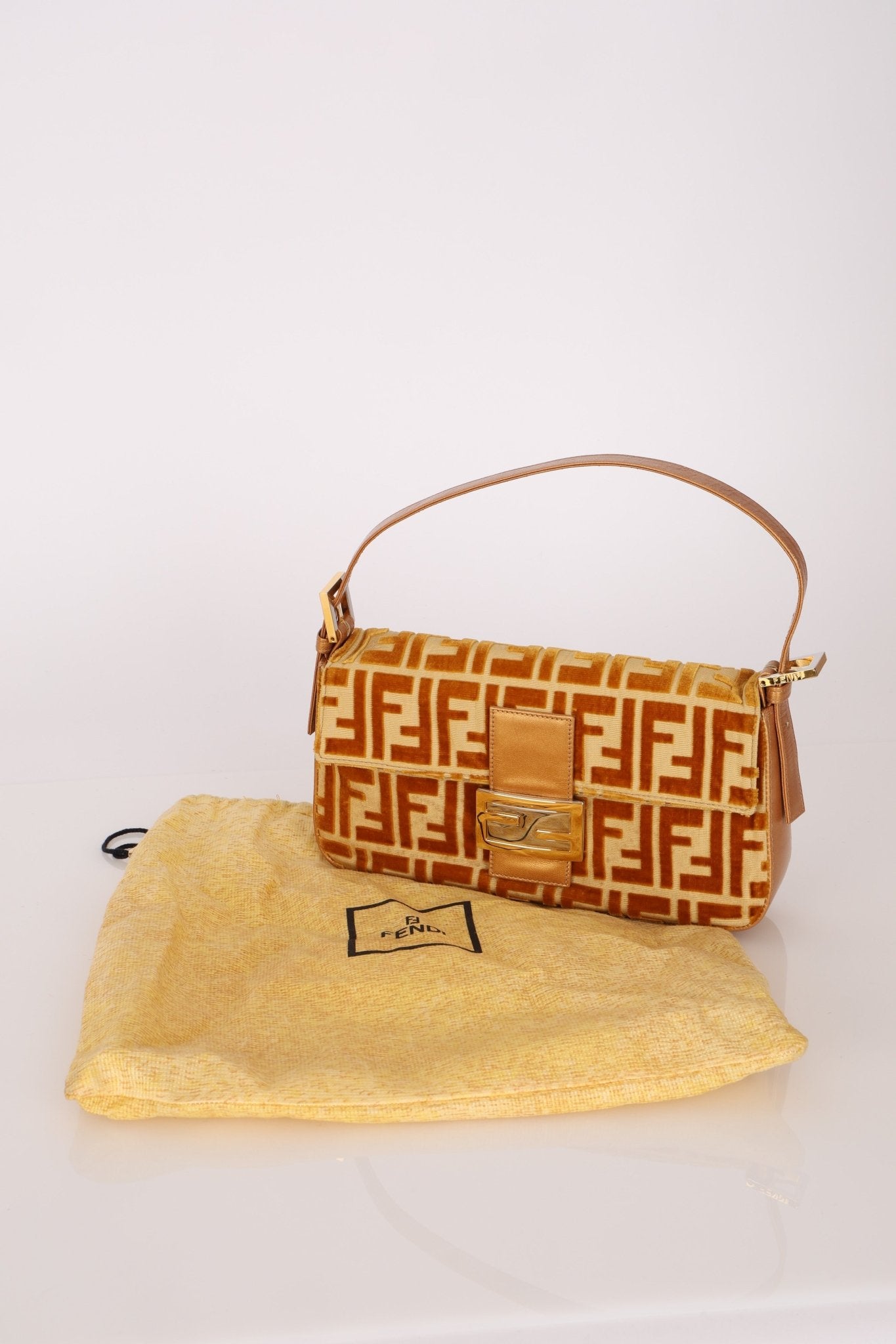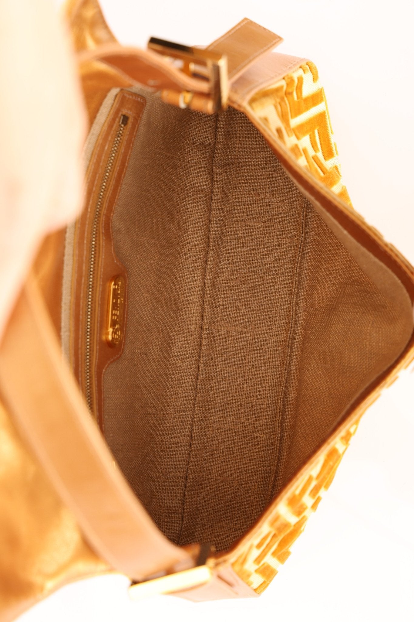 Vintage Fendi Mustard Velvet Zucca Baguette - FashioNica