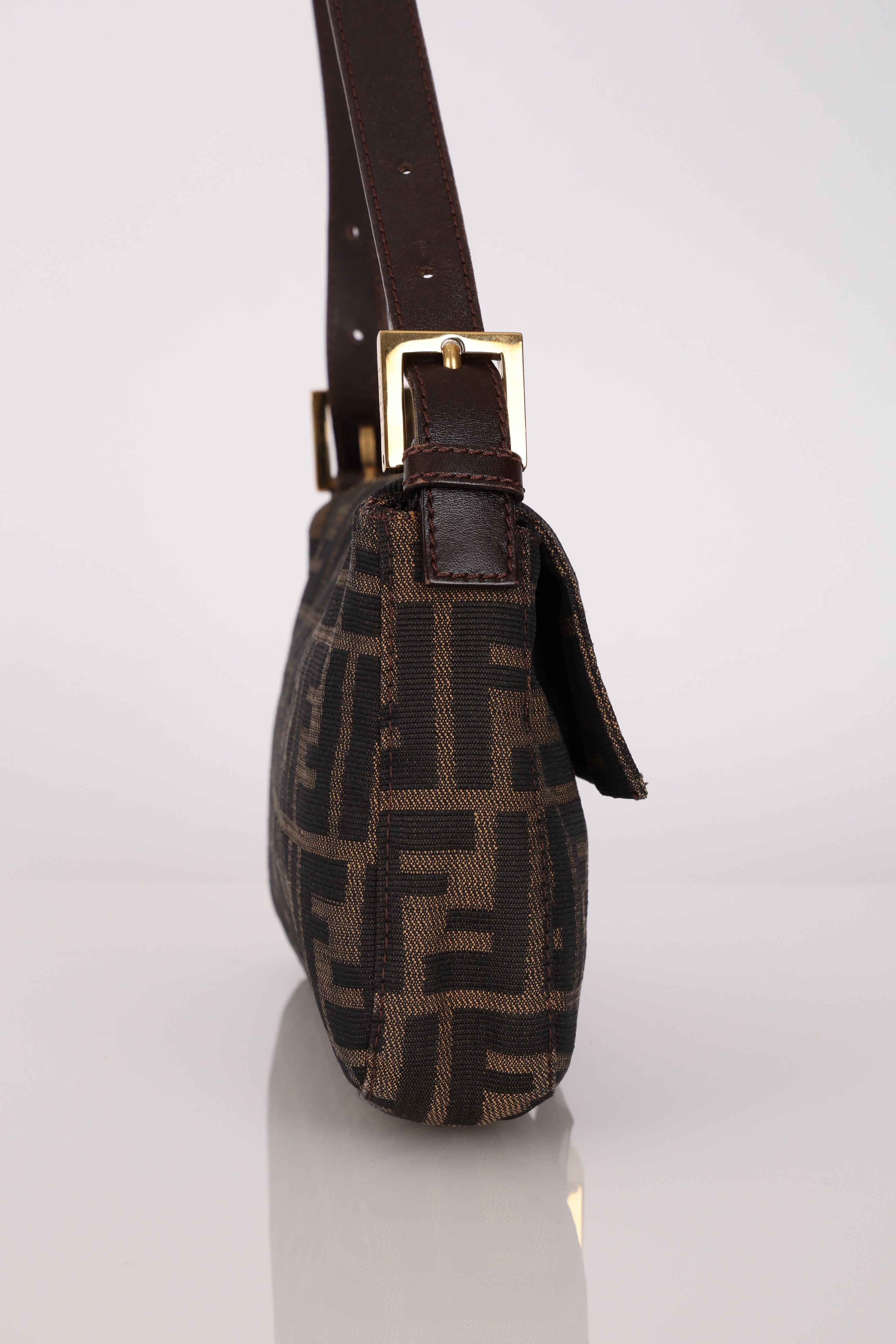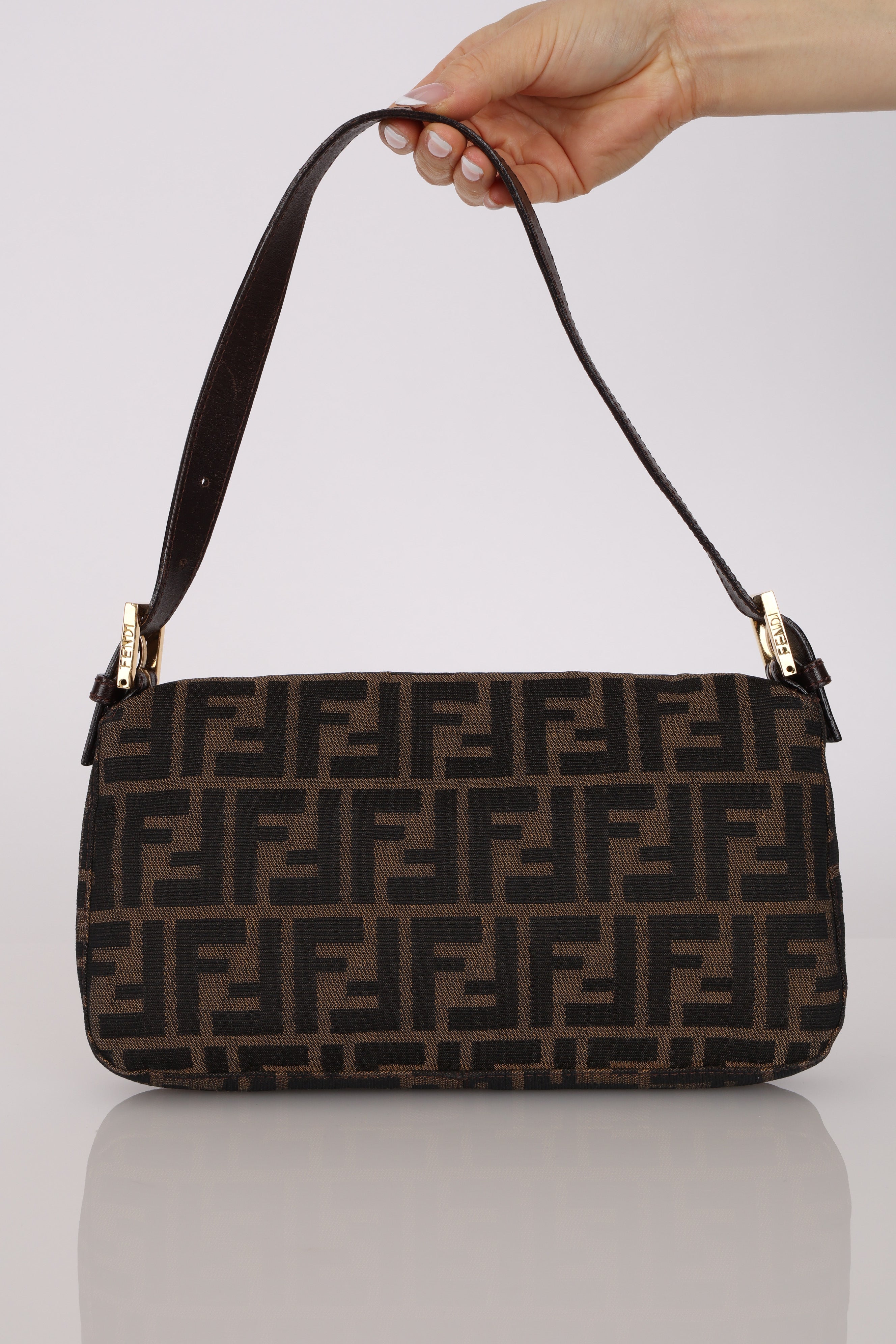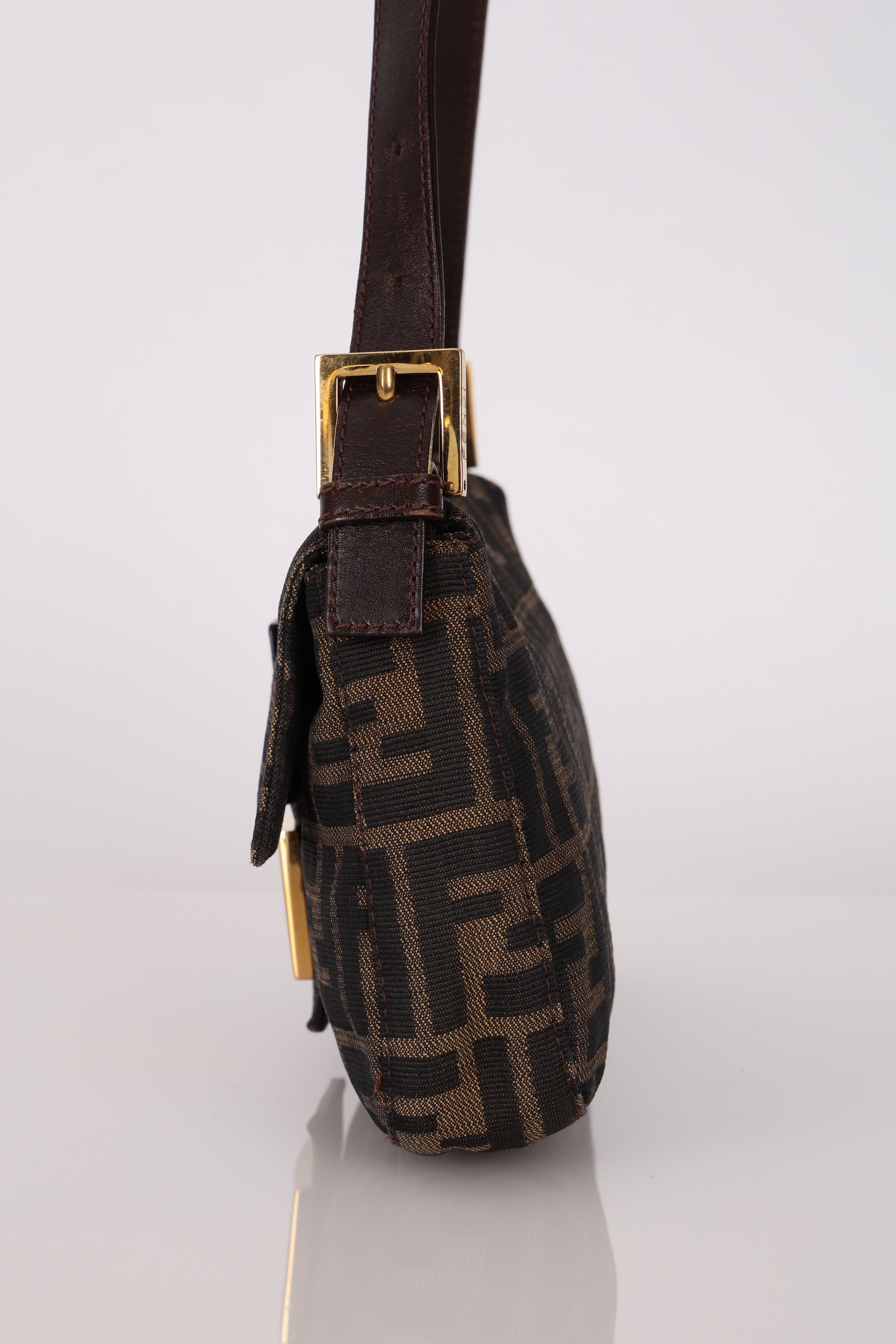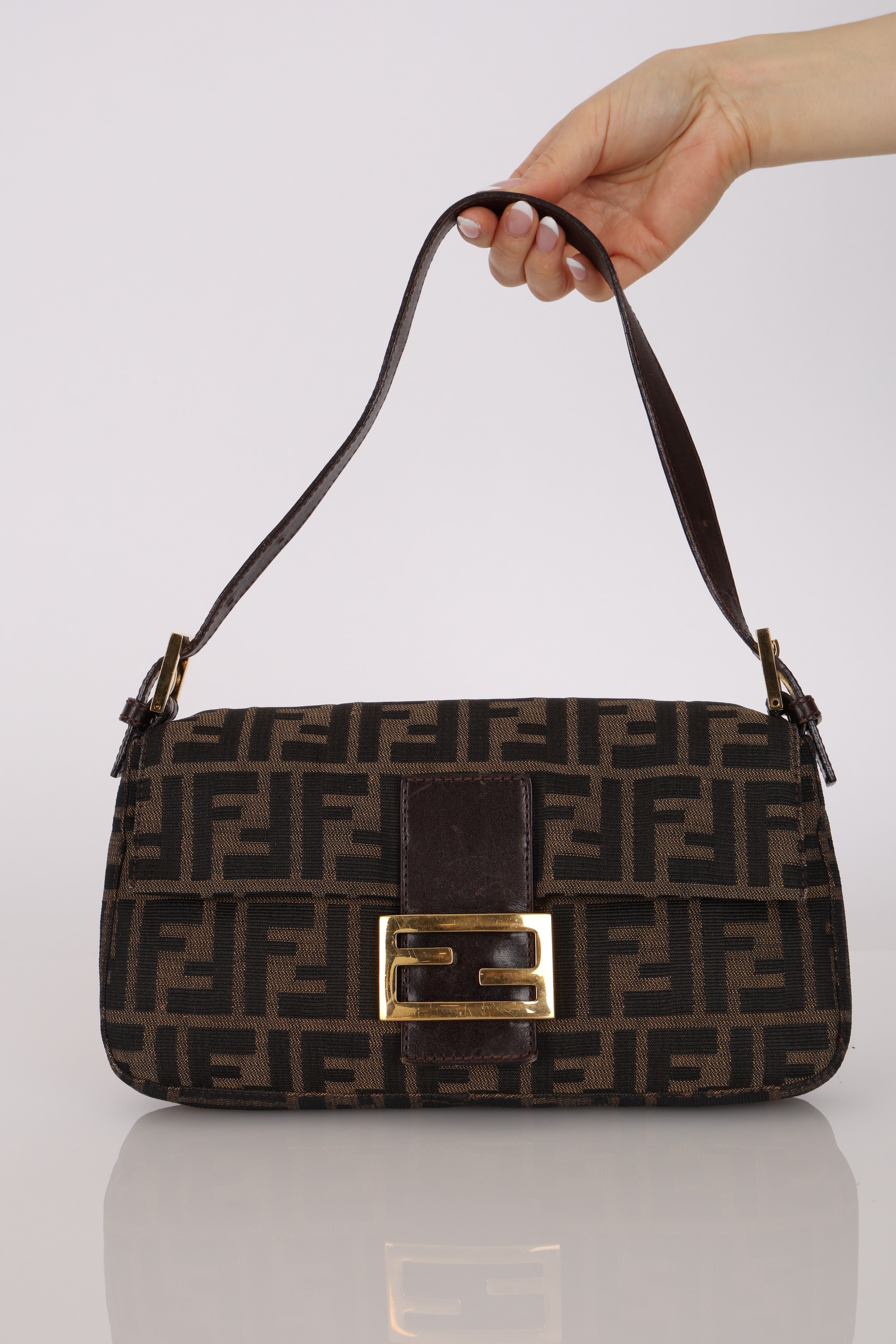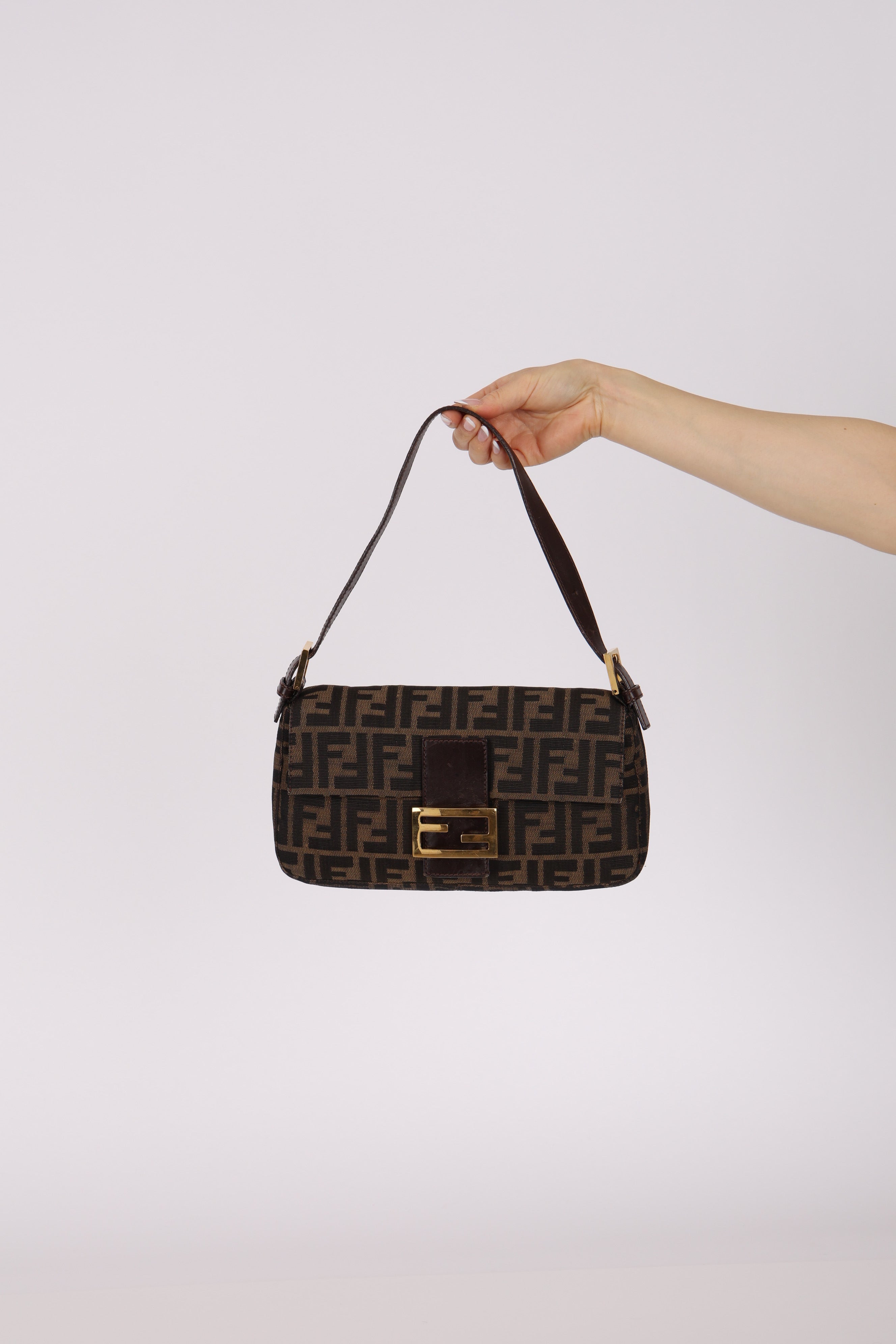 The extremely rare Fendi Zucca bag due to its highly coveted rare gold hardware - for every 100 silver hardware, 1 gold hardware is made. Style it with a monochrome look and have this piece be the showstopper!