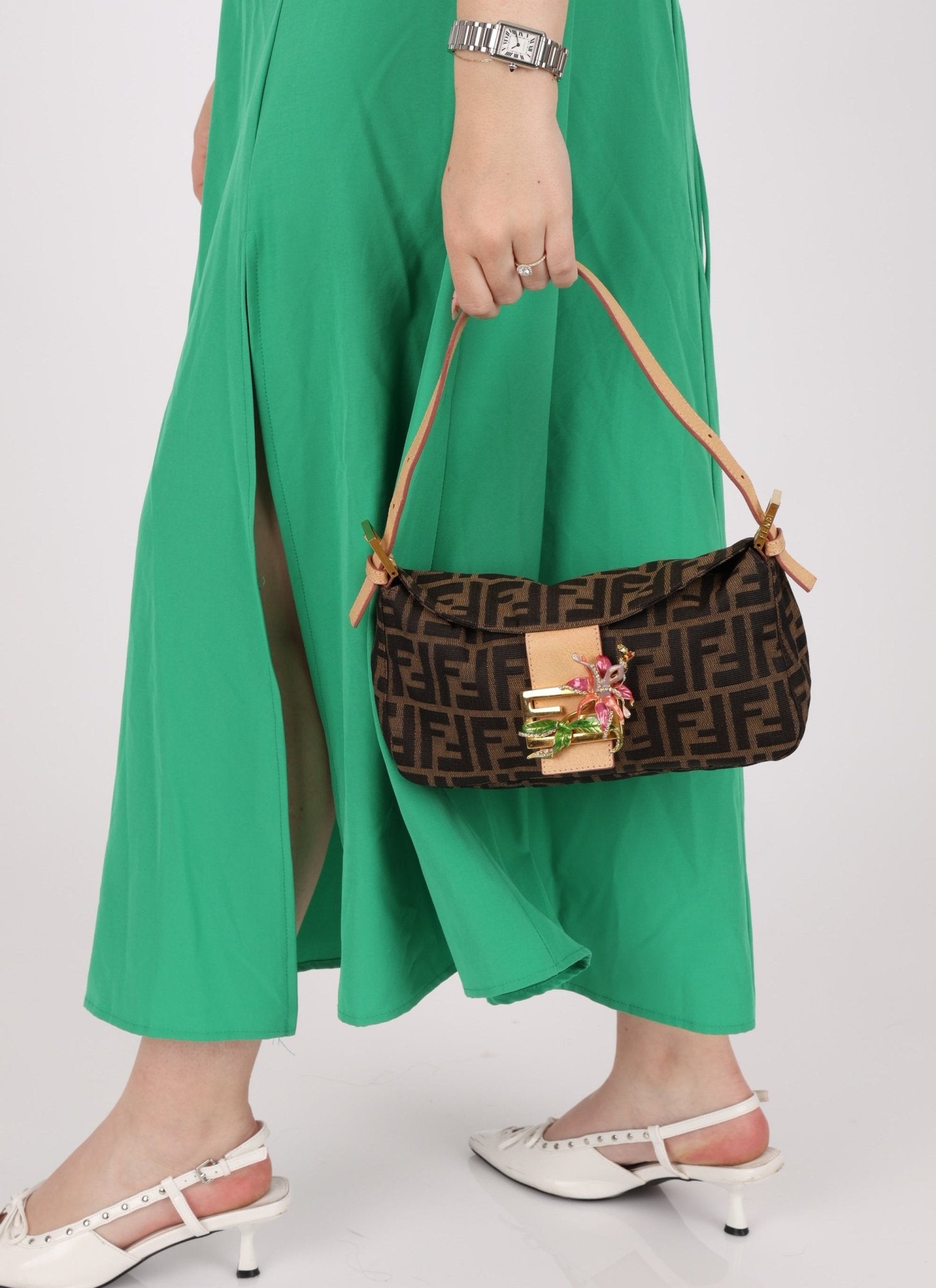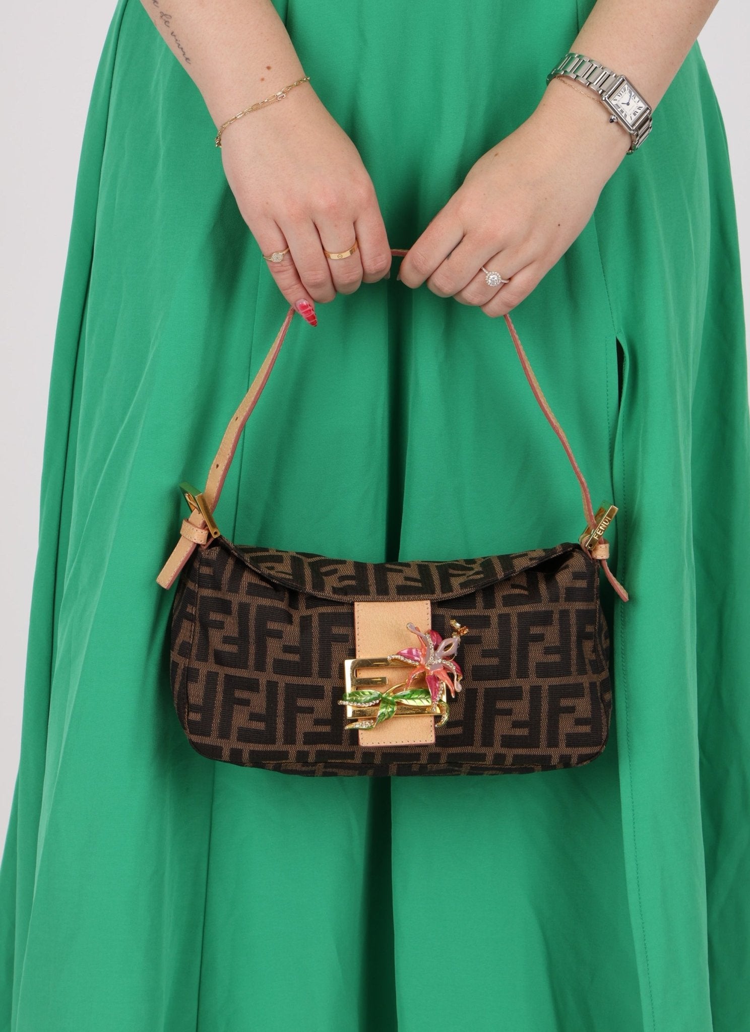 Rare Fendi Zucca Crystal Orchid Baguette - FashioNica