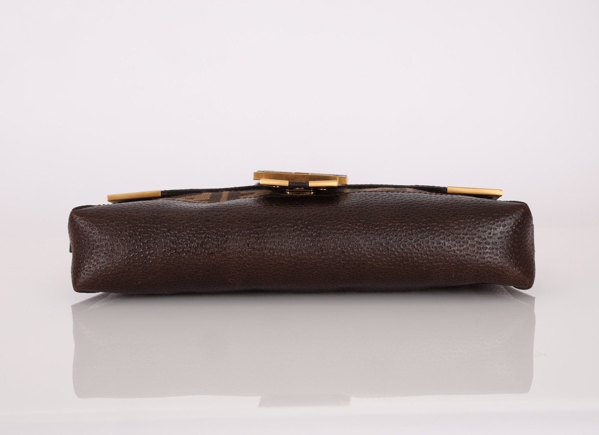 Rare Fendi Zucca Matte GHW Leather Edged Baguette