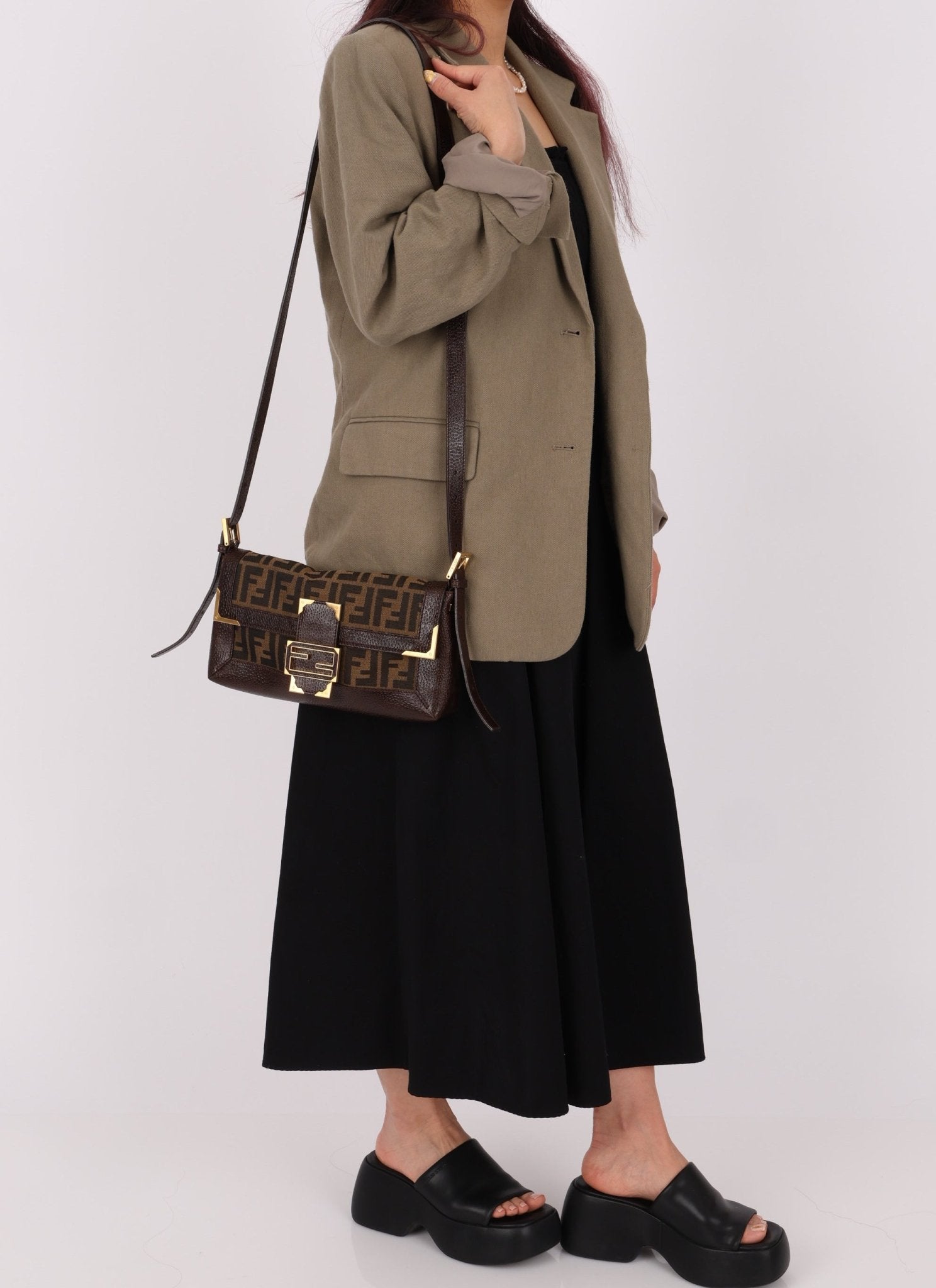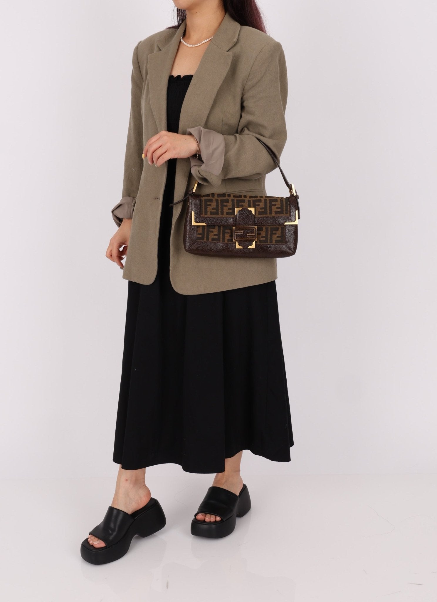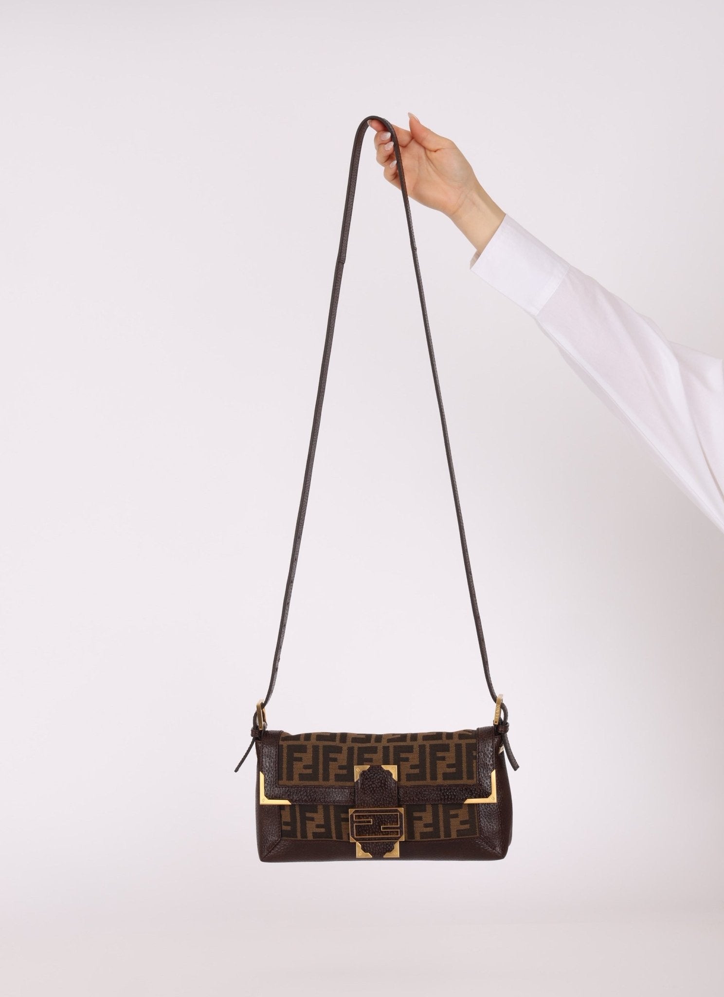 Rare Fendi Zucca Matte GHW Leather Edged Baguette - FashioNica