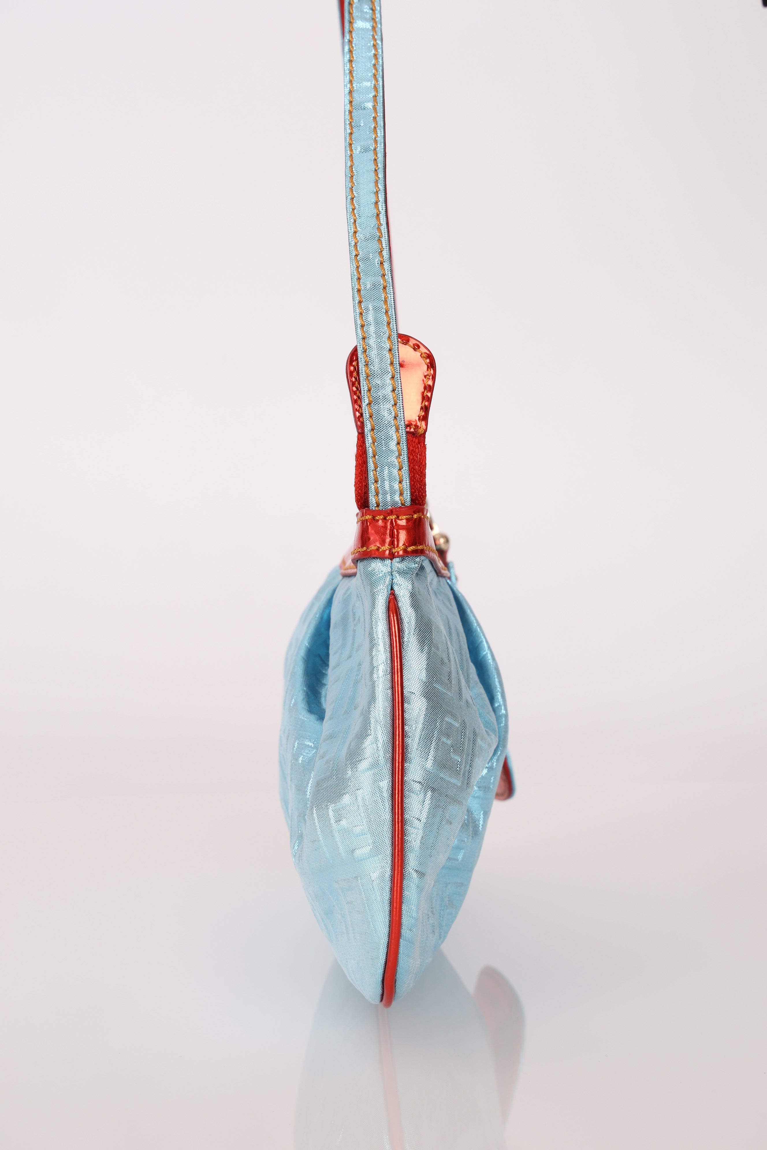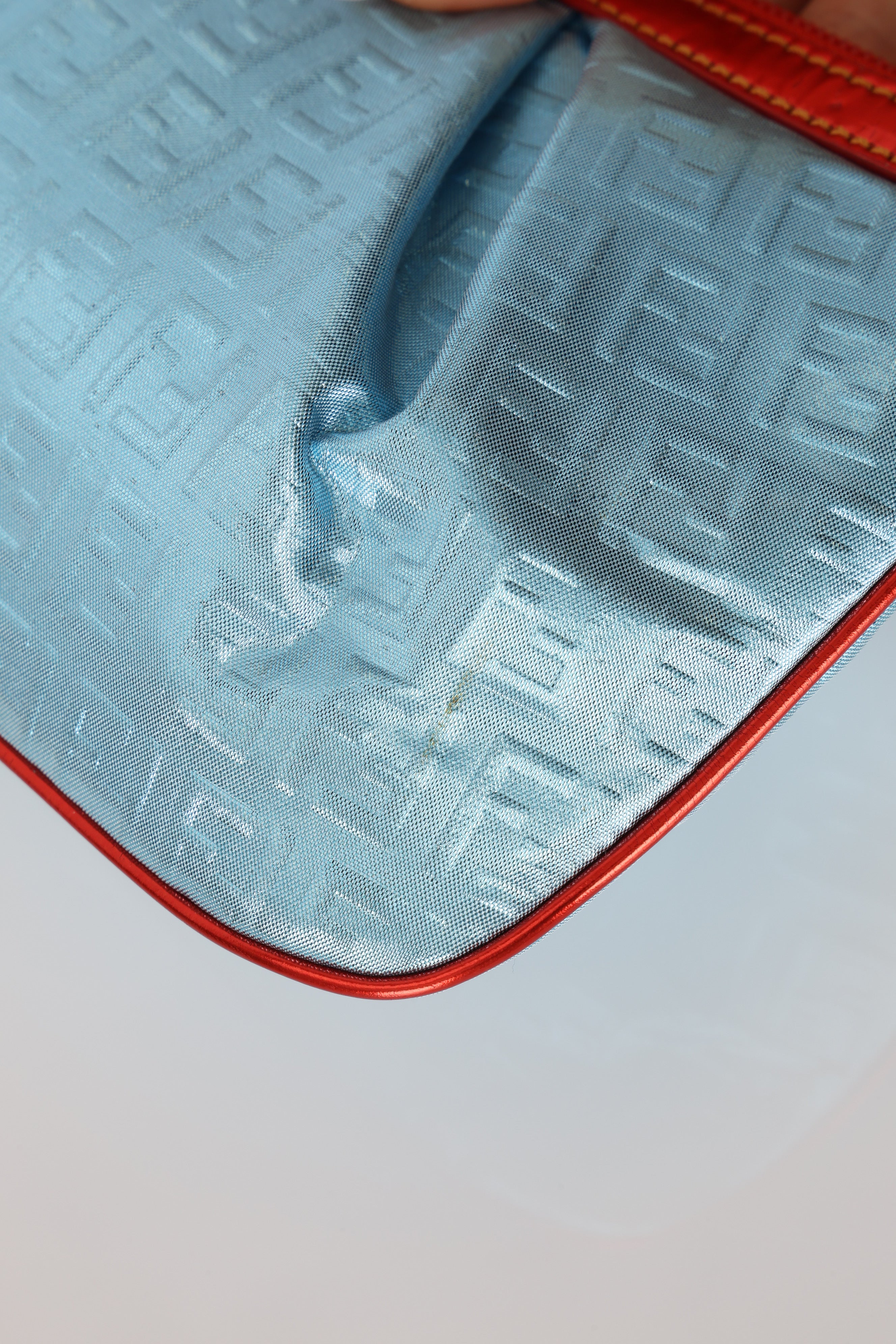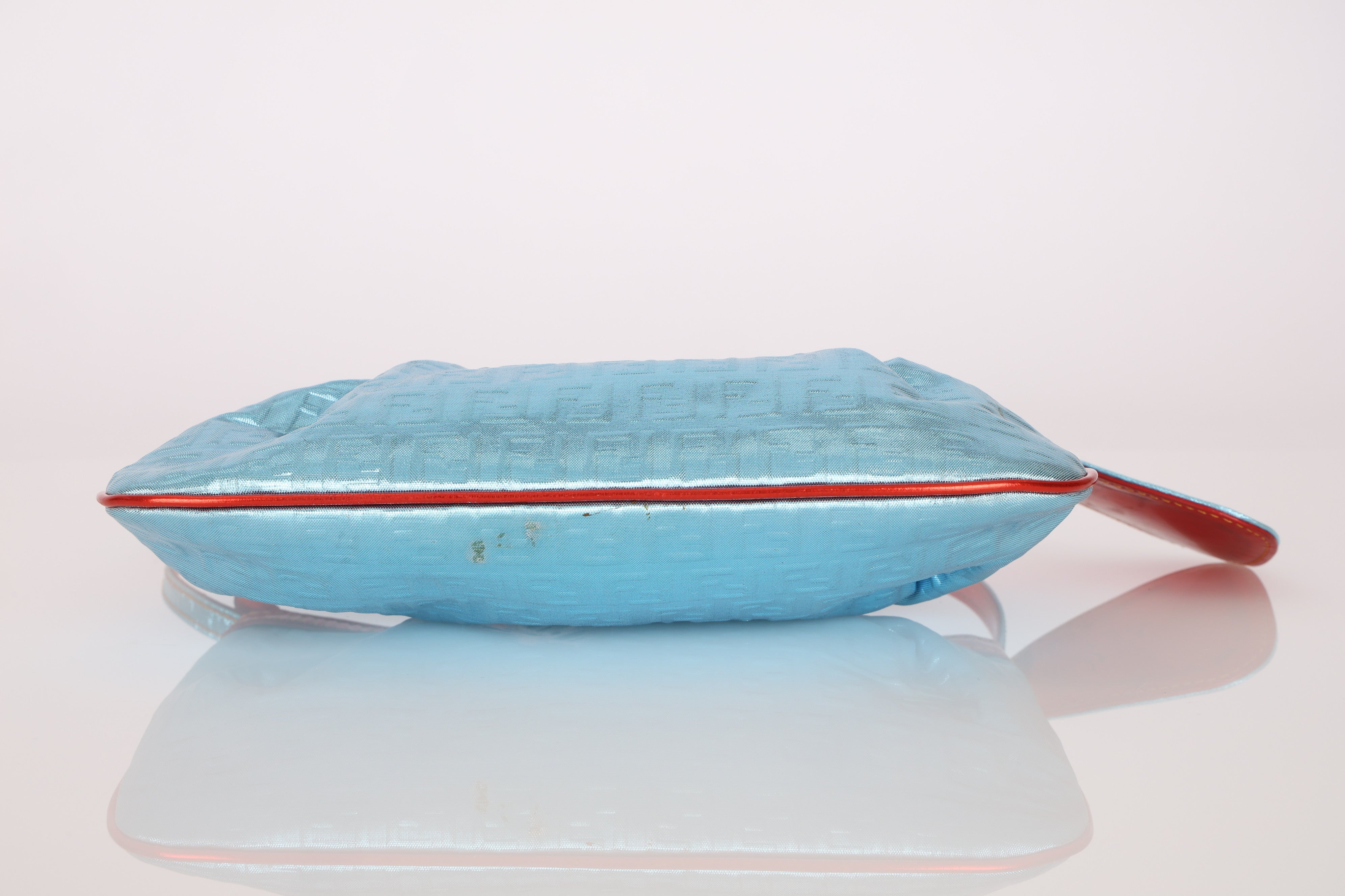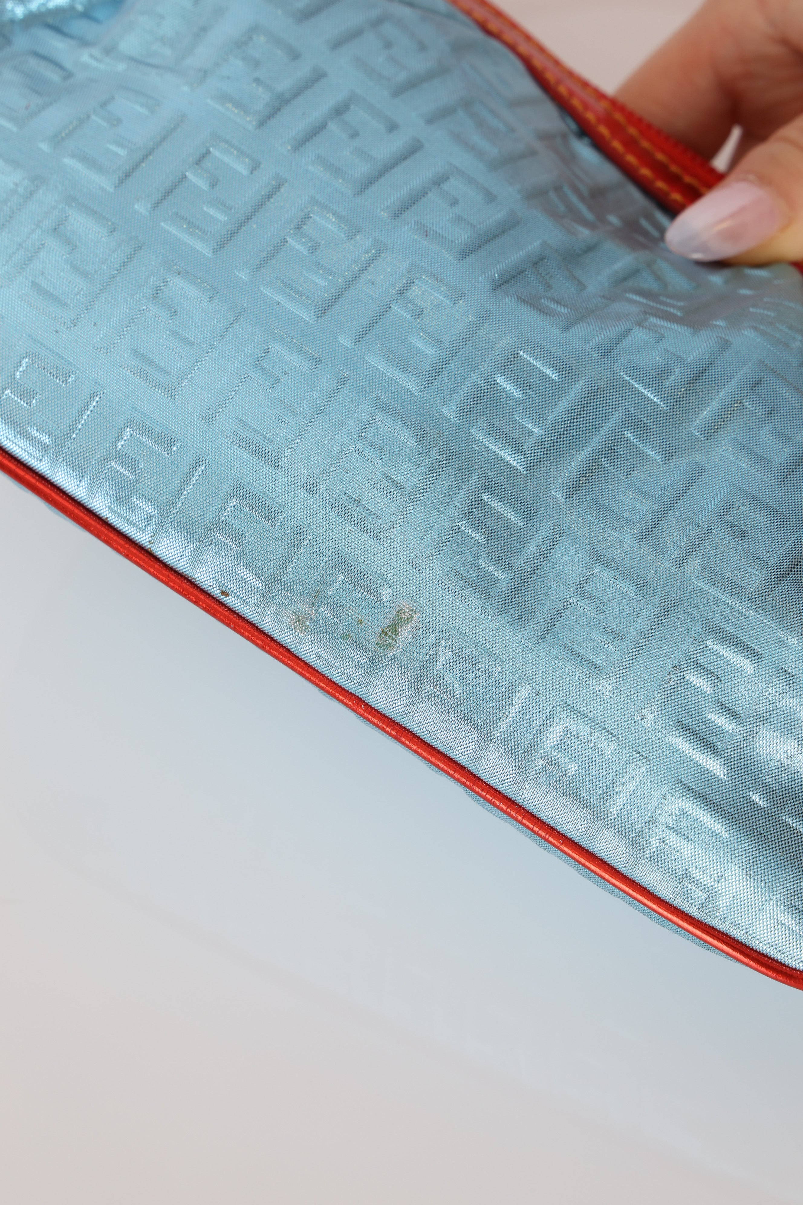 Fendi Blue Zucchino Metallic Embossed Coated Canvas Pochette