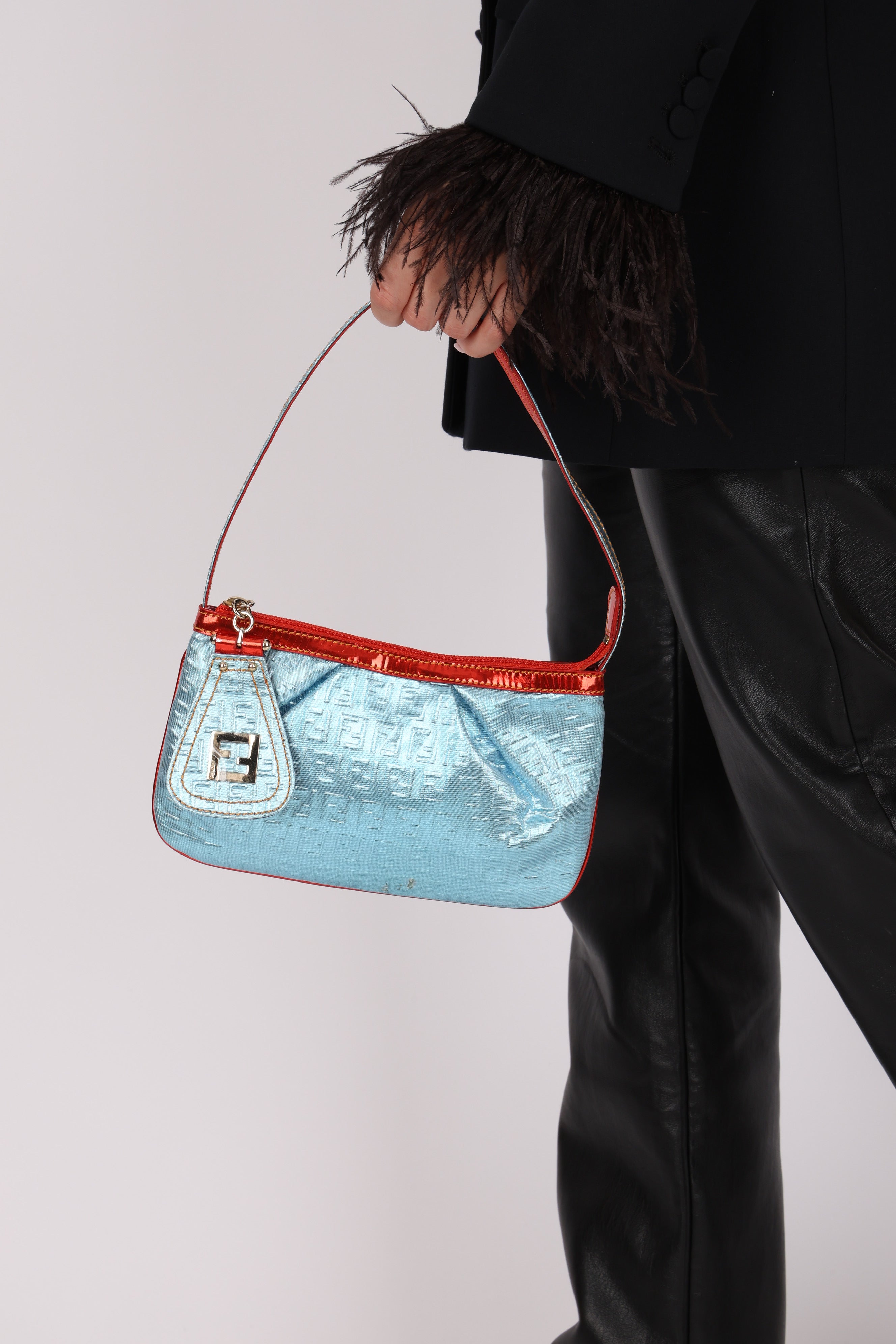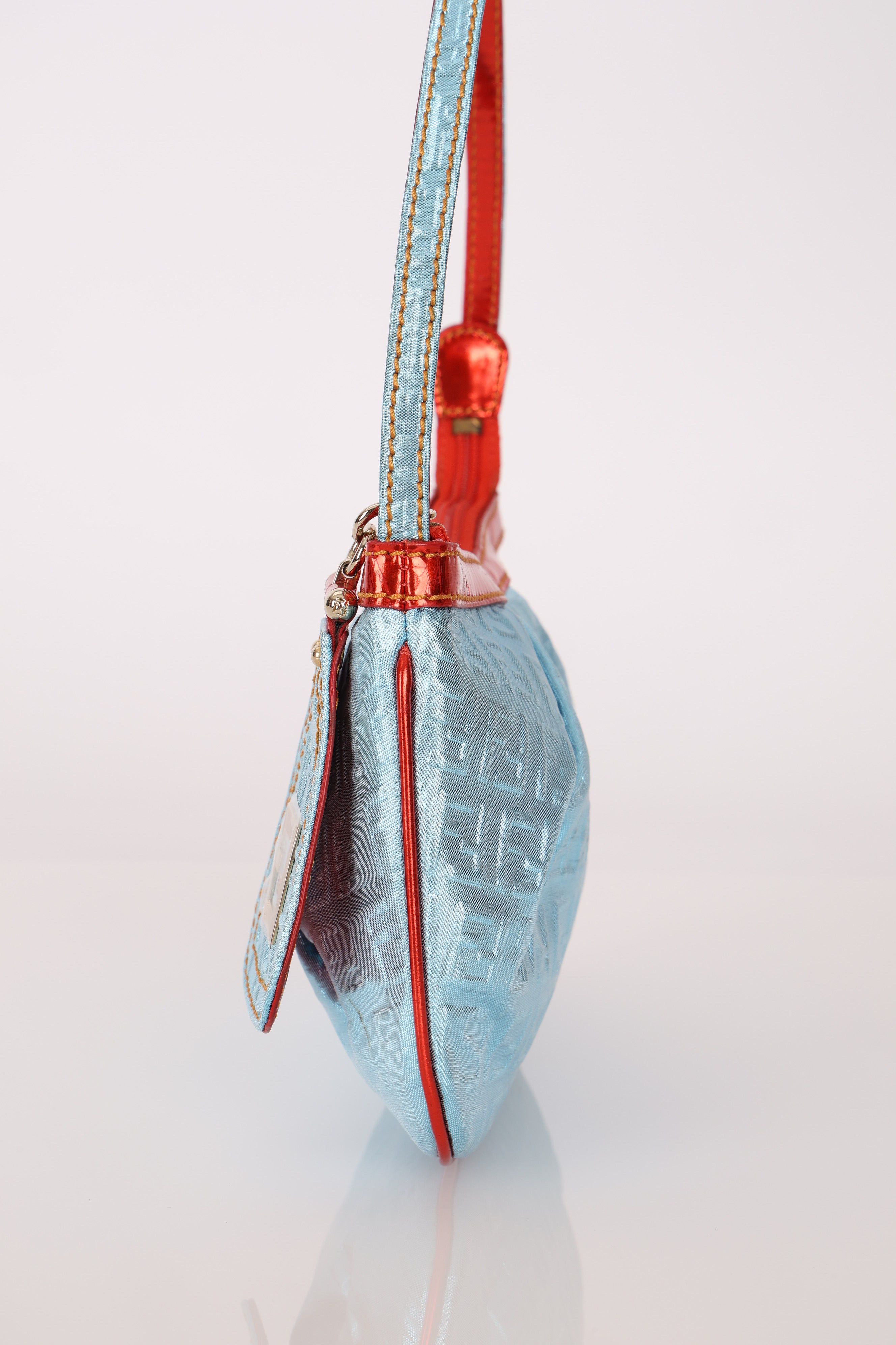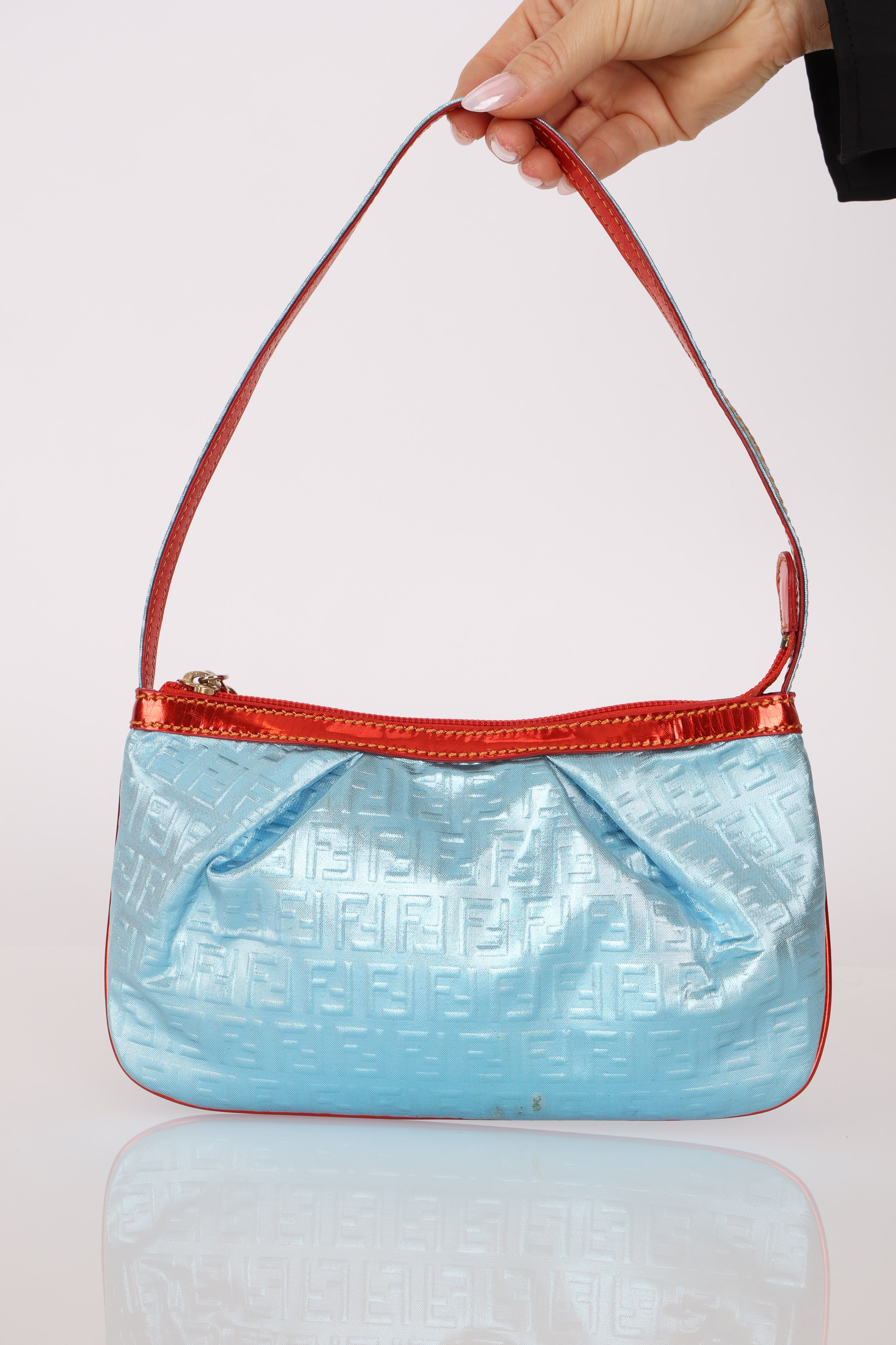 Fendi Blue Zucchino Metallic Embossed Coated Canvas Pochette