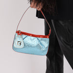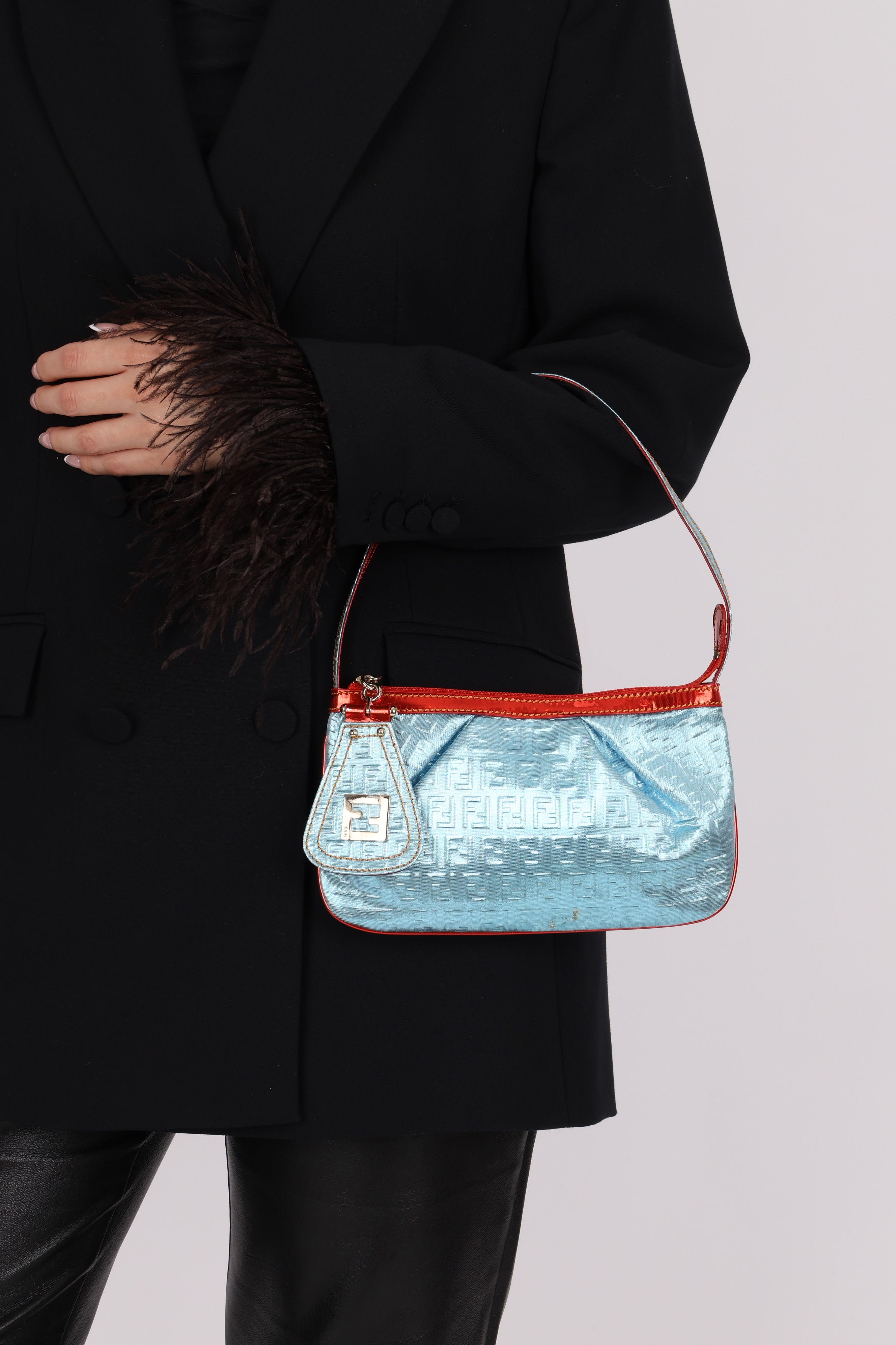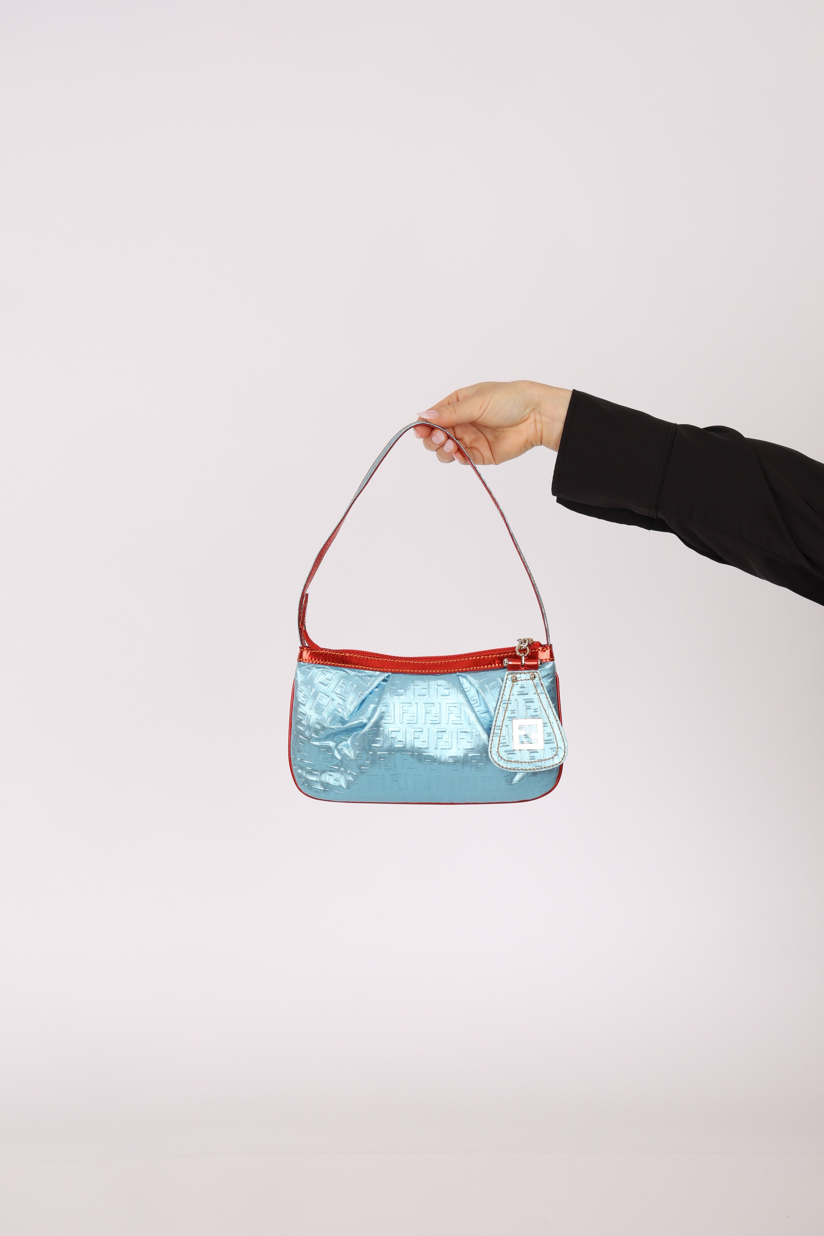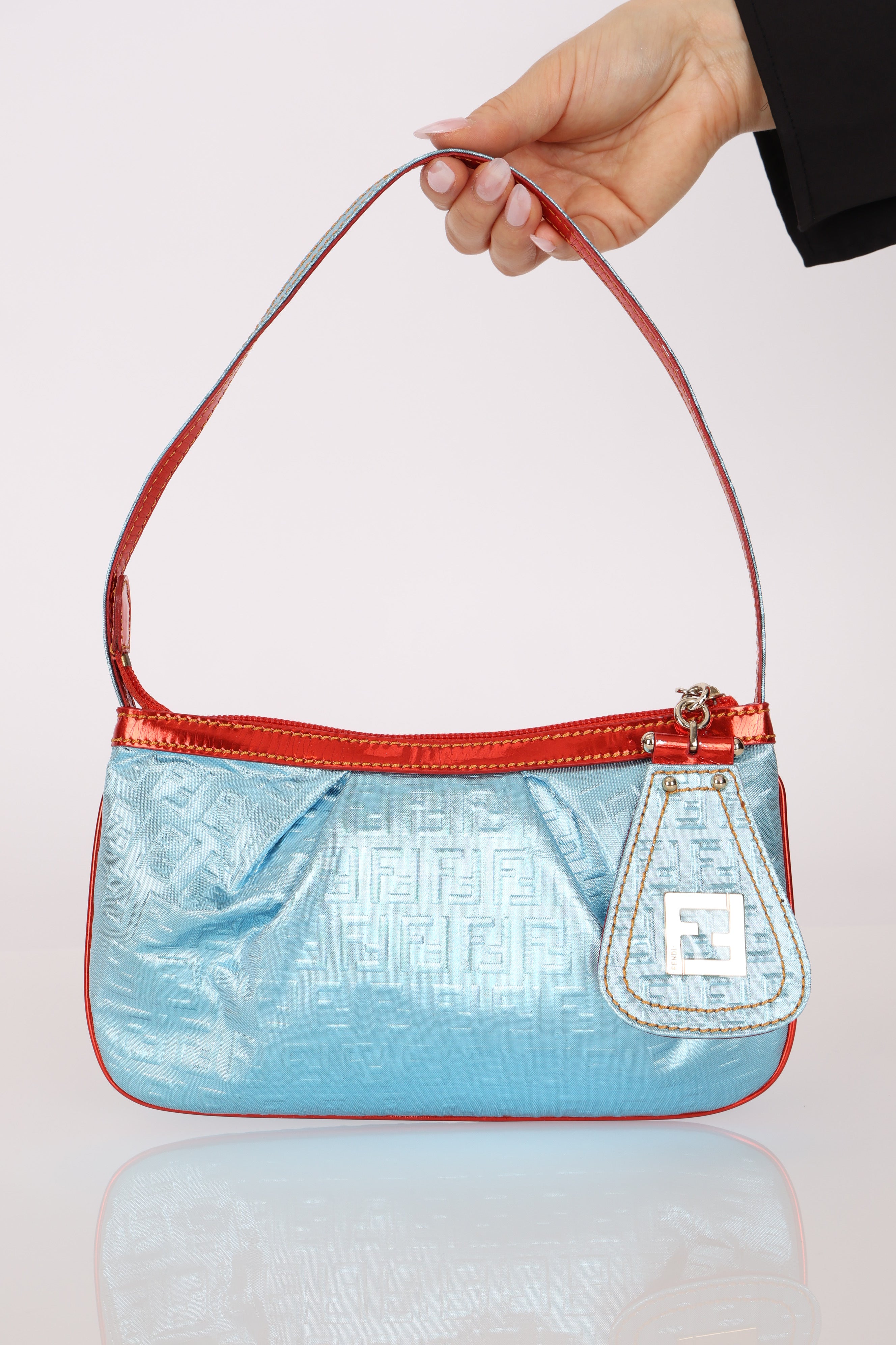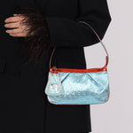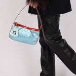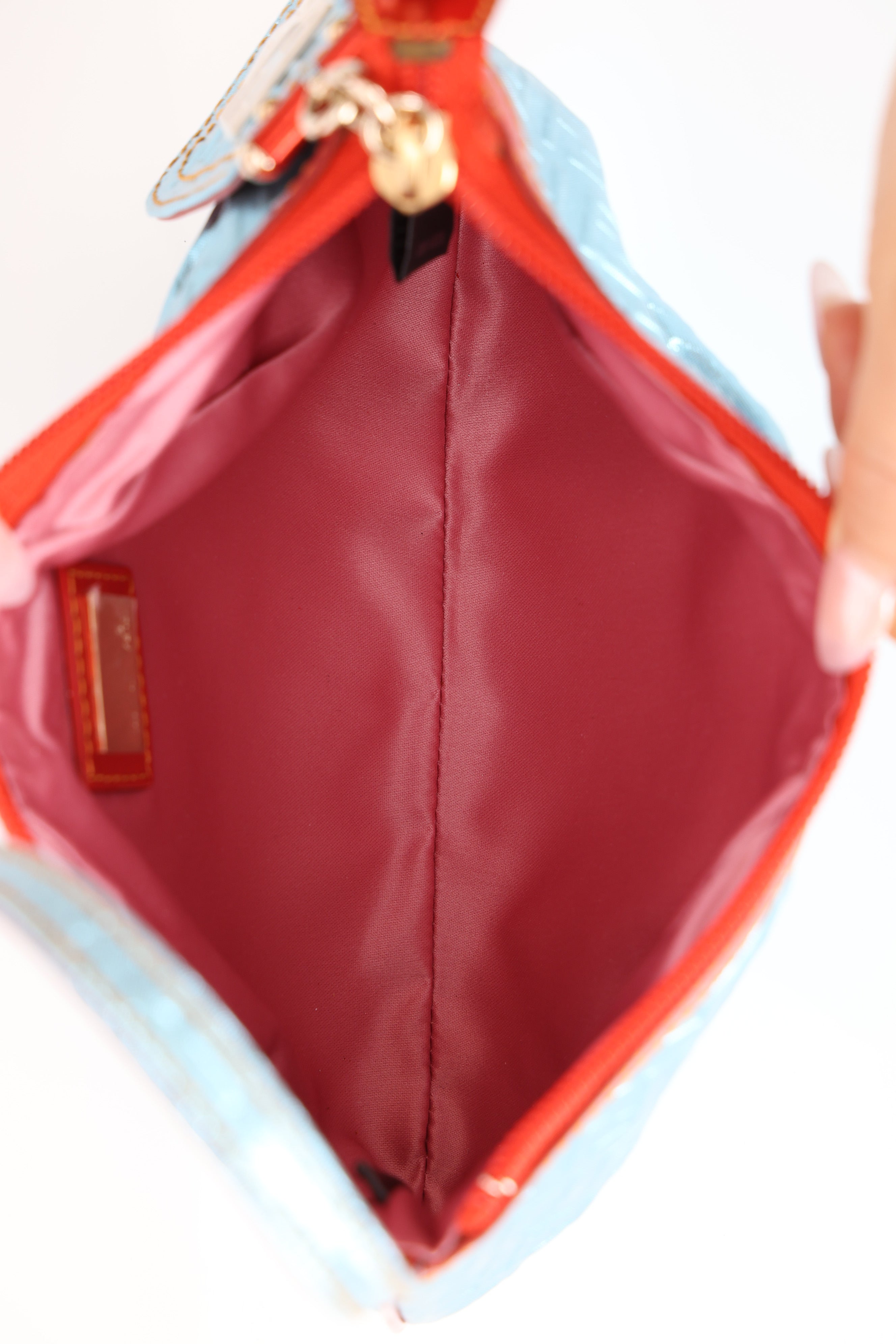 Fendi Blue Zucchino Metallic Embossed Coated Canvas Pochette