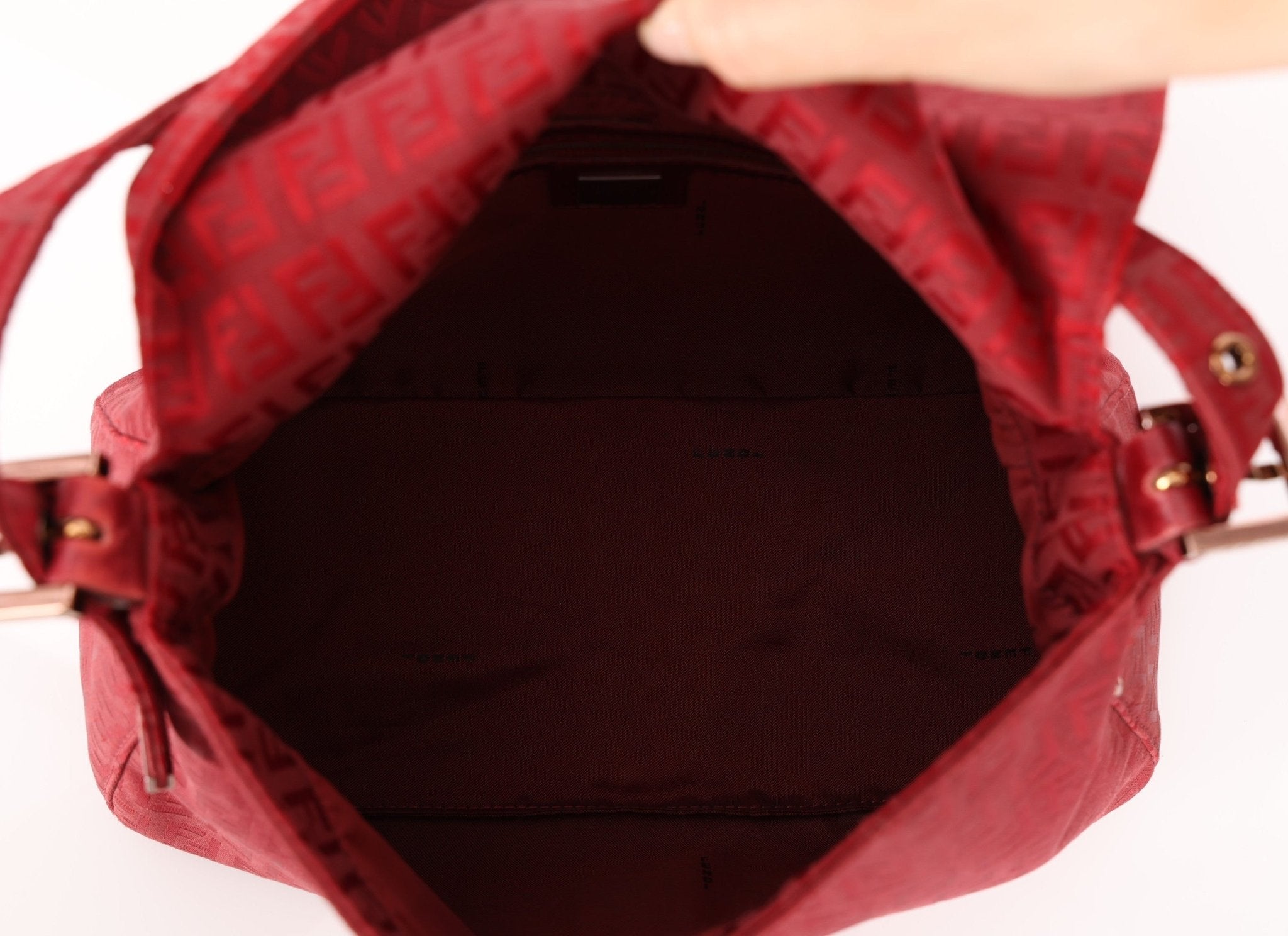 This beautiful Fendi Zucchino Mamma Baguette is the perfect red piece to style with any outfit! This one in particular is considered a rare find due to the rare rose gold hardware used on this bag.
