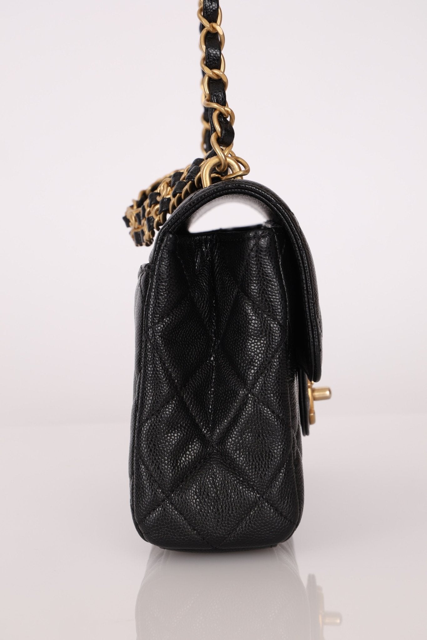 Chanel 2025 Caviar Chain Top Handle Turnlock Mini Flap - FashioNica