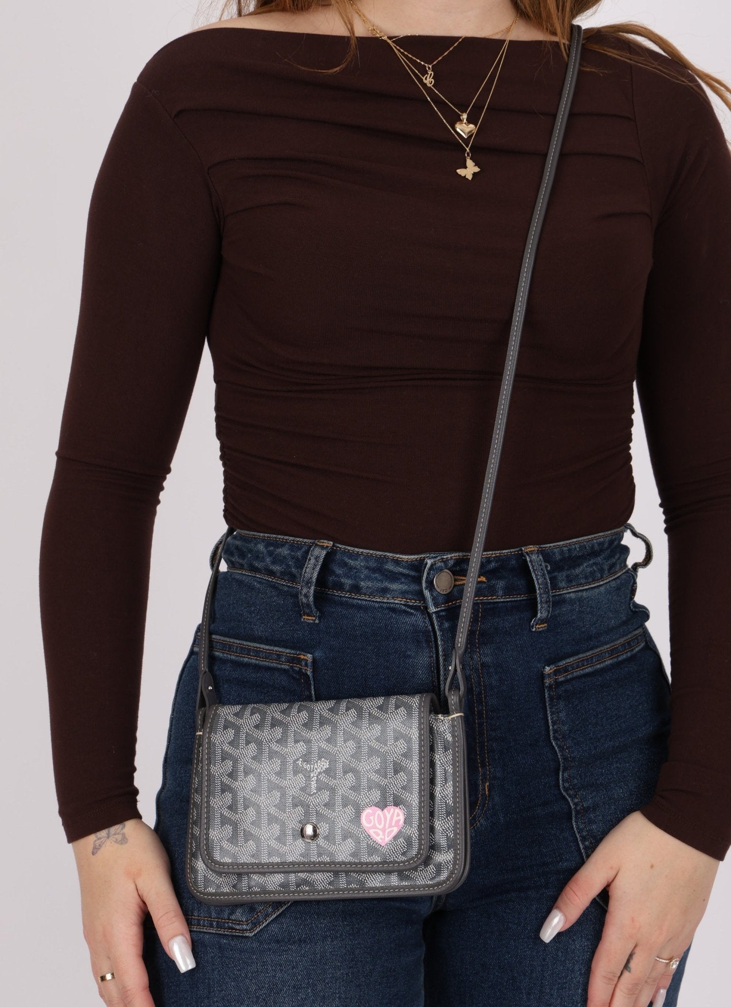 Compact and functional, this Limited Edition Goyard Plummet Pocket Wallet in Black is a special custom piece due to the "GOYA" heart detail!