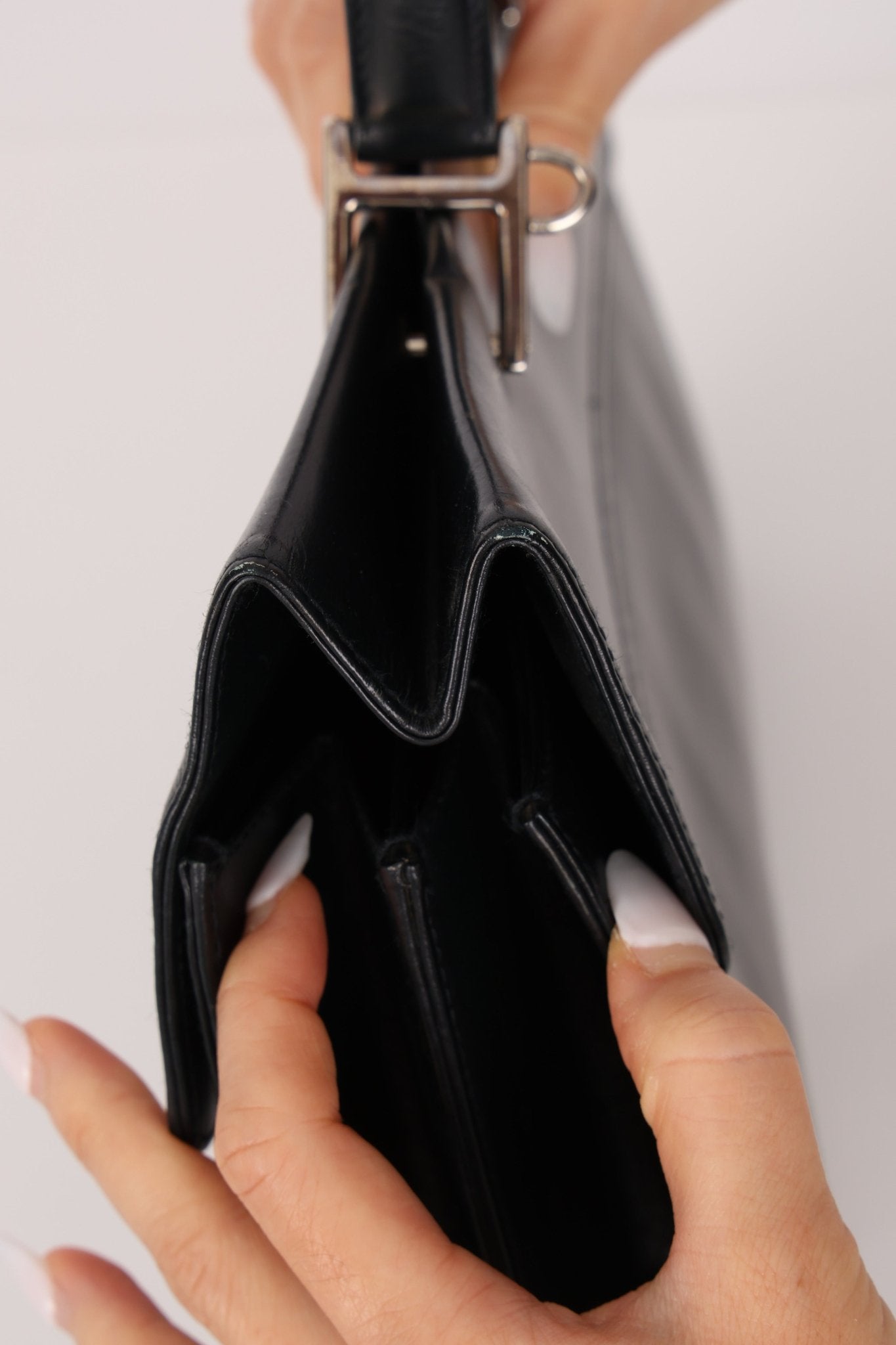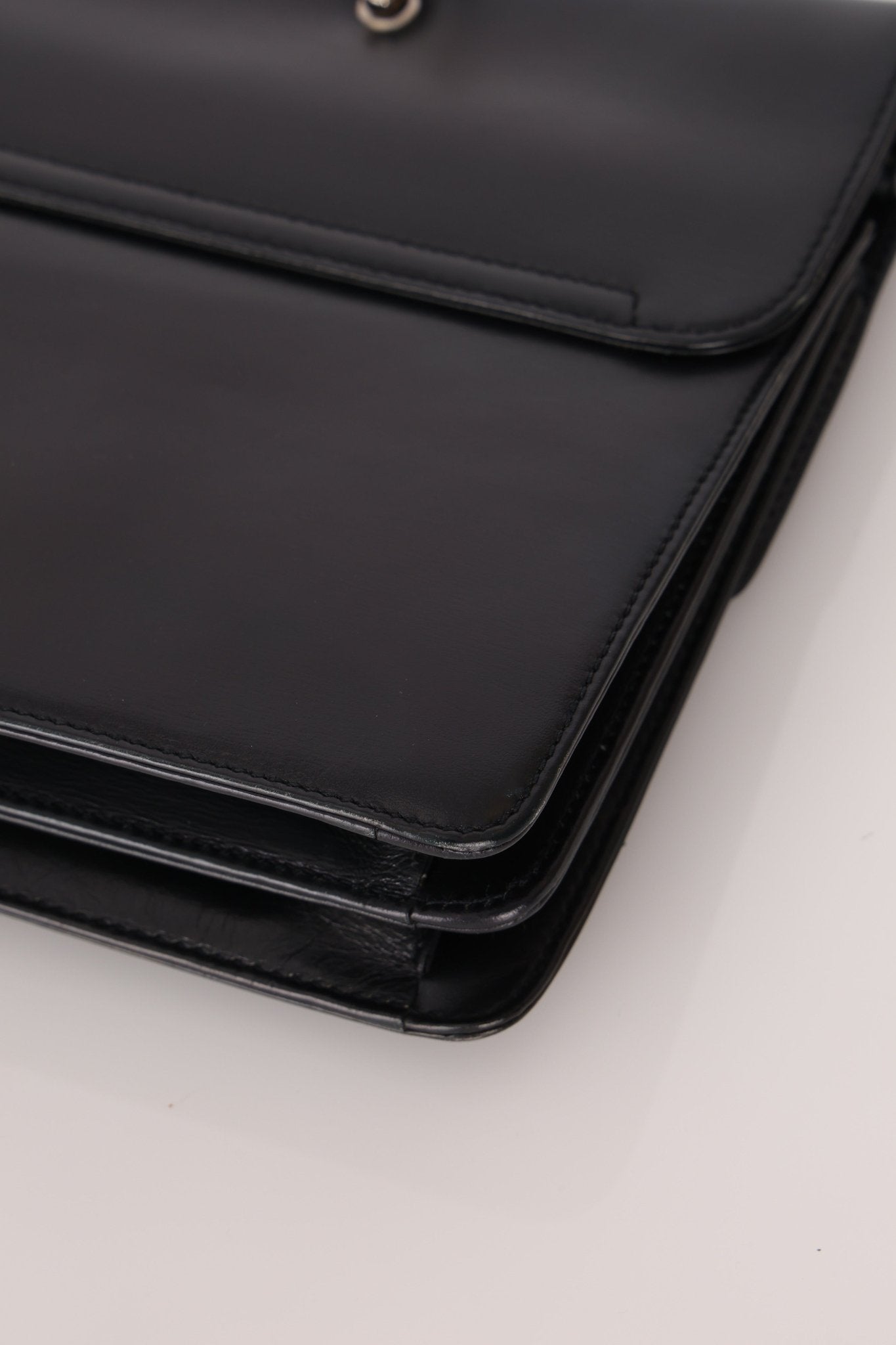 Scratches on hardware. Normal wear throughout leather. Corner wear. Top edge flap wear.