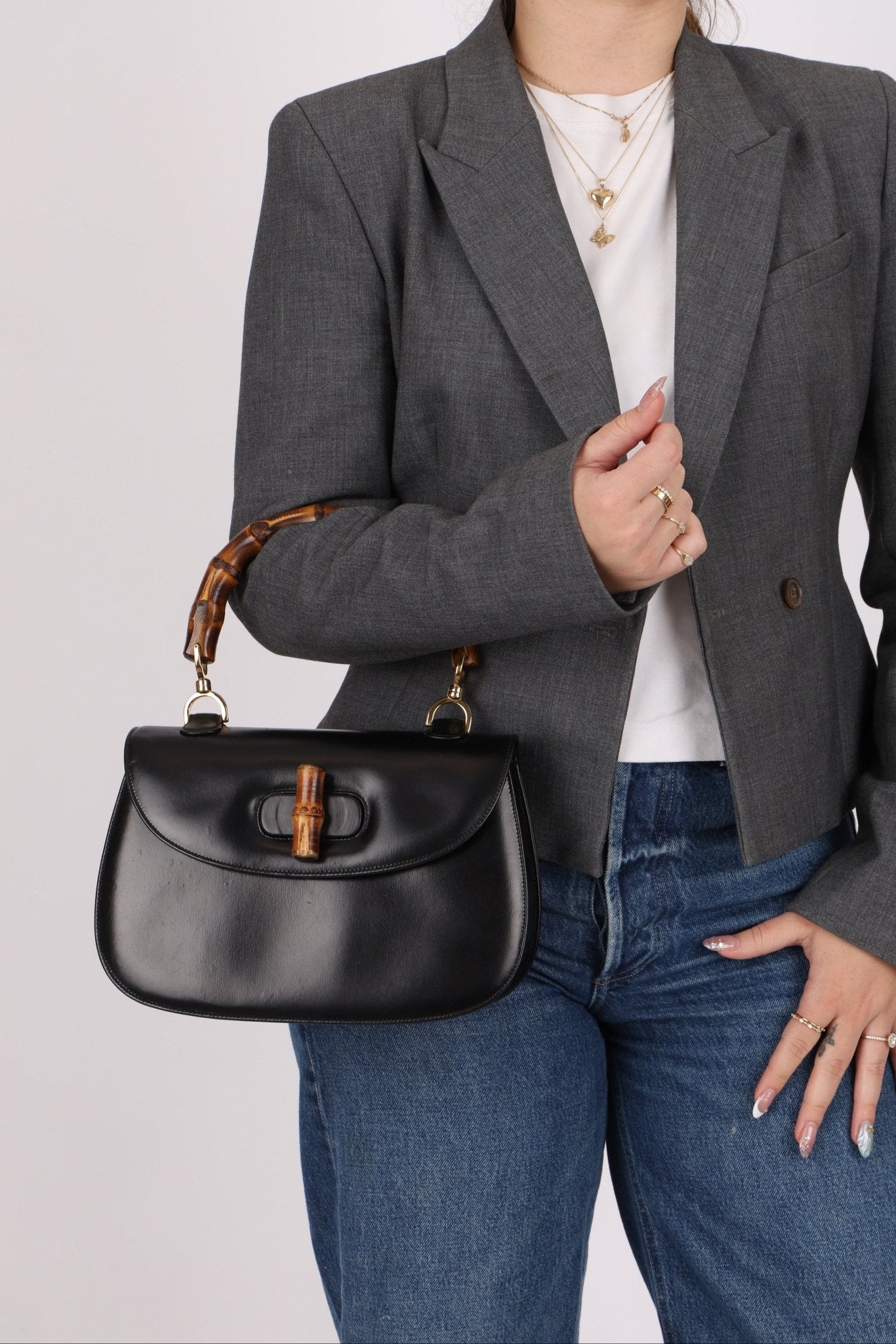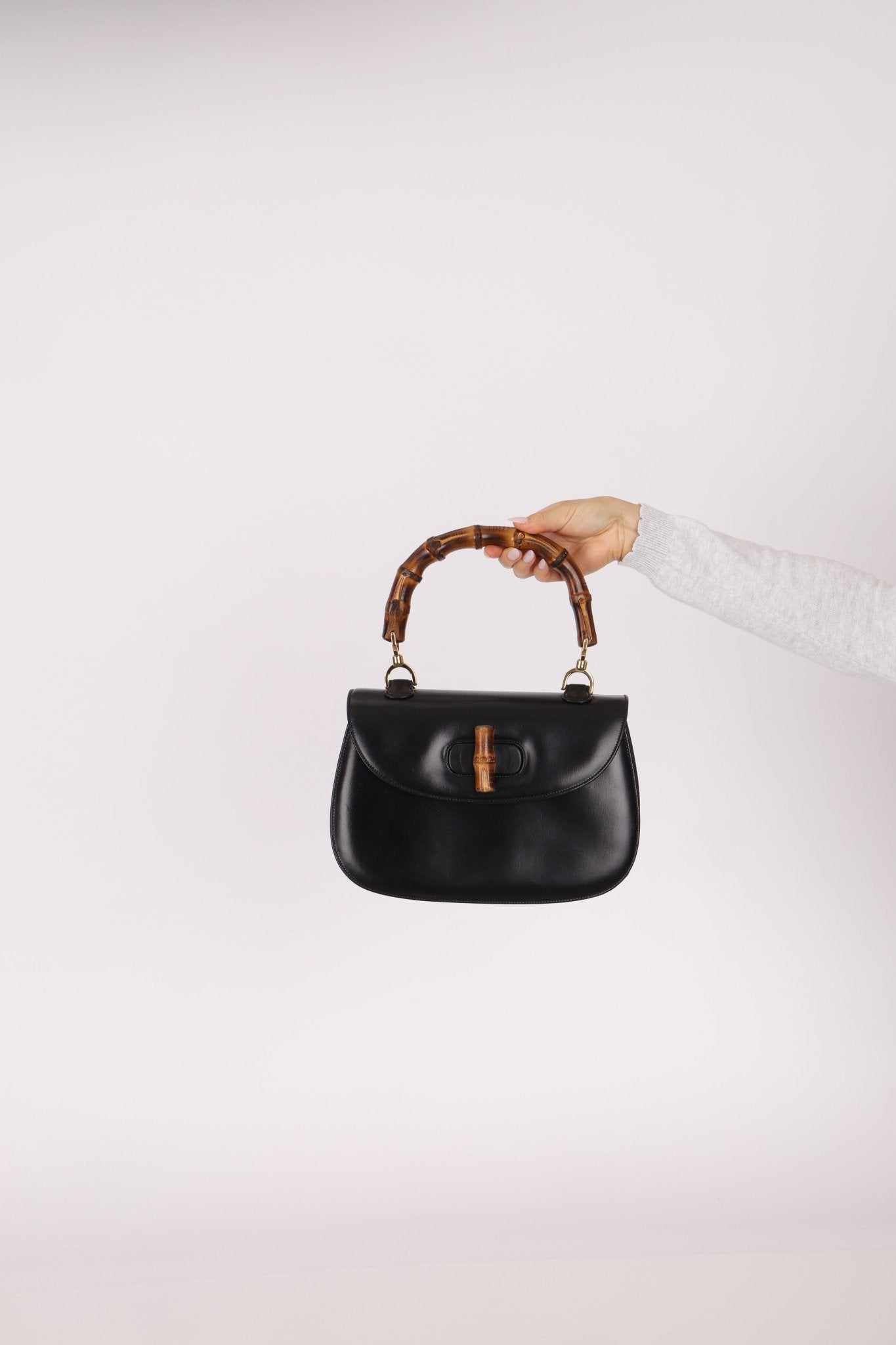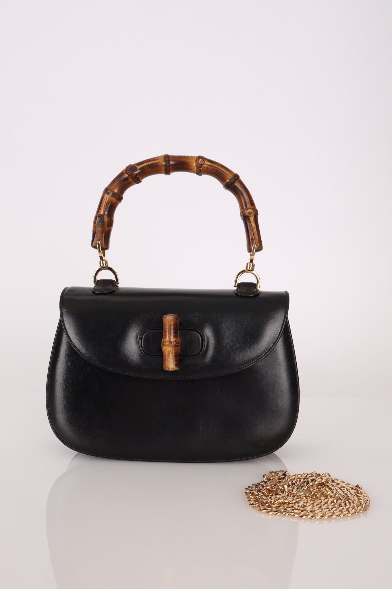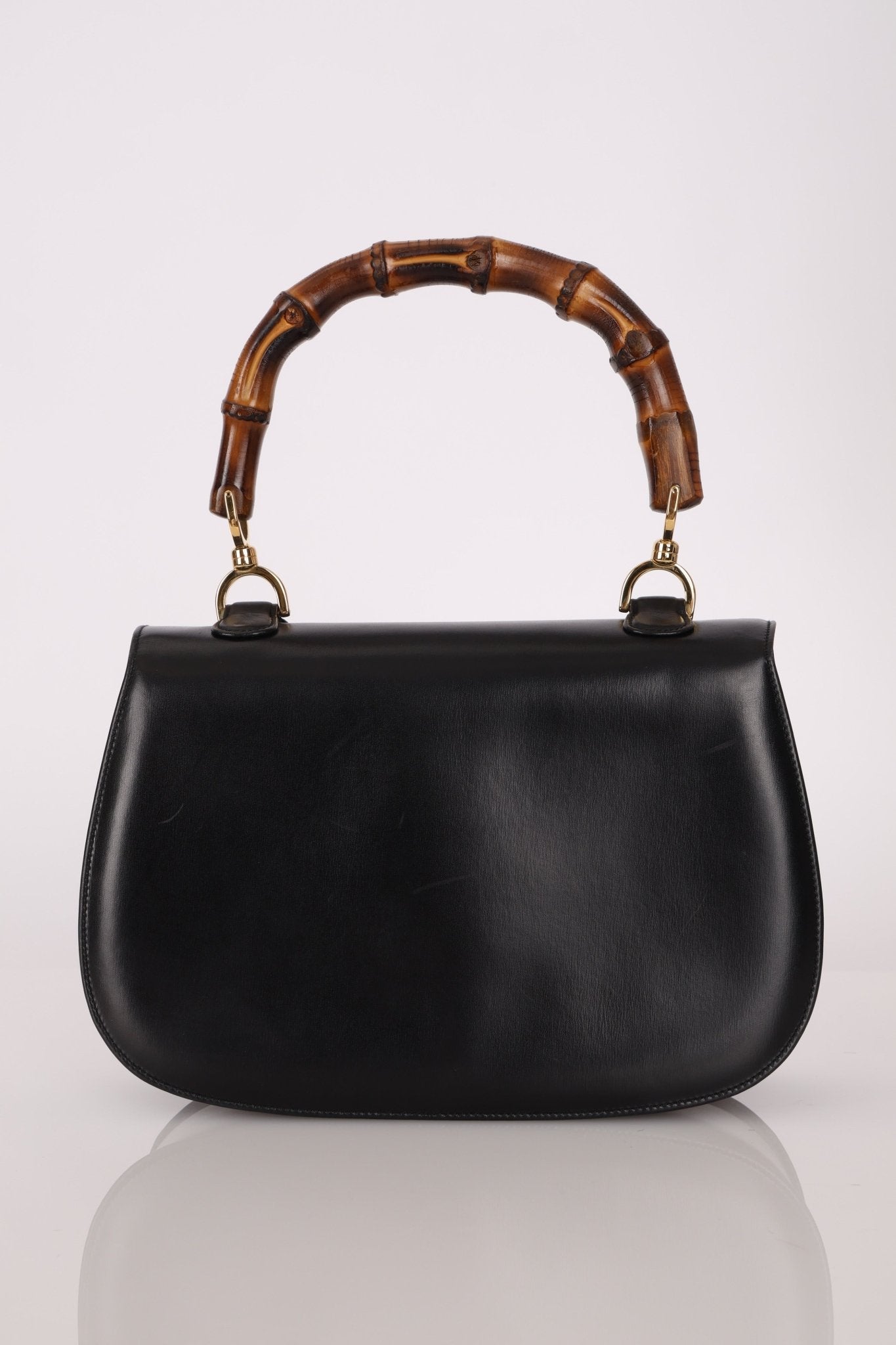 Gucci Vintage 1947 Black Bamboo Turnlock Top Handle - FashioNica
