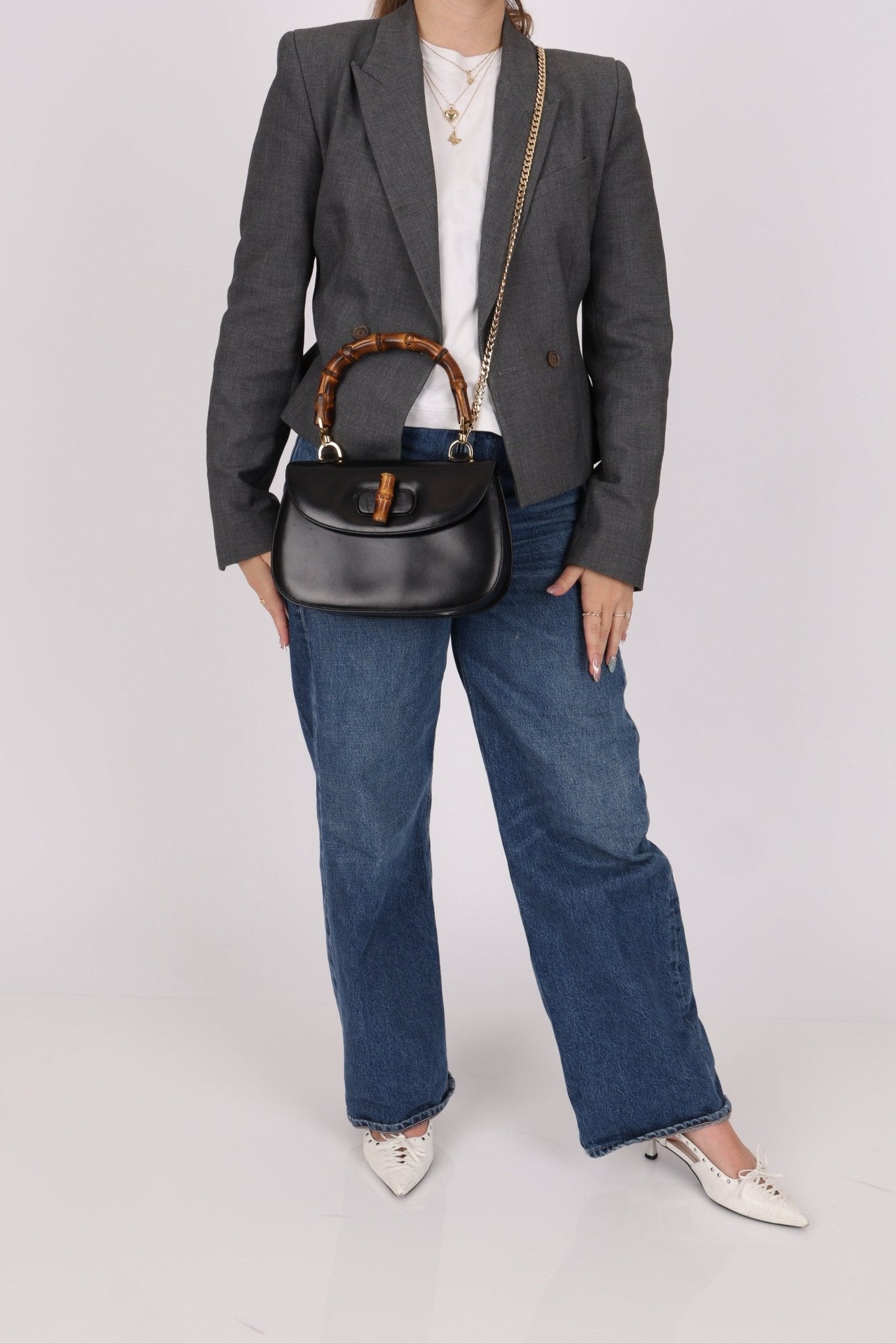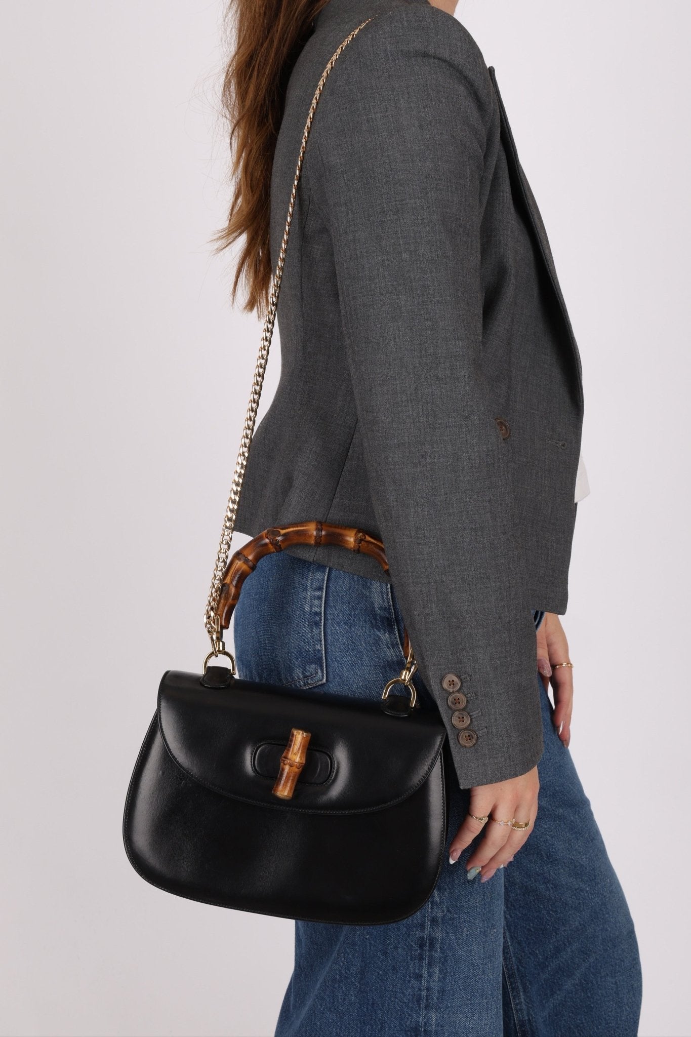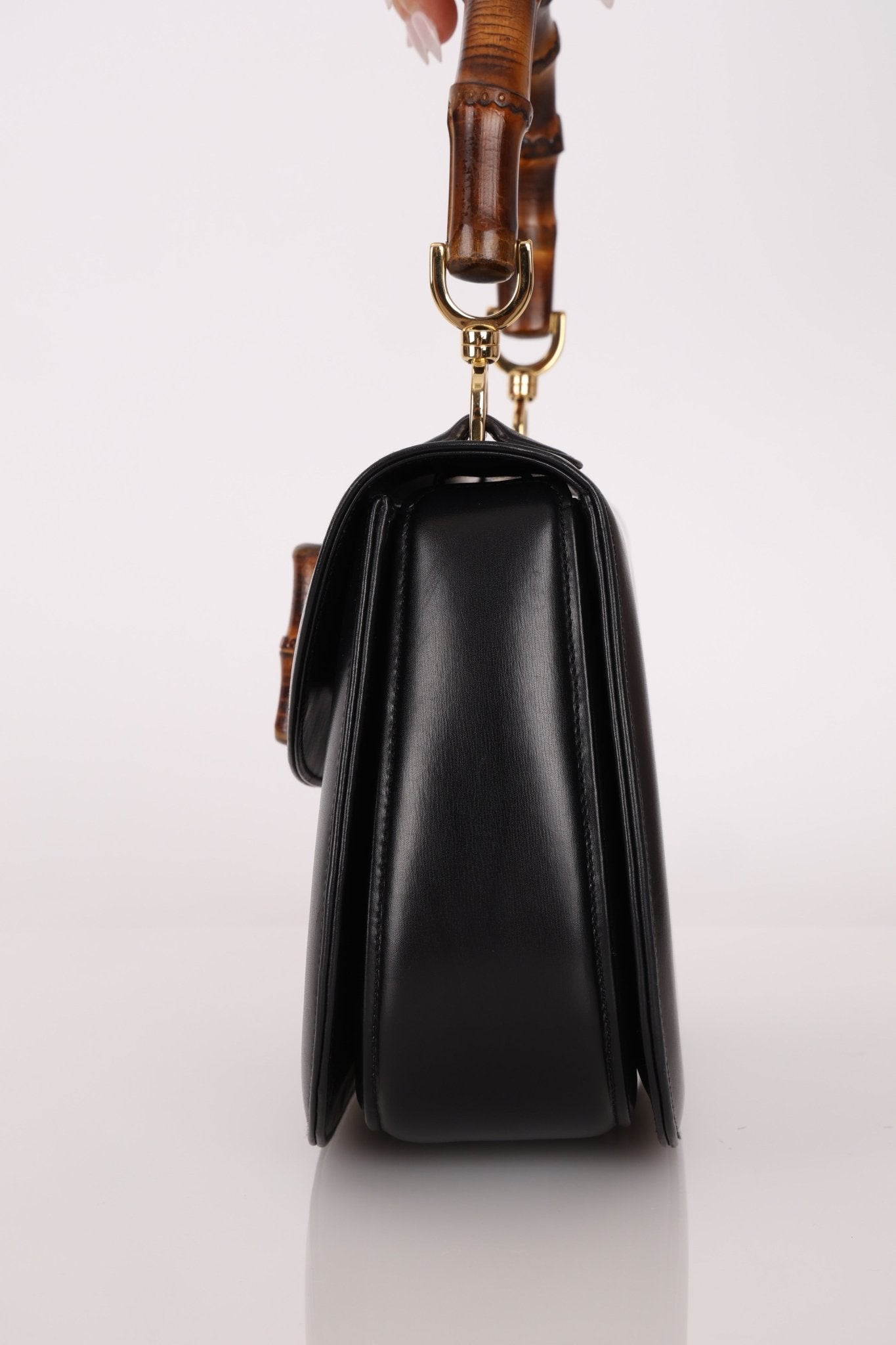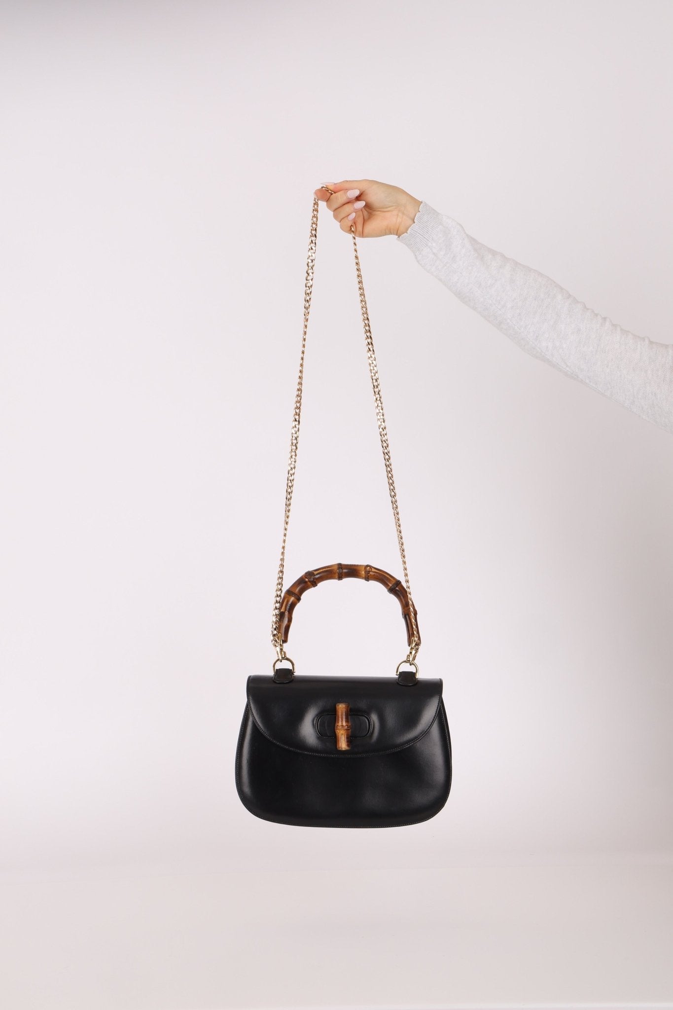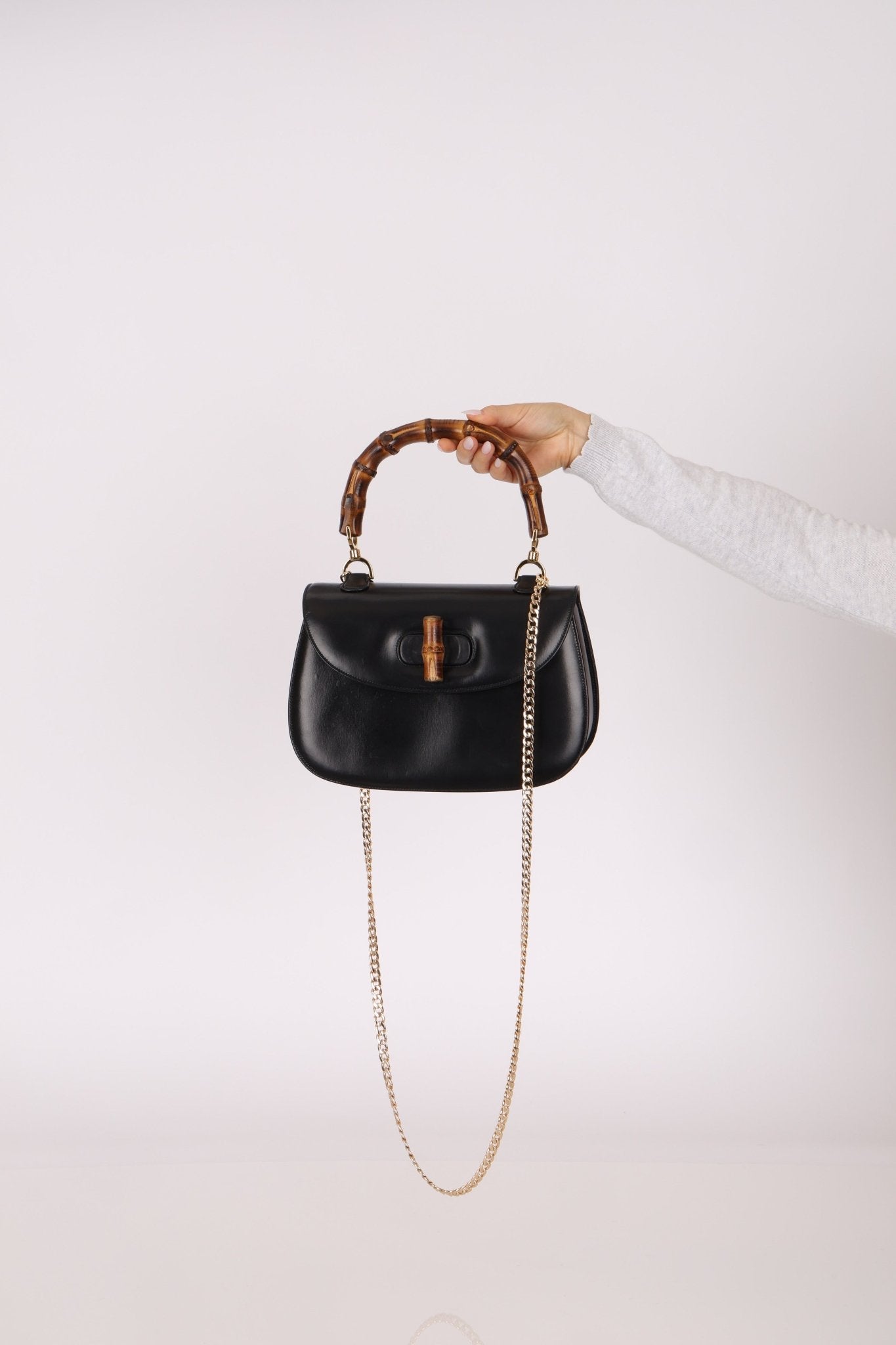 Gucci Vintage 1947 Black Bamboo Turnlock Top Handle - FashioNica