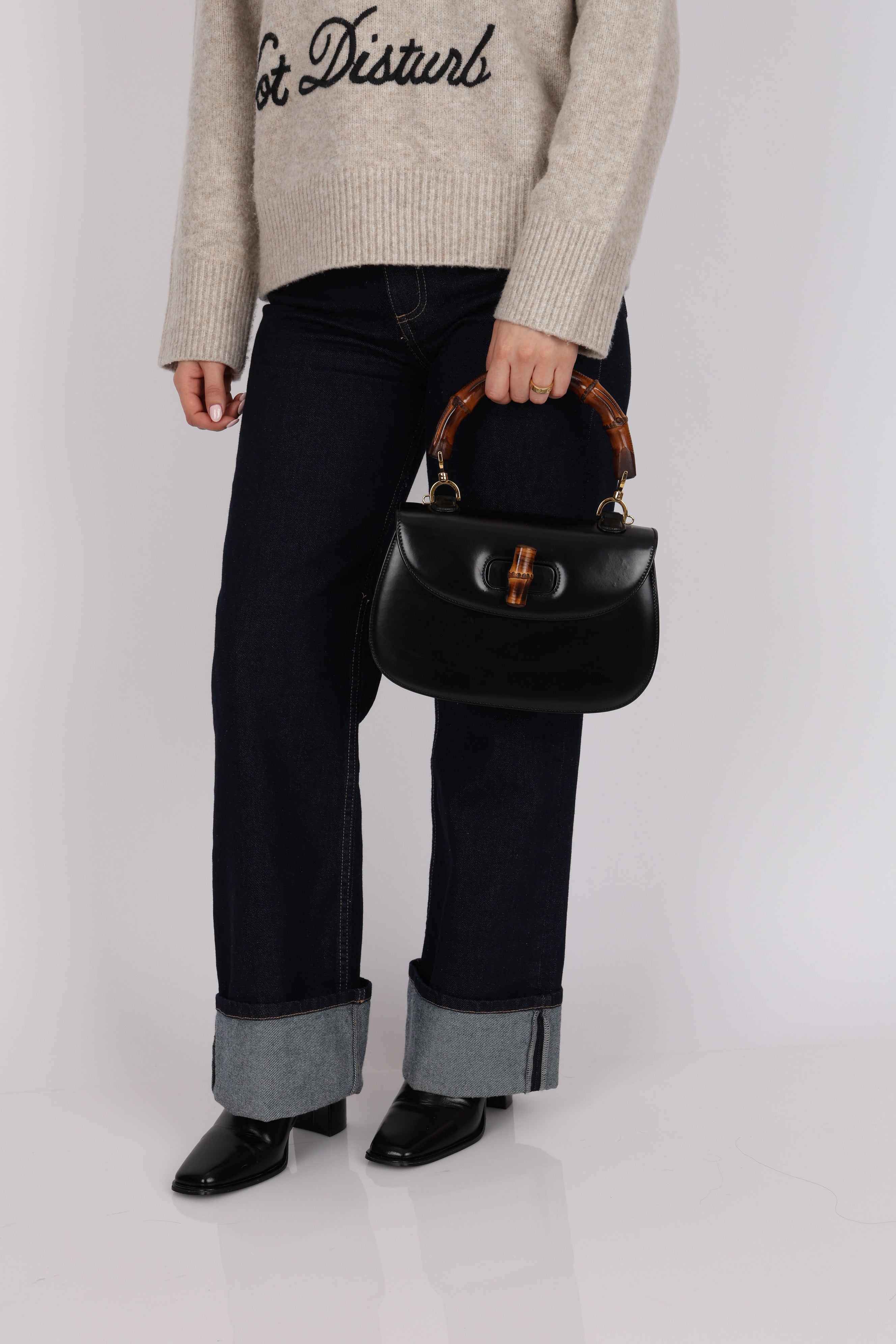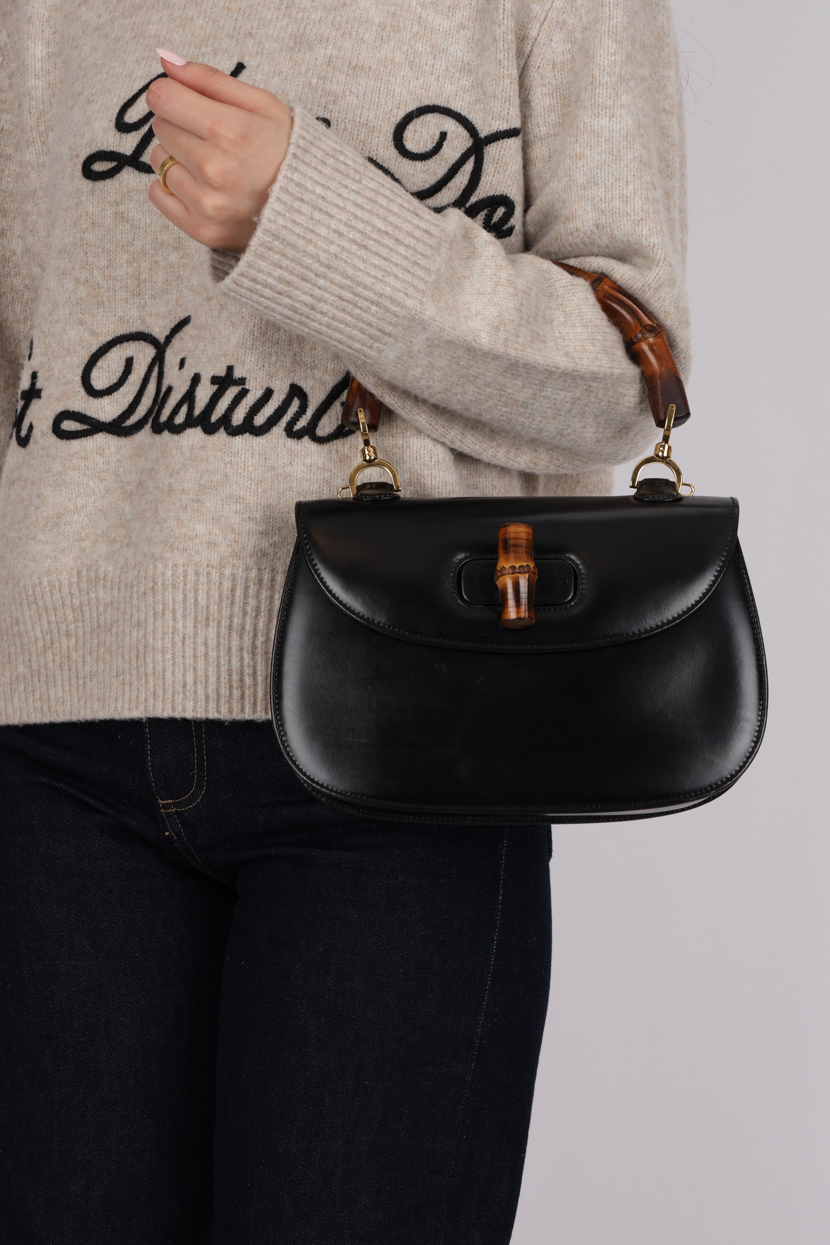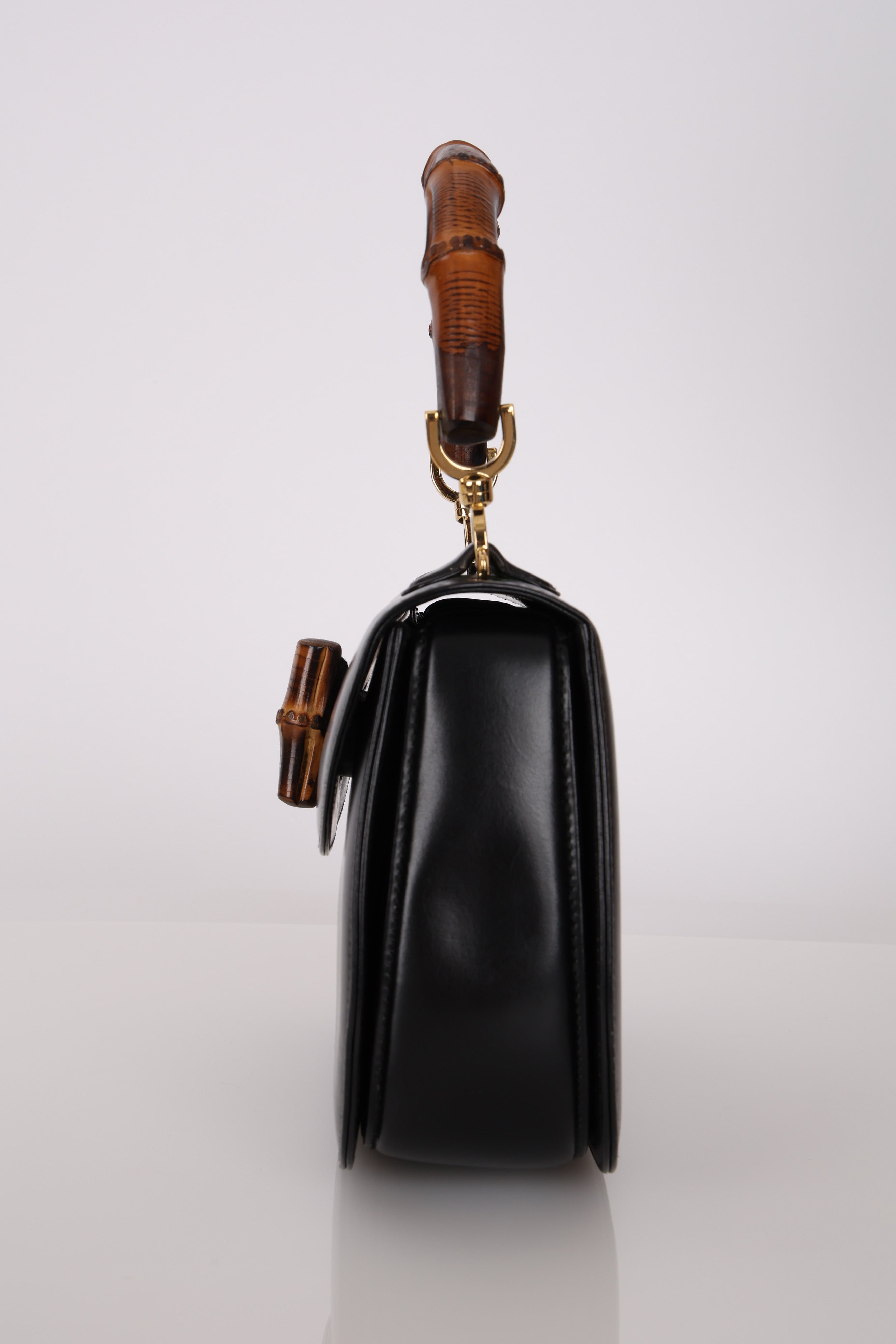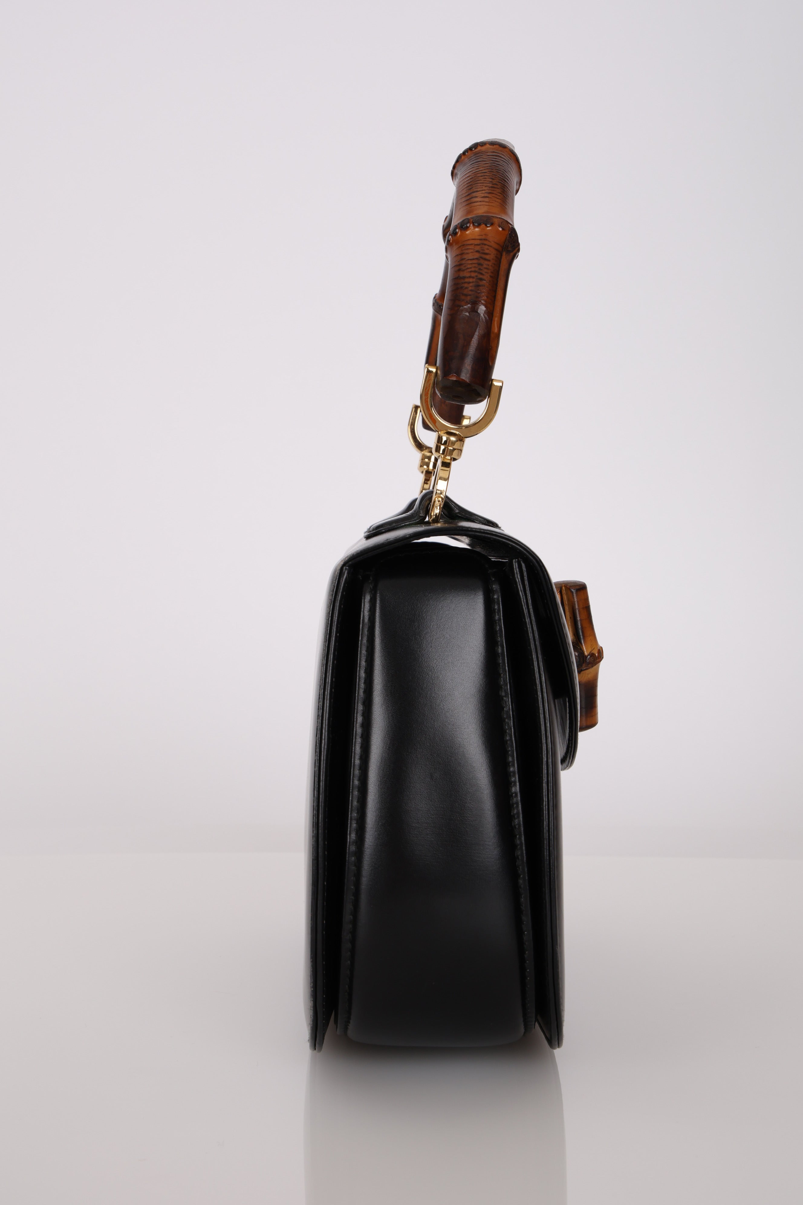 Gucci 1947 Black Boxcalf Bamboo Turnlock Top Handle