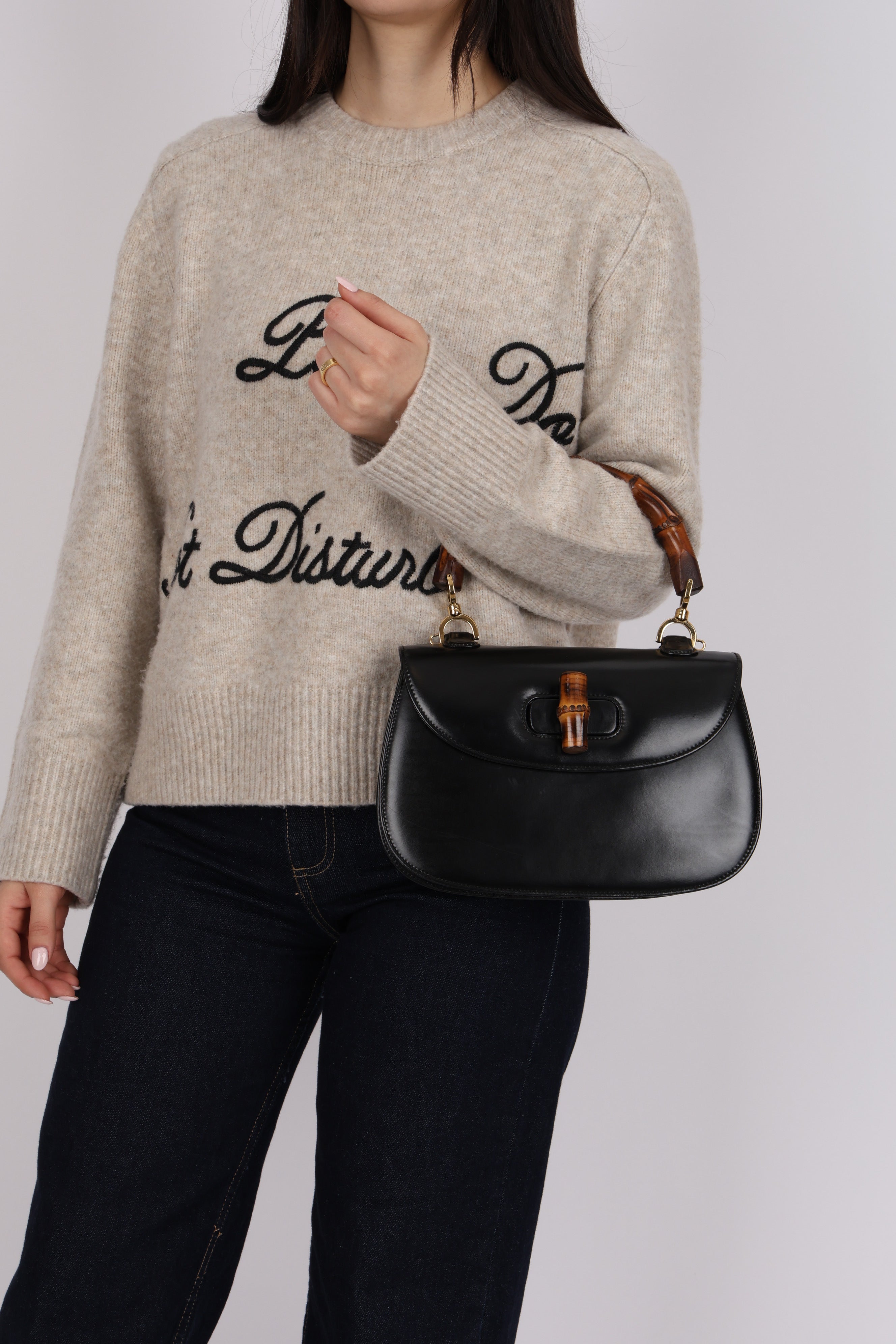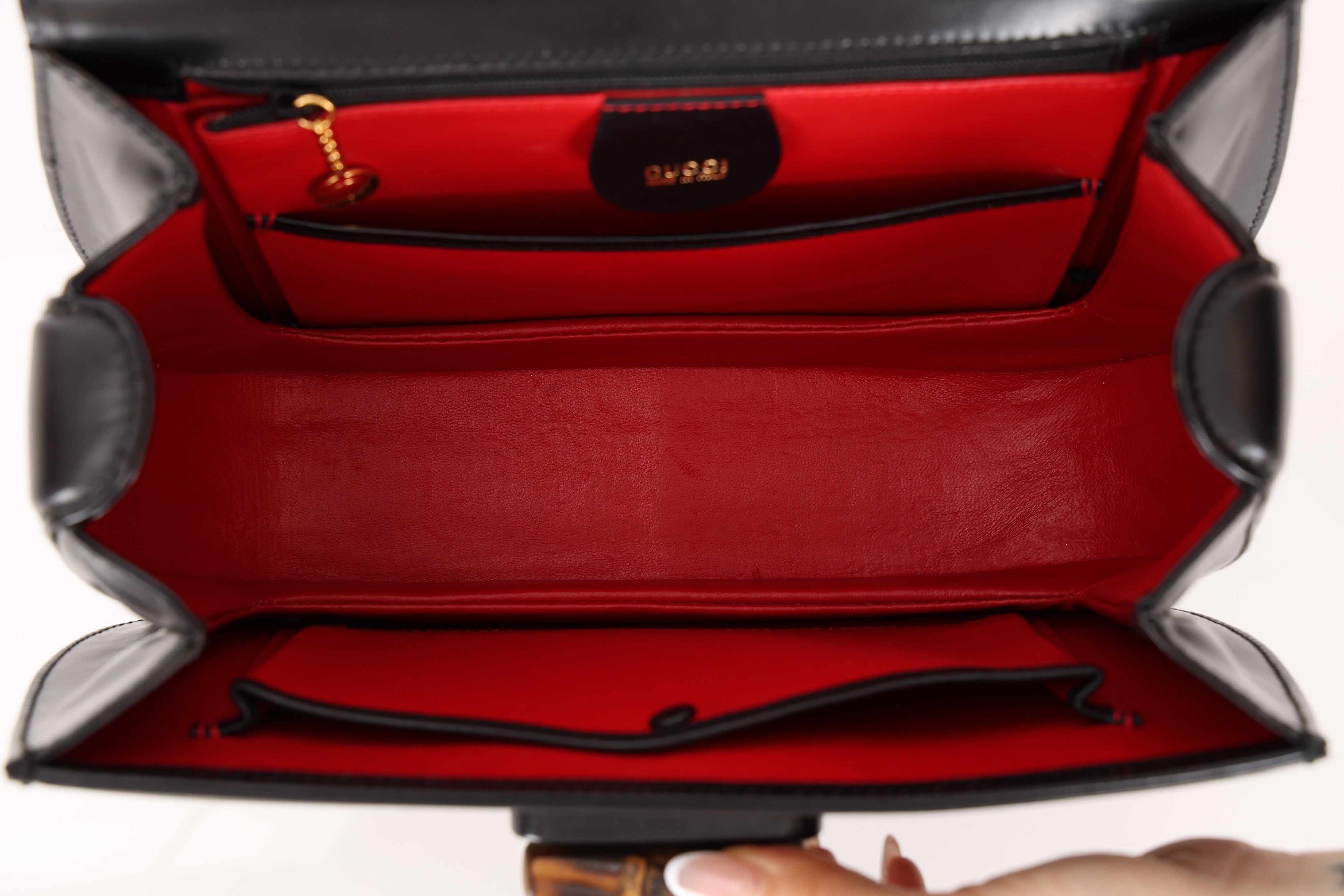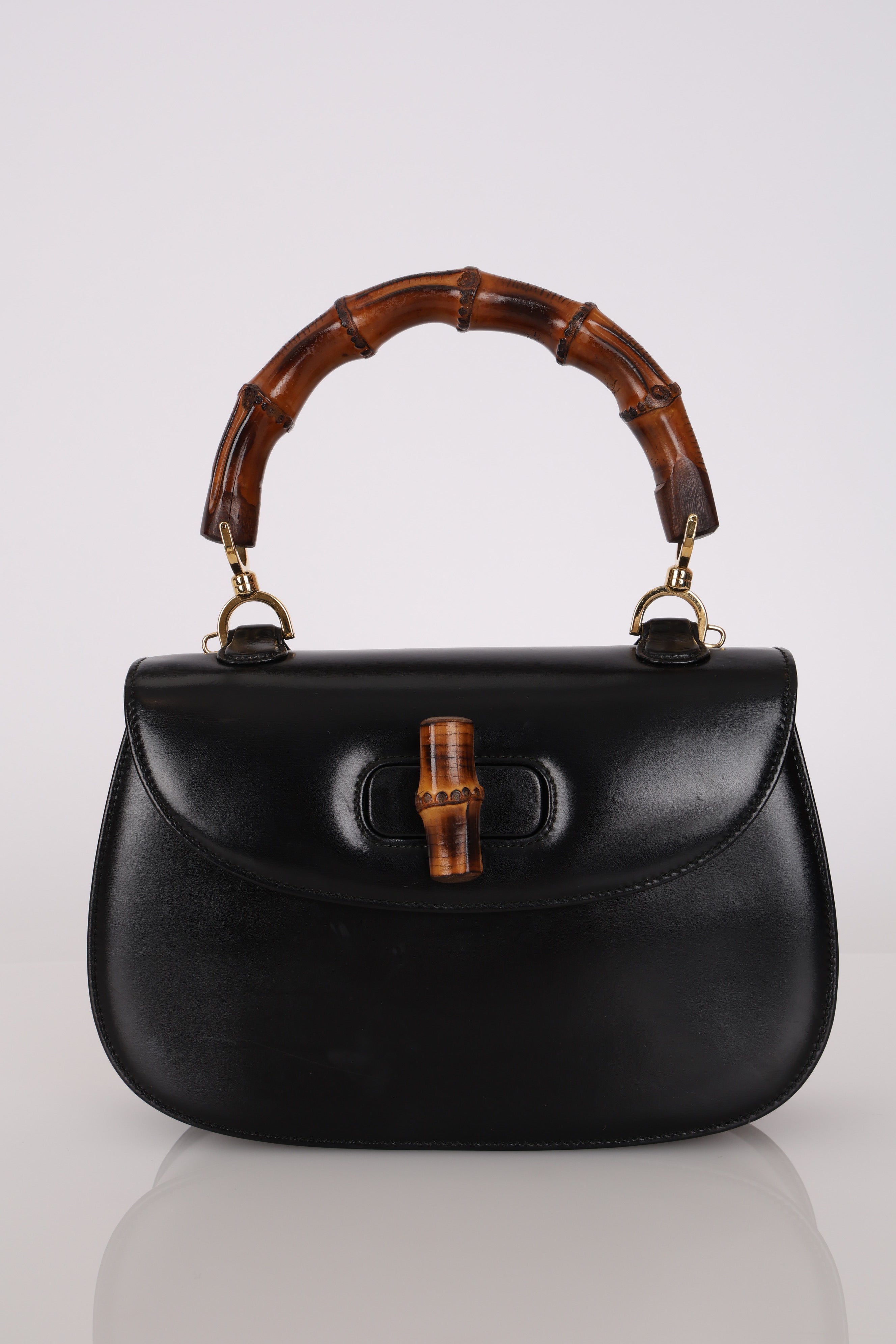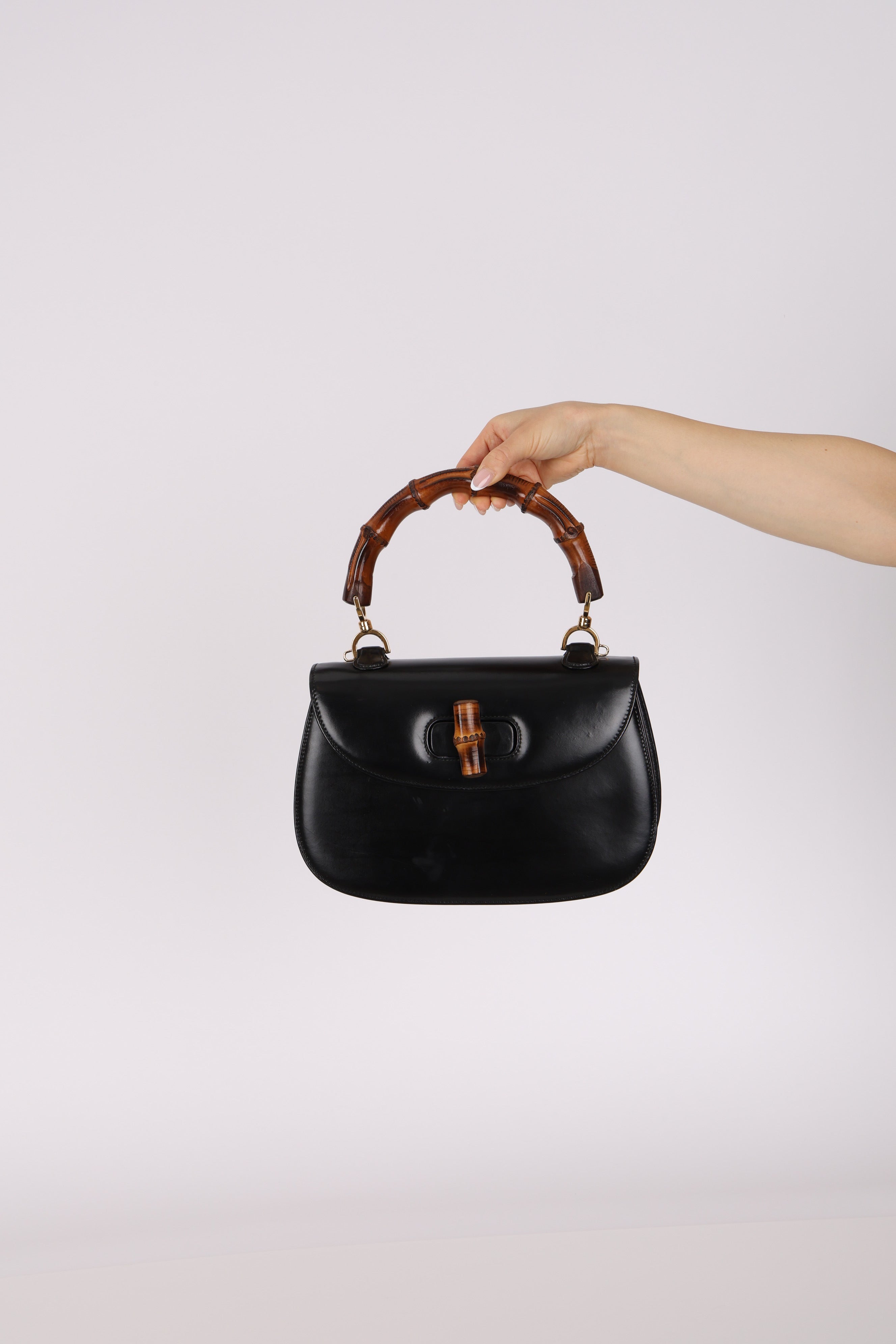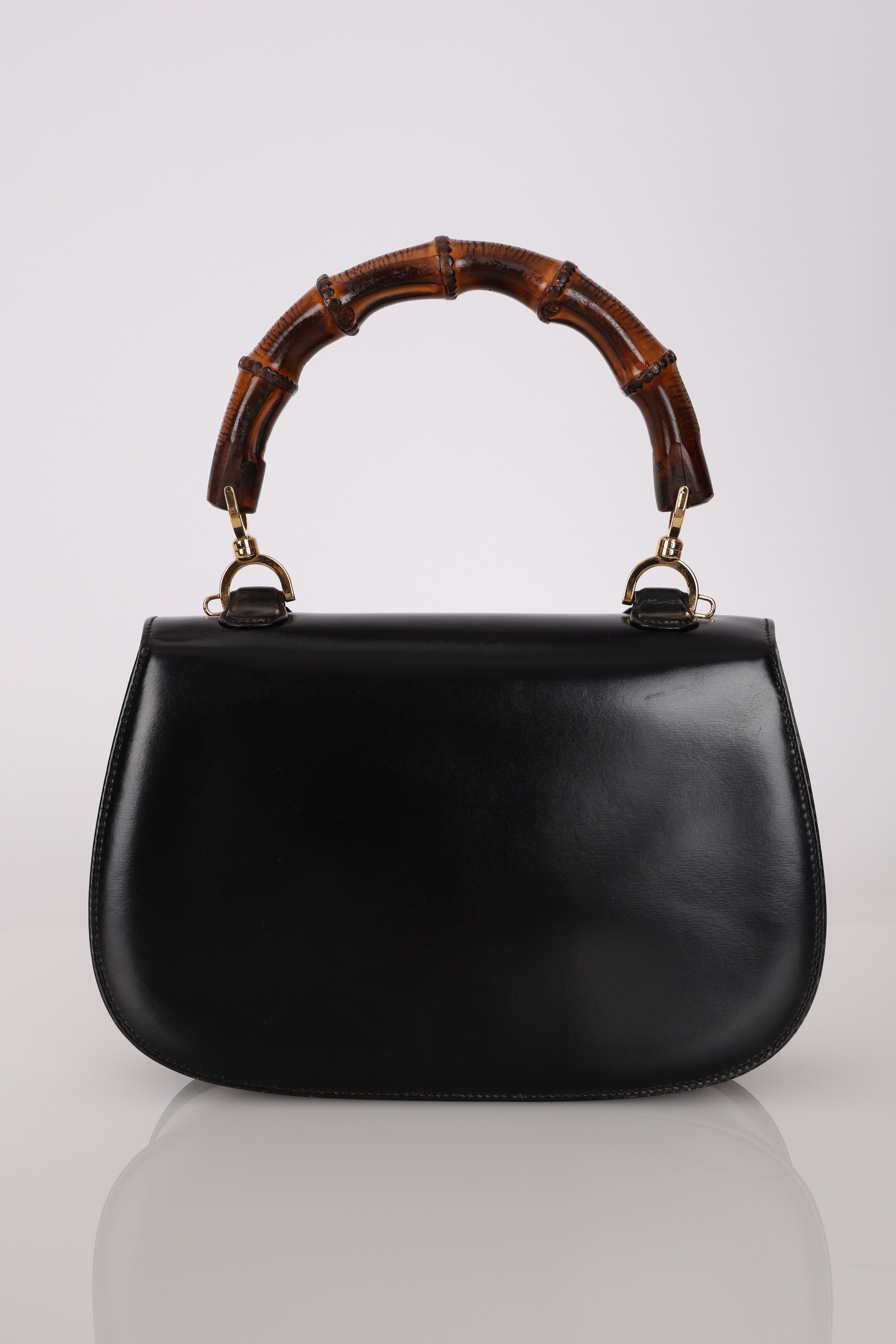 Gucci 1947 Black Boxcalf Bamboo Turnlock Top Handle