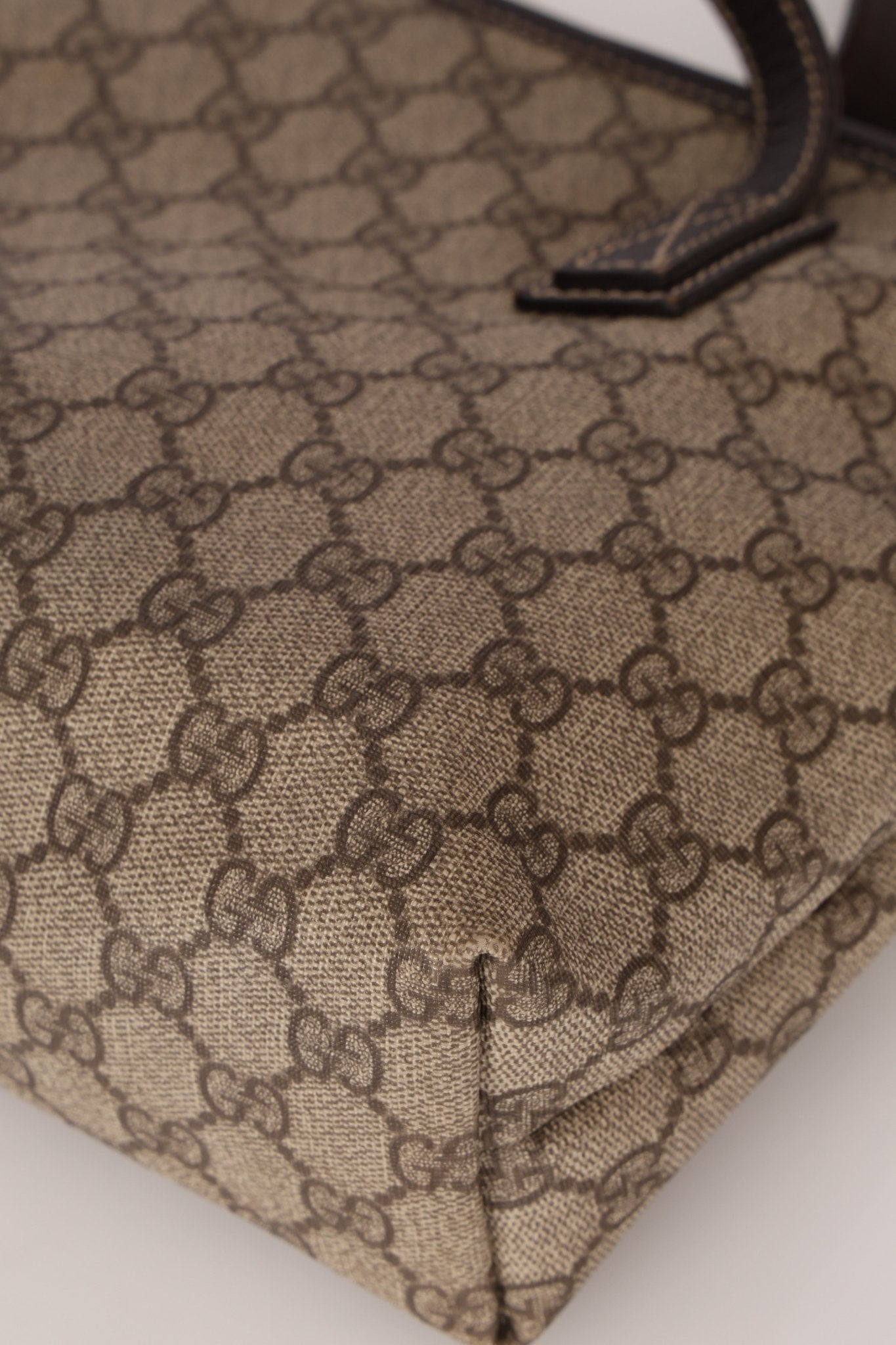 Normal wear throughout canvas. Corner wear. Rubbing on leather piping.