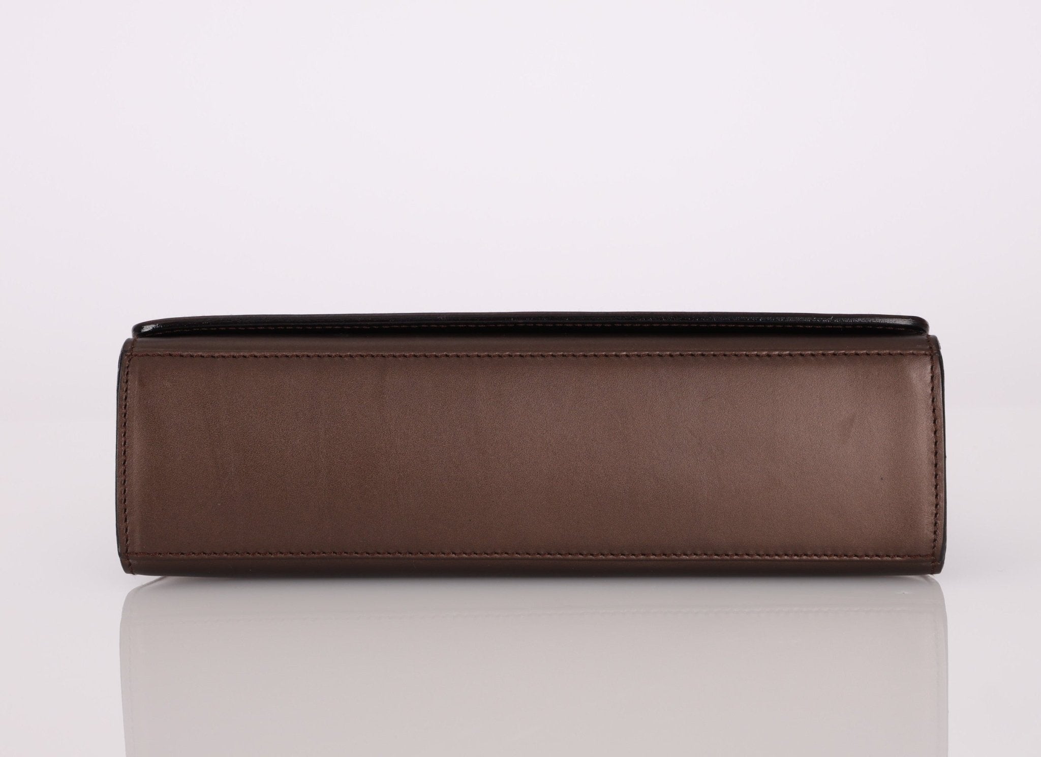 This gorgeous vintage Gucci piece is a more structured style with a soft, shimmery cocoa brown leather framed with shiny gold hardware that is a great evening bag for a night out.