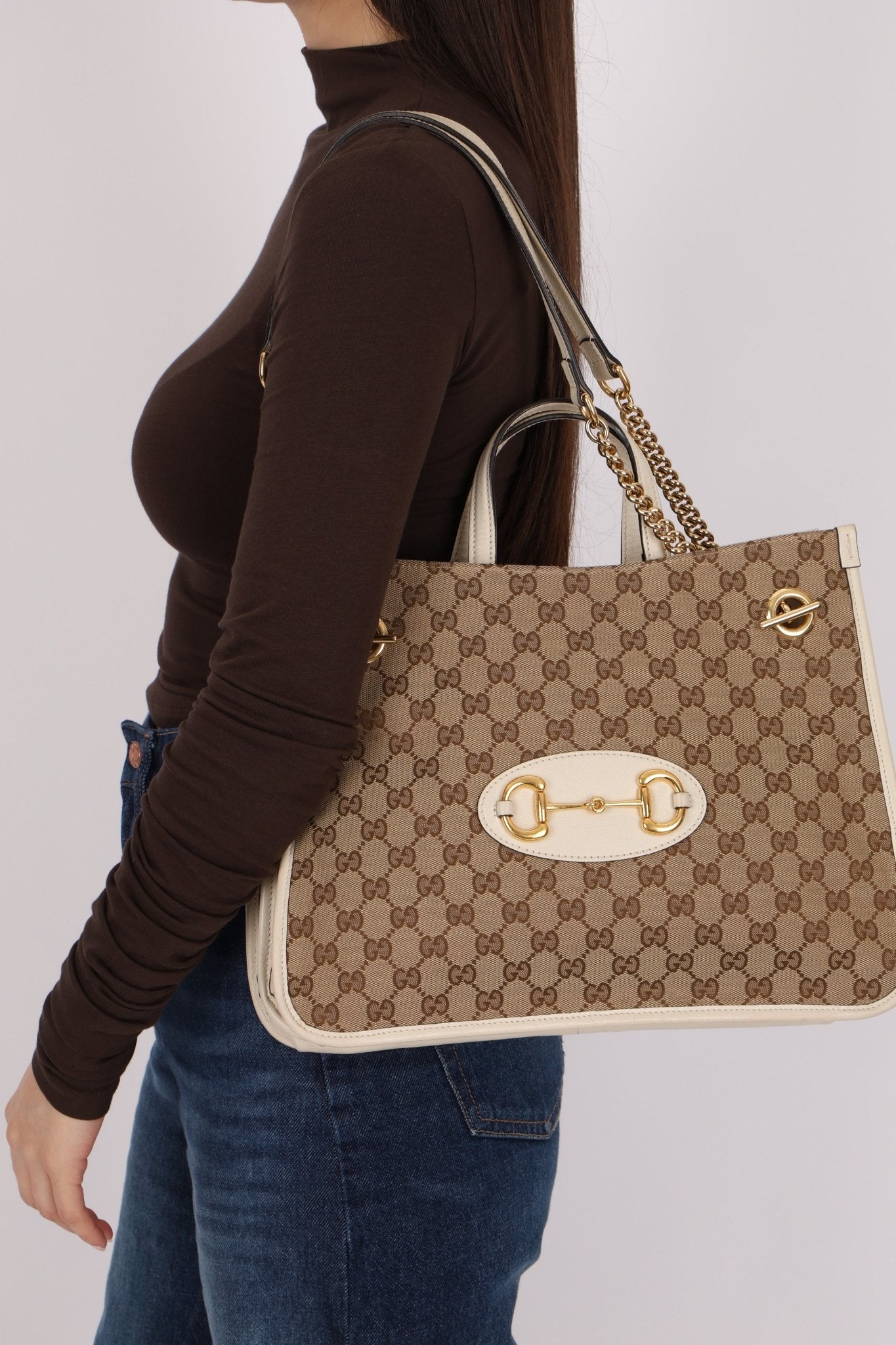 Gucci GG Canvas & Calfskin Medium Horsebit 1955 Chain Tote - FashioNica