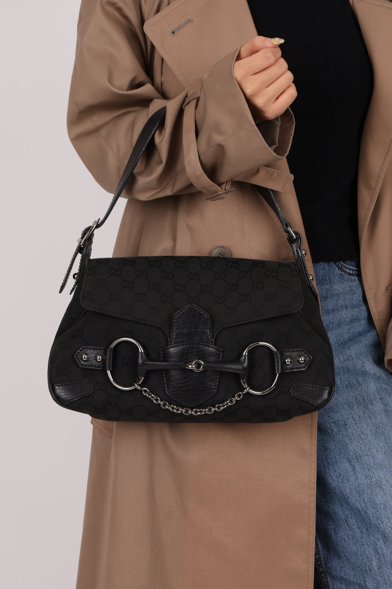 Gucci GG Canvas Horsebit Shoulder Bag - FashioNica
