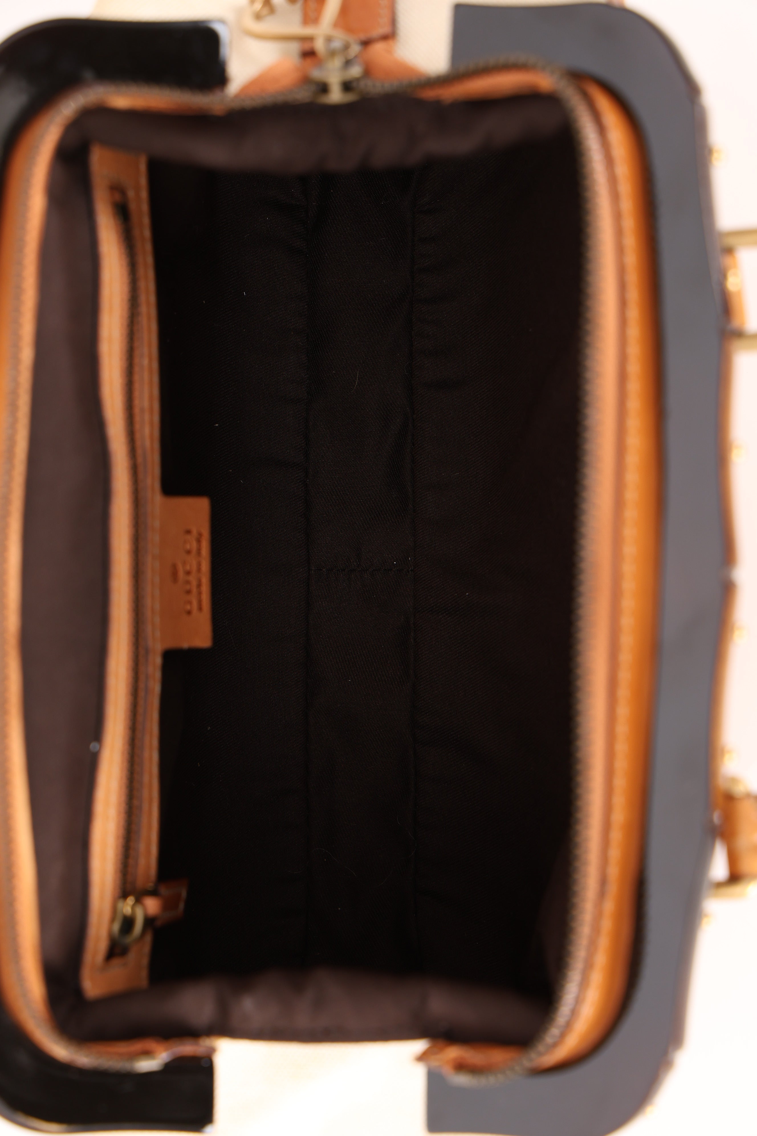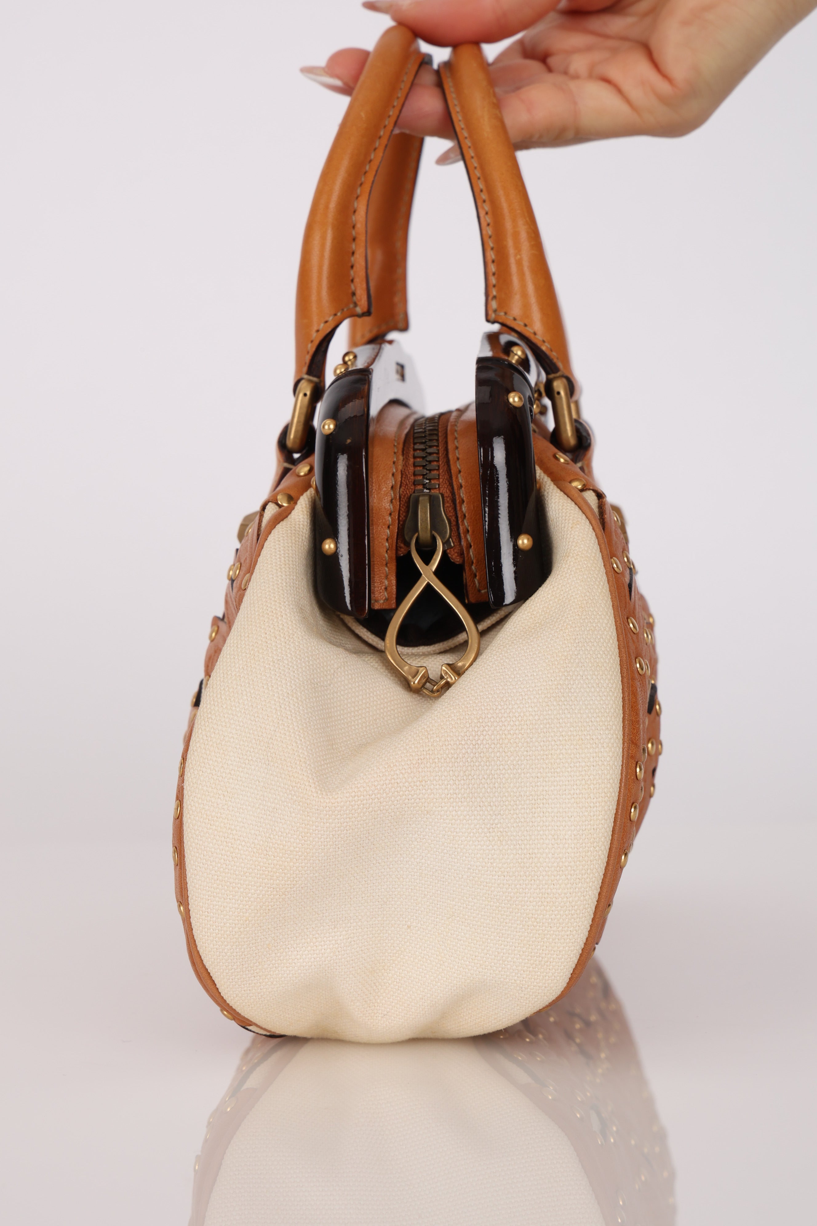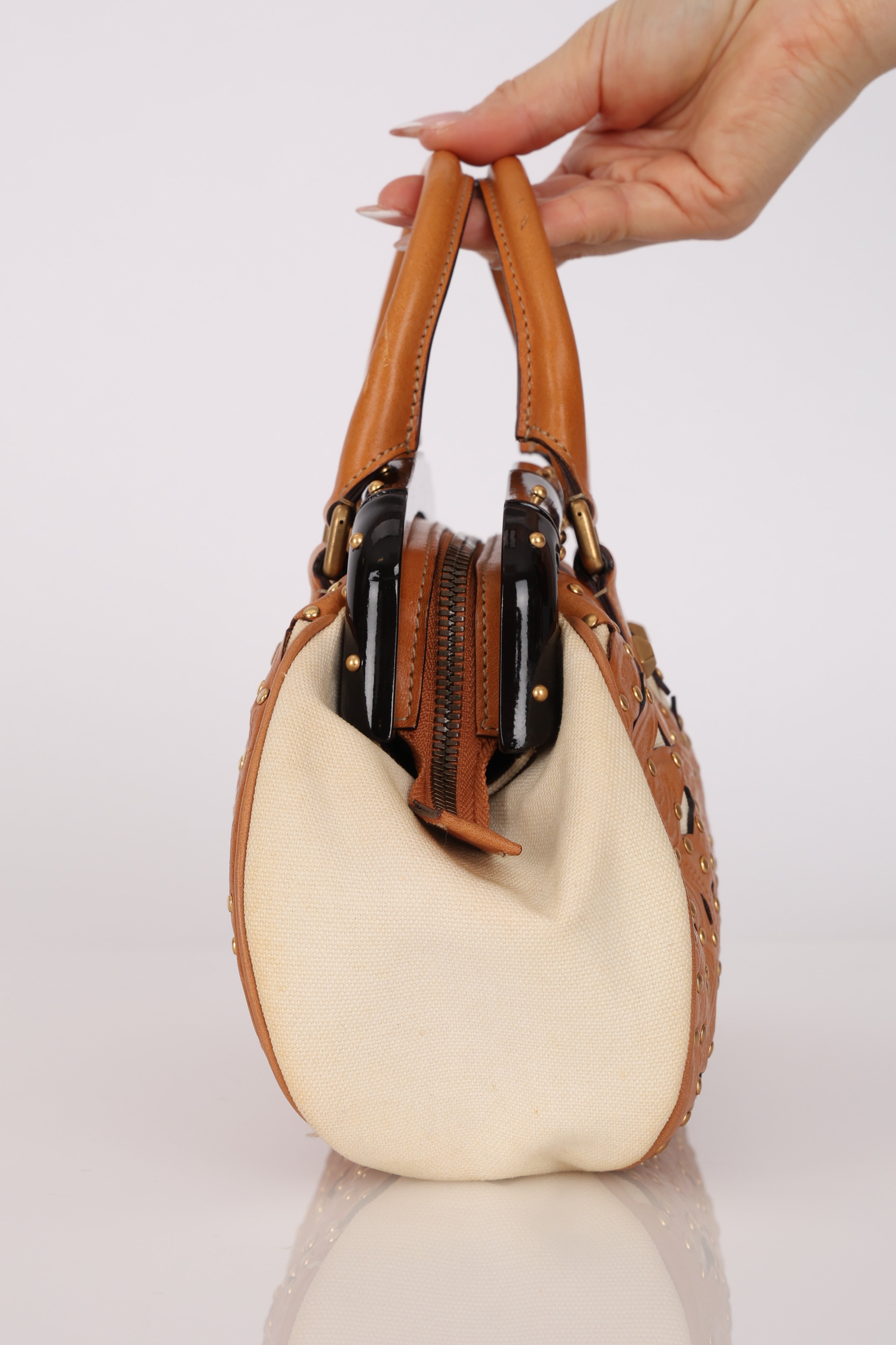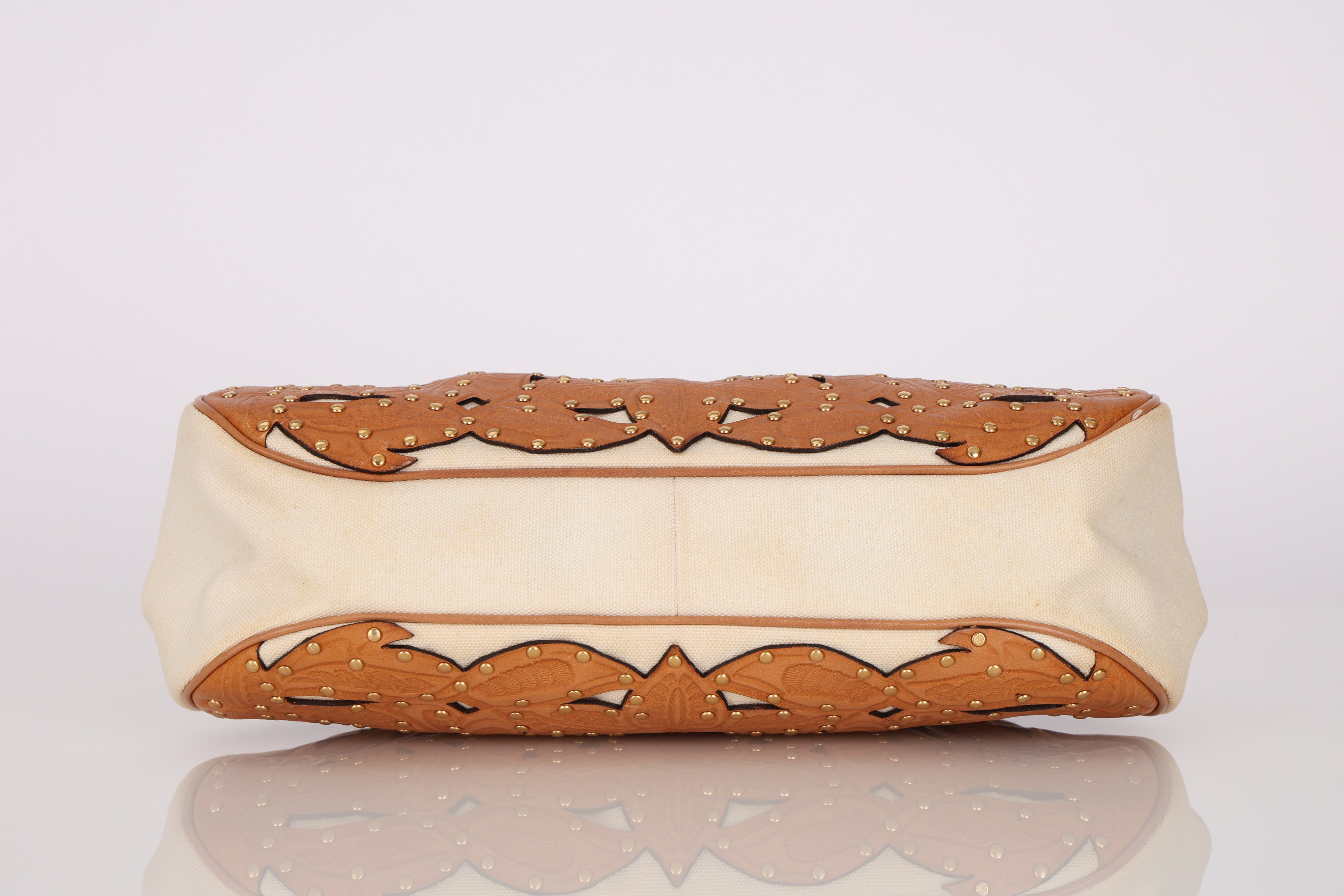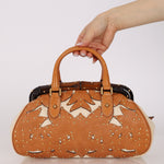 Rare Gucci Tan Lasercut-Leather Studded Bamboo Frame Bag